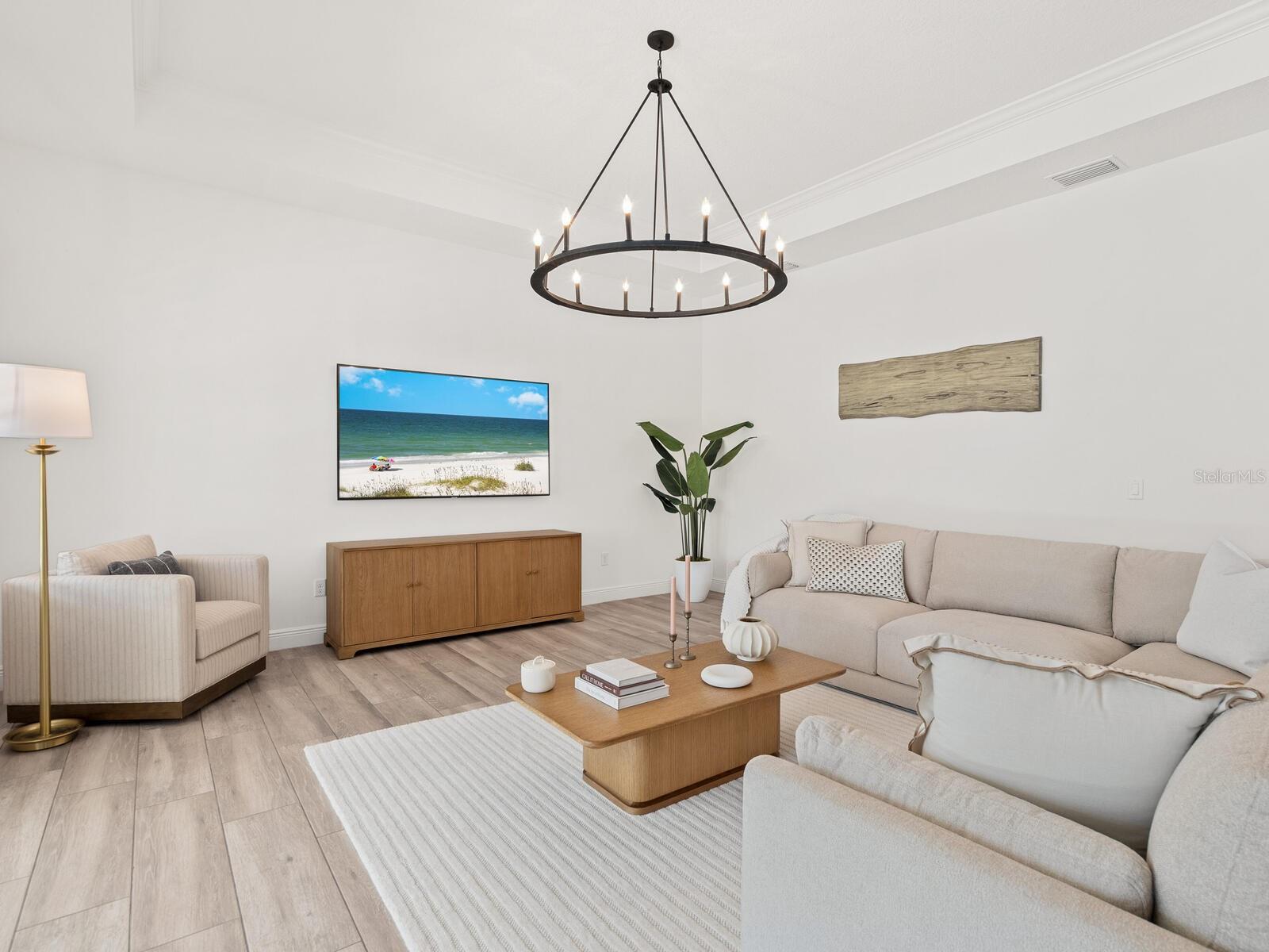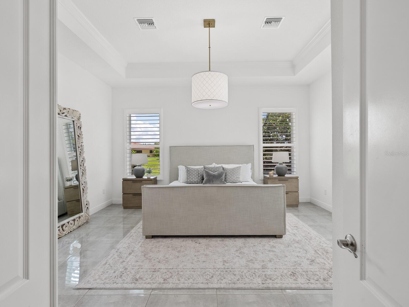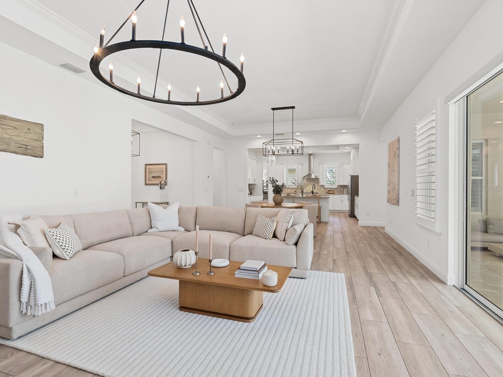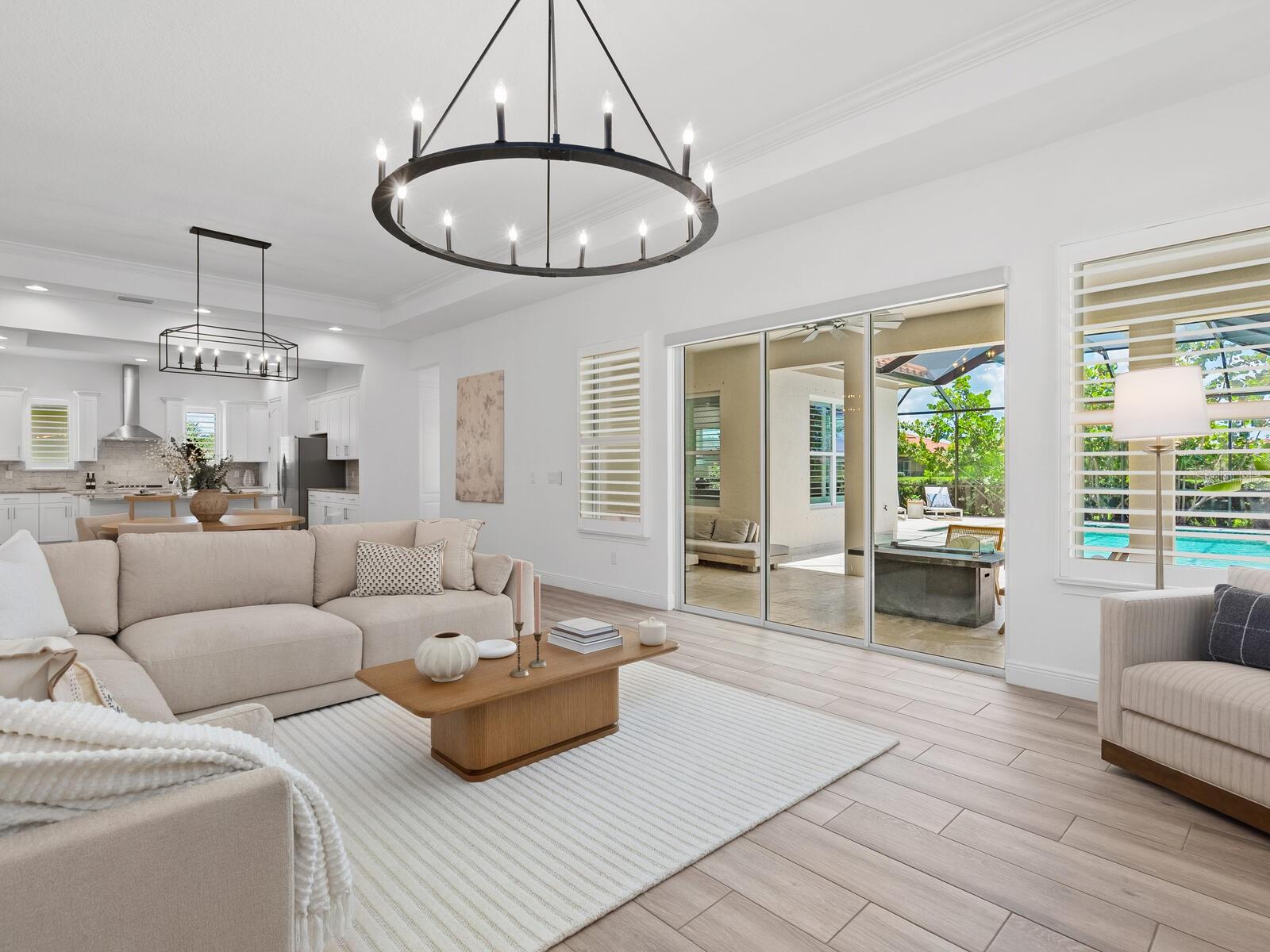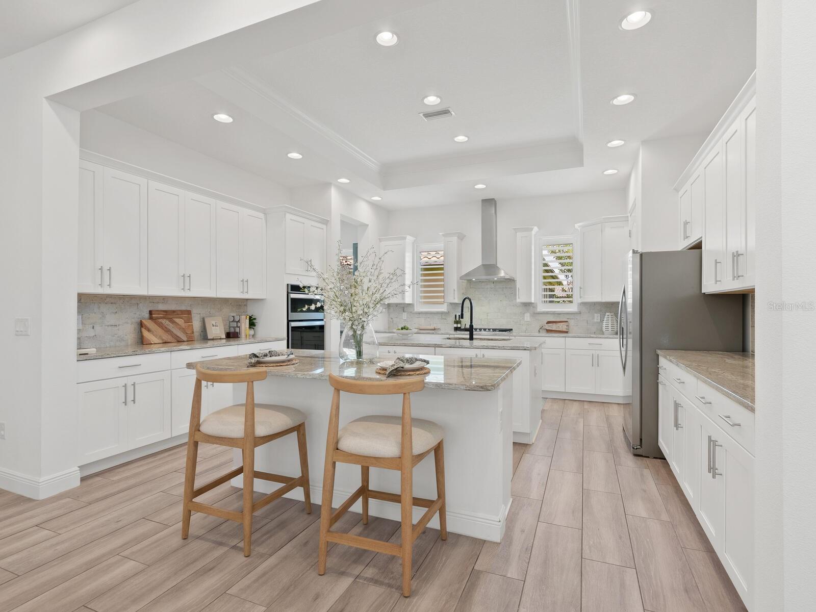 Welcome to an exquisite, upgraded residence in the Rosedale Golf & Country Club, where luxury and lifestyle converge in harmony. This beautifully appointed three-bedroom, three-bath home with an additional dedicated office/den showcases refined elegance and effortless functionality across a smart split floor plan. Designed for refined living and grand entertaining, the centerpiece is a chef-inspired kitchen boasting dual oversized islands, custom cabinetry, a butler's pantry and a walk-in pantry--an entertainer's dream. The open-concept great room, adorned with designer finishes and expansive glass sliders, flows seamlessly to a private outdoor oasis. Enter into a screened lanai featuring a heated saltwater pool and spa with travertine decking, sun shelf and privacy screens--all surrounded by lush landscaping that offers serenity and seclusion. The primary suite is a sanctuary with a spa-caliber bath, an abundance of natural light and a custom-designed walk-in closet to impress. Thoughtfully placed guest accommodations, including a private en suite, ensure comfort for visitors. Throughout the home, plantation shutters and automated blinds elevate convenience and aesthetic appeal. Enjoy a spacious two-car garage and the ease of living in a gated, amenity-rich community. In a gated, maintenance-free community, this home includes a social membership with access to the community's fitness center, heated resort-style pool, tennis and bocce courts, full-service clubhouse with dining, vibrant calendar of social events and more. Optional golf memberships are also available. HOA benefits include cable, internet, 24/7 security, two dog parks and landscaping, offering ease and peace of mind. With refined features, impeccable upgrades, and a premier location near Lakewood Ranch, dining and Gulf beaches, this is not just a home, it's a lifestyle and one you won't want to miss.