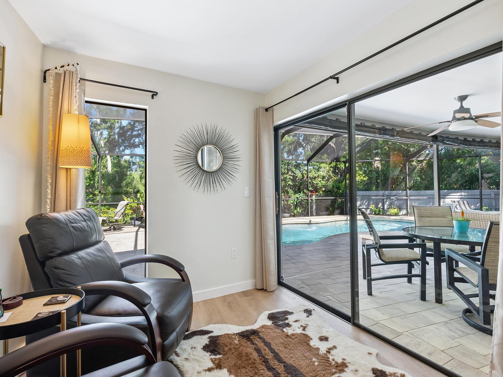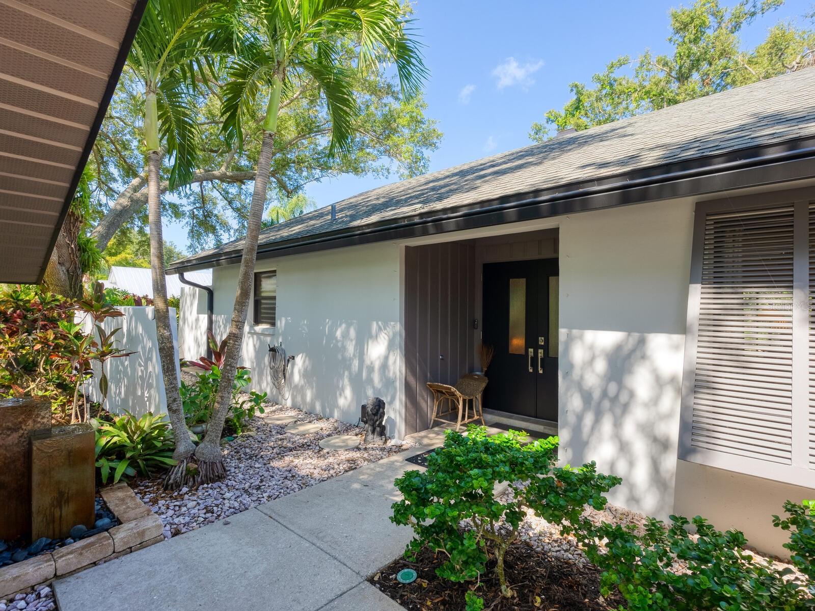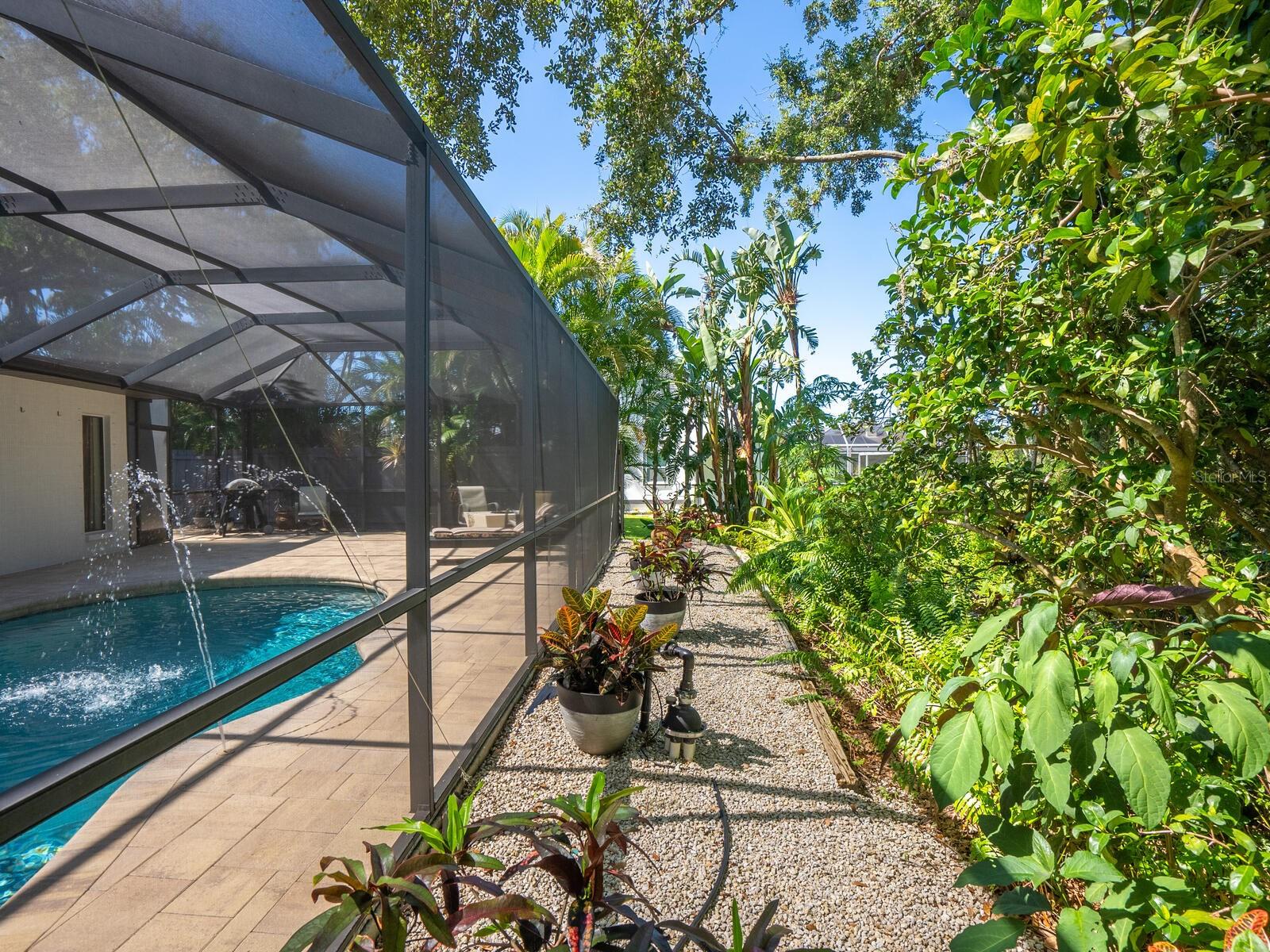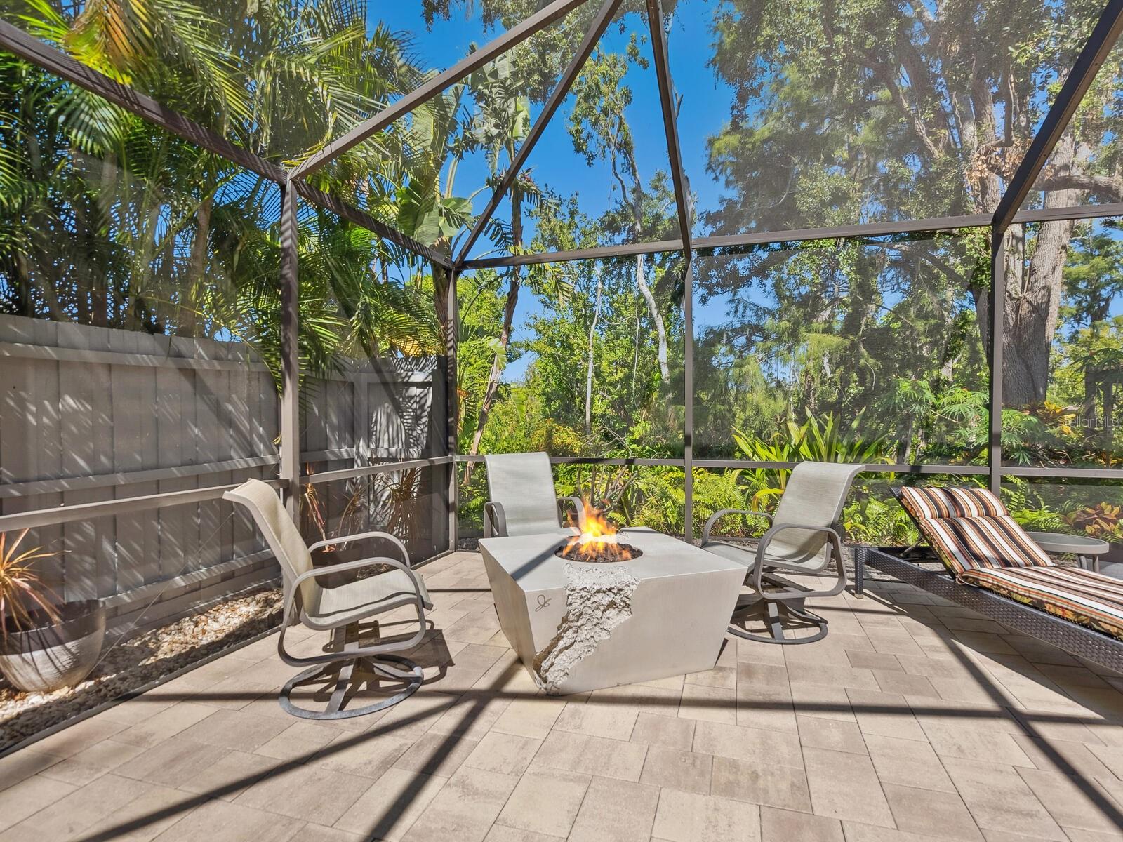 Award-Winning Architect's Personal Retreat in Sought-After Country Place!Step into Florida living at its finest in this beautifully updated 3-bedroom, 2-bath home--serenely nestled on an oversized corner lot with lush, mature landscaping backing-up to a nature preserve.From the moment you enter, you're greeted by the light-filled Living Room featuring vaulted ceilings, striking beam accents, and a cozy gas fireplace framed by custom built-ins; all seamlessly flowing onto the enormous, screened lanai with its coordinating pavers, gas connections for grill and fire-pit, heated pool, and greenery beyond; creating the perfect blend of charm, sophistication and nature, this really is Florida indoor/outdoor living at its finest! Thoughtful upgrades and meticulous attention to detail make this home live much larger than its square footage. The open layout flows effortlessly over gorgeous porcelain tile floors throughout the spacious main living areas.Features include architect-curated indoor/outdoor lighting, unique ceiling fans, custom closet fit-outs, abundant built-in storage, smart home technology, and high-quality appliances. Entering from the garage into the pantry/laundry area, an unexpected high level of finishes and artistic details welcome you home. The open skylit kitchen is filled with thoughtful details; a new high-end refrigerator, dishwasher and exhaust fan, a built-in microwave oven & electric range, an instant hot water dispenser, and granite countertops including a sit-up bar for serving casual meals or cocktails.The master suite is a true retreat, boasting a luxurious bathroom with view of a meditation garden. Enjoy the maximized walk-in closets and built-ins with custom jewelry drawers and ample shoe racks. Relax in the tranquil sitting area with peaceful views of the lanai and pool.This "Florida-split" floor plan separates the 2nd and 3rd bedrooms from the Master Suite. The second bedroom and bath can be isolated by a pocket door to make a private guest suite; while the spacious third bedroom is ideally situated to serve as a bedroom or a home office, with direct access to the rear garden. A deep well with a new pump for irrigating the lush landscape saves on water bills.The spacious 2-car garage has ample shelving, a work bench with cabinets overhead and below, and pull-down stairs to access the attic storage! And for your pups...a fenced dog area! This home, outside the flood zone, weathered the 2024 storms without a bit of damage!Don't miss this rare gem in a premier location--where comfort, style, community, and nature come together in perfect harmony! Enjoy ultimate privacy and year-round outdoor enjoyment in your screened lanai surrounded by nature's beauty.