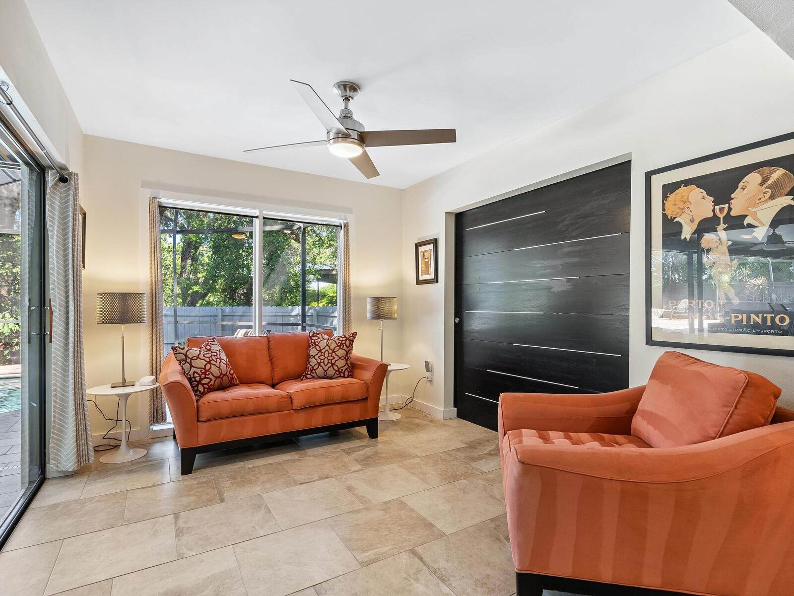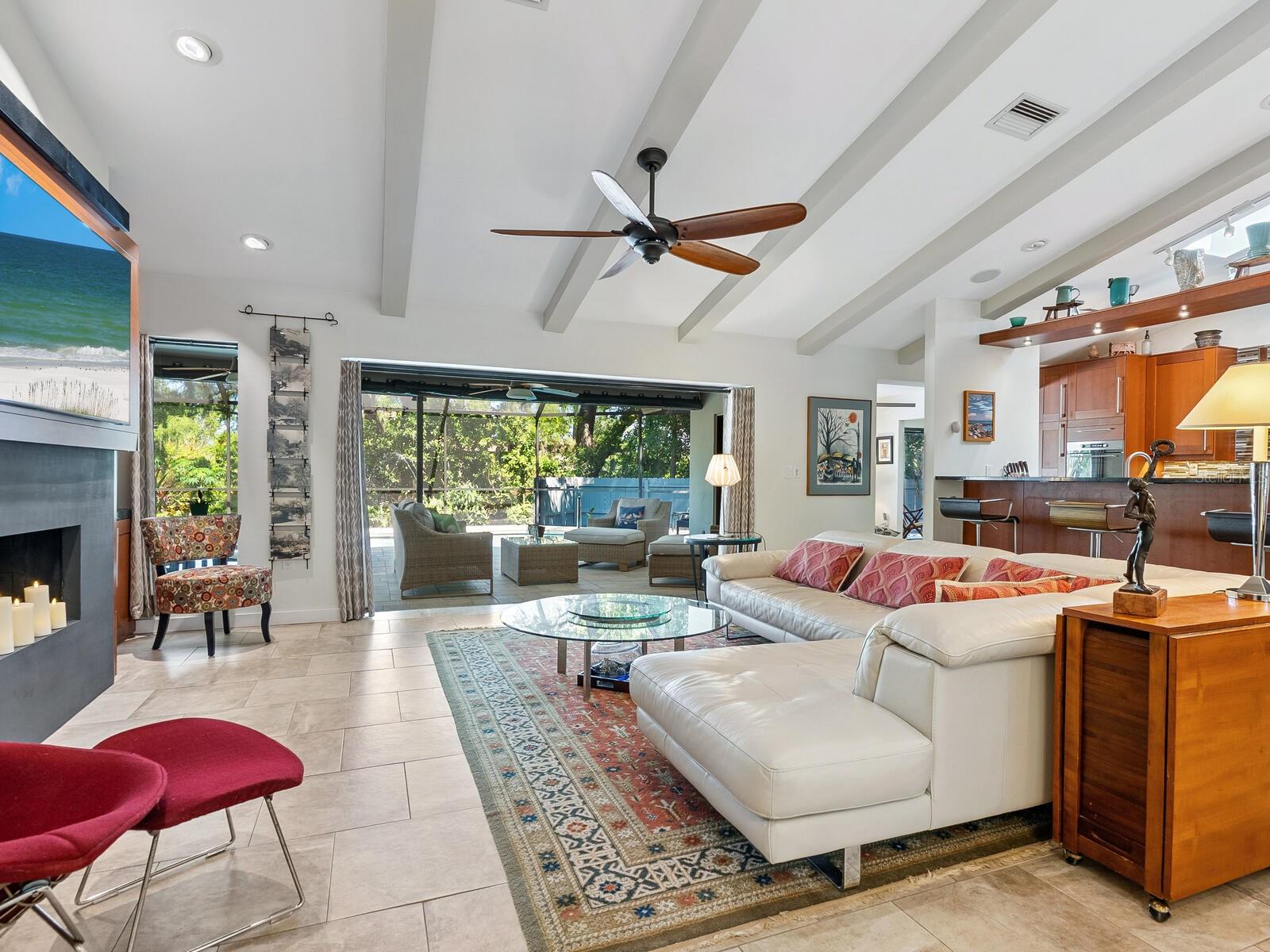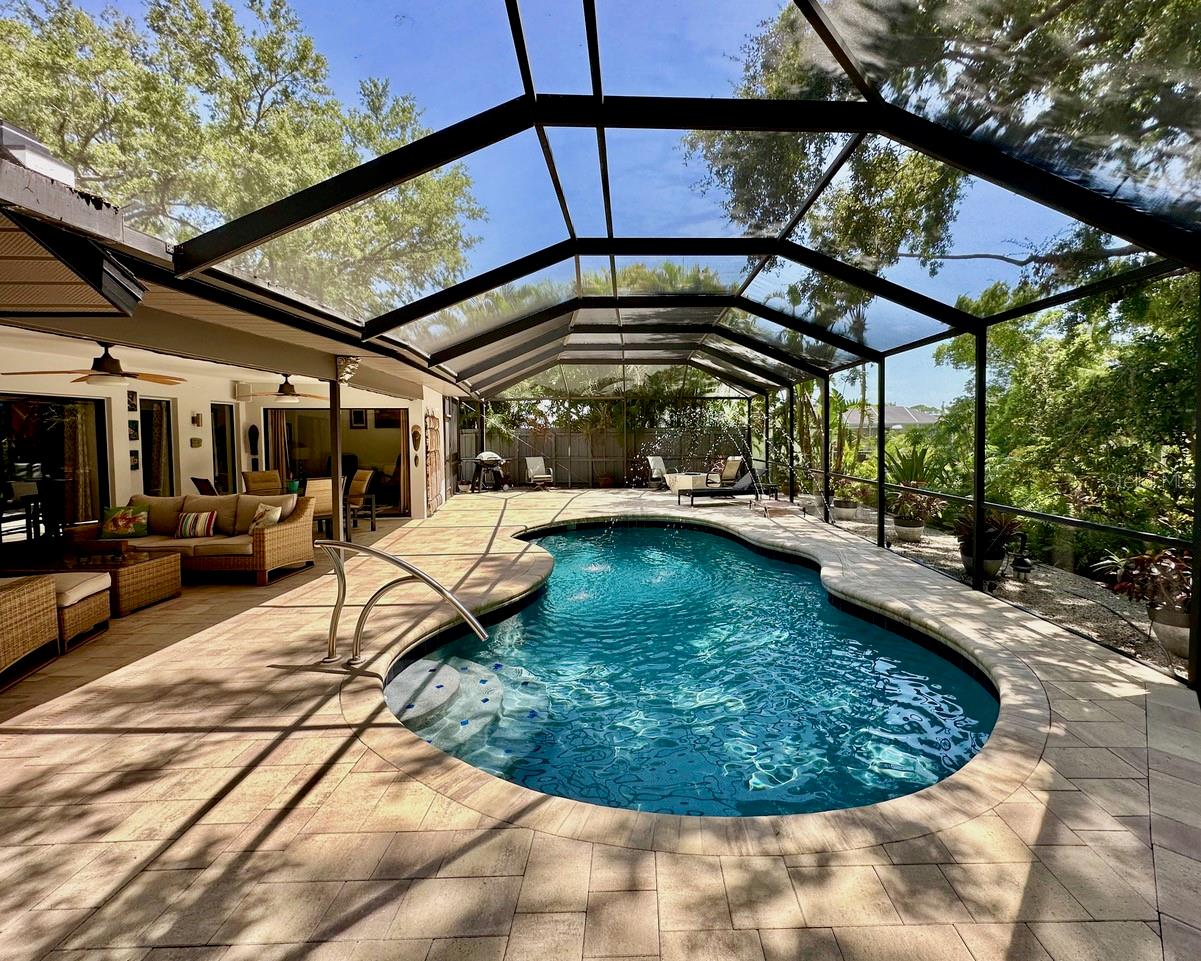 Award-Winning Architect's Personal Retreat in Sought-After Country Place!Step into Florida living at its finest in this beautifully updated 3-bedroom, 2-bath home--serenely nestled on an oversized corner lot with lush, mature landscaping backing-up to a nature preserve.From the moment you enter, you're greeted by the light-filled Living Room featuring vaulted ceilings, striking beam accents, and a cozy gas fireplace framed by custom built-ins; all seamlessly flowing onto the enormous, screened lanai with its coordinating pavers, gas connections for grill and fire-pit, heated pool, and greenery beyond; creating the perfect blend of charm, sophistication and nature, this really is Florida indoor/outdoor living at its finest! Thoughtful upgrades and meticulous attention to detail make this home live much larger than its square footage. The open layout flows effortlessly over gorgeous porcelain tile floors throughout the spacious main living areas.Features include architect-curated indoor/outdoor lighting, unique ceiling fans, custom closet fit-outs, abundant built-in storage, smart home technology, and high-quality appliances. Entering from the garage into the pantry/laundry area, an unexpected high level of finishes and artistic details welcome you home. The open skylit kitchen is filled with thoughtful details; a new high-end refrigerator, dishwasher and exhaust fan, a built-in microwave oven & electric range, an instant hot water dispenser, and granite countertops including a sit-up bar for serving casual meals or cocktails.The master suite is a true retreat, boasting a luxurious bathroom with view of a meditation garden. Enjoy the maximized walk-in closets and built-ins with custom jewelry drawers and ample shoe racks. Relax in the tranquil sitting area with peaceful views of the lanai and pool.This "Florida-split" floor plan separates the 2nd and 3rd bedrooms from the Master Suite. The second bedroom and bath can be isolated by a pocket door to make a private guest suite; while the spacious third bedroom is ideally situated to serve as a bedroom or a home office, with direct access to the rear garden. A deep well with a new pump for irrigating the lush landscape saves on water bills.The spacious 2-car garage has ample shelving, a work bench with cabinets overhead and below, and pull-down stairs to access the attic storage! And for your pups...a fenced dog area! This home, outside the flood zone, weathered the 2024 storms without a bit of damage!Don't miss this rare gem in a premier location--where comfort, style, community, and nature come together in perfect harmony! Enjoy ultimate privacy and year-round outdoor enjoyment in your screened lanai surrounded by nature's beauty.