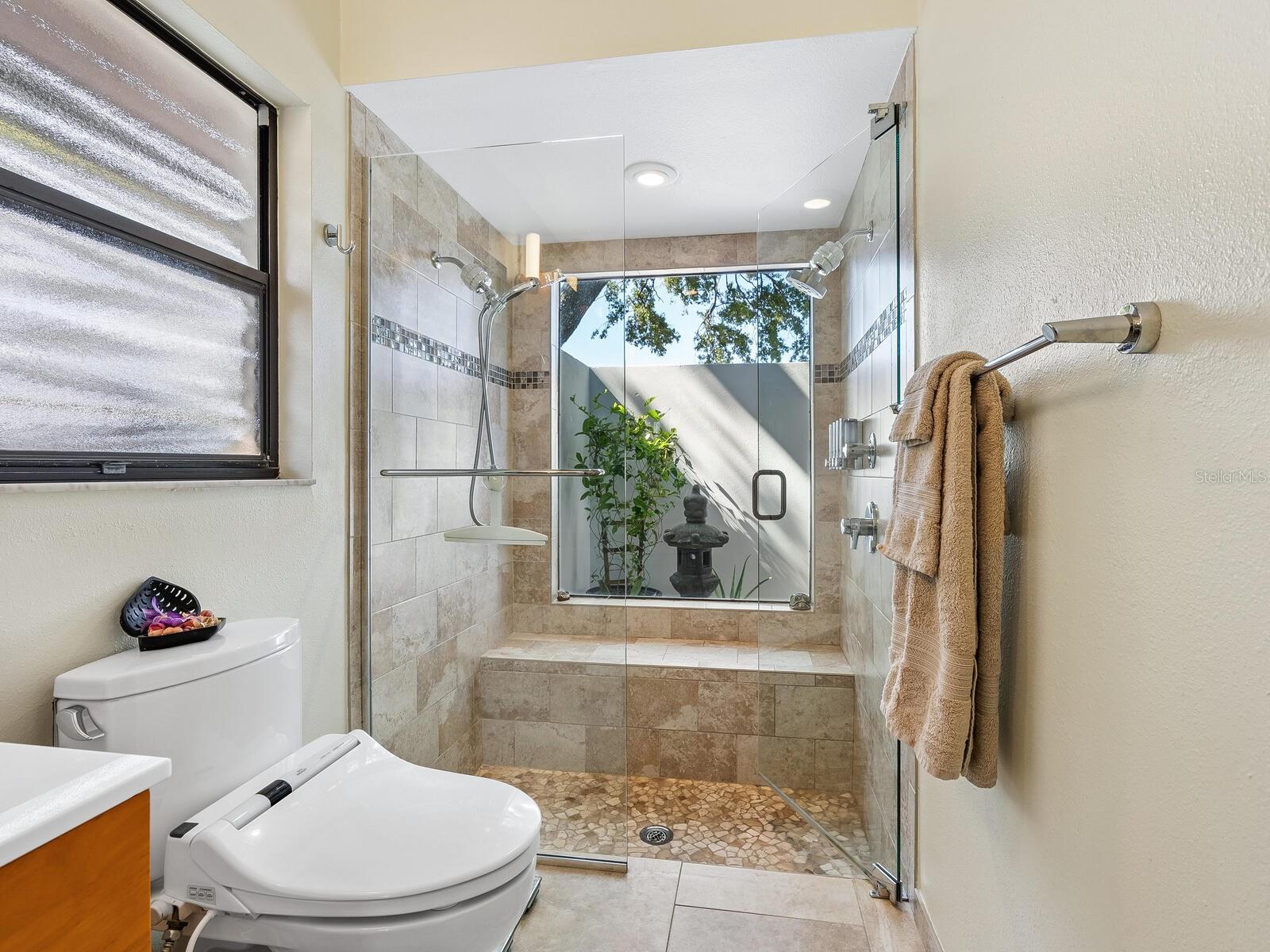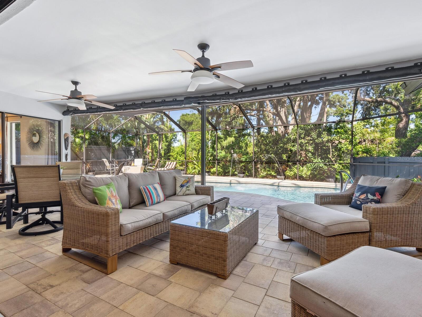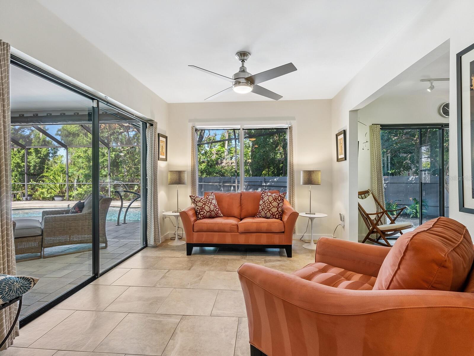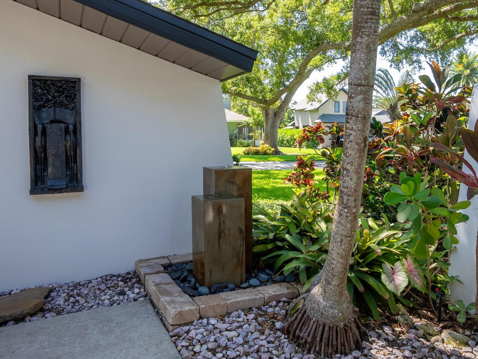 Award-Winning Architect's Personal Retreat in Sought-After Country Place!Step into Florida living at its finest in this beautifully updated 3-bedroom, 2-bath home--serenely nestled on an oversized corner lot with lush, mature landscaping backing-up to a nature preserve.From the moment you enter, you're greeted by the light-filled Living Room featuring vaulted ceilings, striking beam accents, and a cozy gas fireplace framed by custom built-ins; all seamlessly flowing onto the enormous, screened lanai with its coordinating pavers, gas connections for grill and fire-pit, heated pool, and greenery beyond; creating the perfect blend of charm, sophistication and nature, this really is Florida indoor/outdoor living at its finest! Thoughtful upgrades and meticulous attention to detail make this home live much larger than its square footage. The open layout flows effortlessly over gorgeous porcelain tile floors throughout the spacious main living areas.Features include architect-curated indoor/outdoor lighting, unique ceiling fans, custom closet fit-outs, abundant built-in storage, smart home technology, and high-quality appliances. Entering from the garage into the pantry/laundry area, an unexpected high level of finishes and artistic details welcome you home. The open skylit kitchen is filled with thoughtful details; a new high-end refrigerator, dishwasher and exhaust fan, a built-in microwave oven & electric range, an instant hot water dispenser, and granite countertops including a sit-up bar for serving casual meals or cocktails.The master suite is a true retreat, boasting a luxurious bathroom with view of a meditation garden. Enjoy the maximized walk-in closets and built-ins with custom jewelry drawers and ample shoe racks. Relax in the tranquil sitting area with peaceful views of the lanai and pool.This "Florida-split" floor plan separates the 2nd and 3rd bedrooms from the Master Suite. The second bedroom and bath can be isolated by a pocket door to make a private guest suite; while the spacious third bedroom is ideally situated to serve as a bedroom or a home office, with direct access to the rear garden. A deep well with a new pump for irrigating the lush landscape saves on water bills.The spacious 2-car garage has ample shelving, a work bench with cabinets overhead and below, and pull-down stairs to access the attic storage! And for your pups...a fenced dog area! This home, outside the flood zone, weathered the 2024 storms without a bit of damage!Don't miss this rare gem in a premier location--where comfort, style, community, and nature come together in perfect harmony! Enjoy ultimate privacy and year-round outdoor enjoyment in your screened lanai surrounded by nature's beauty.