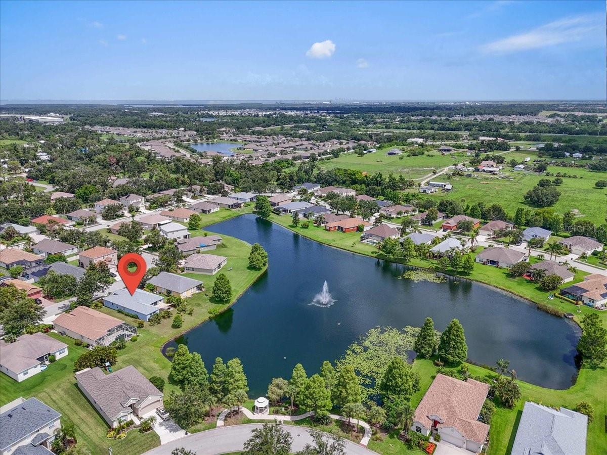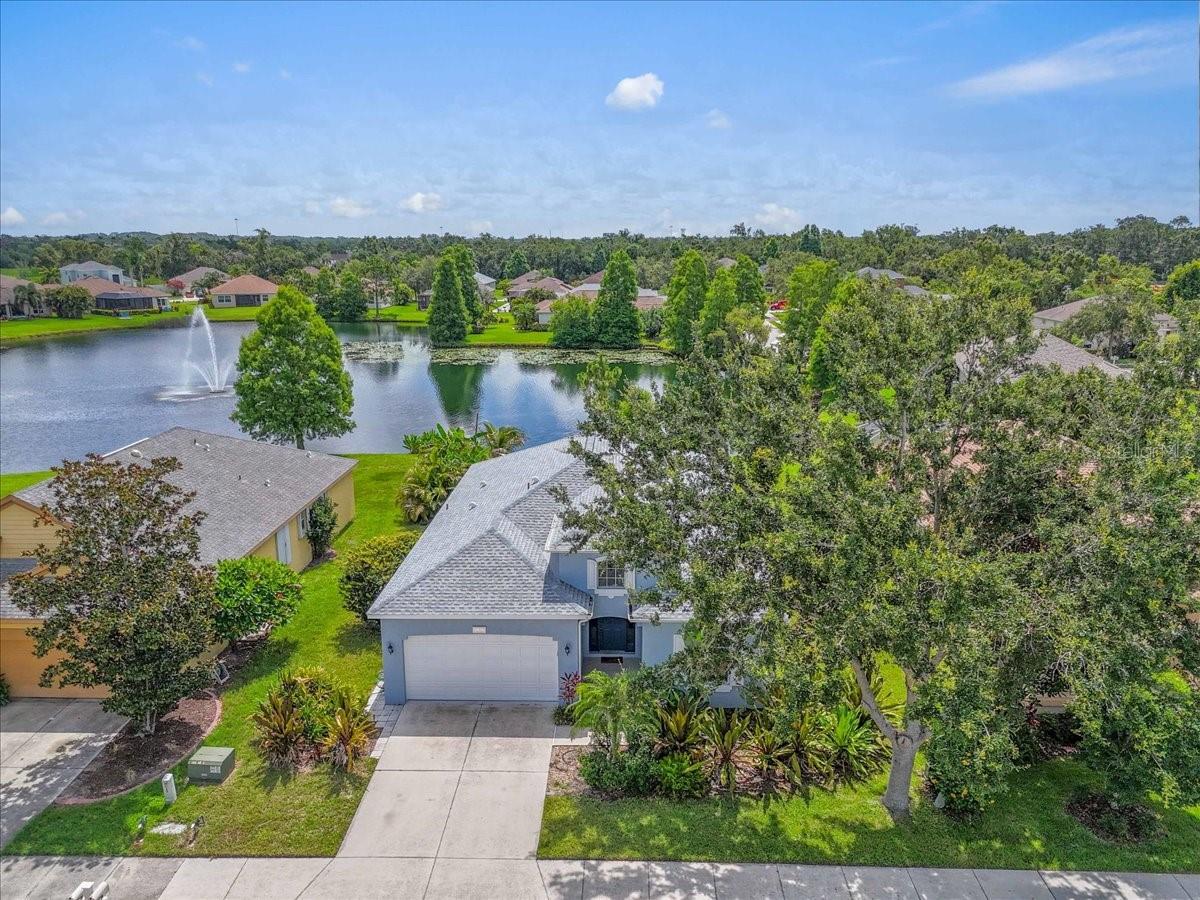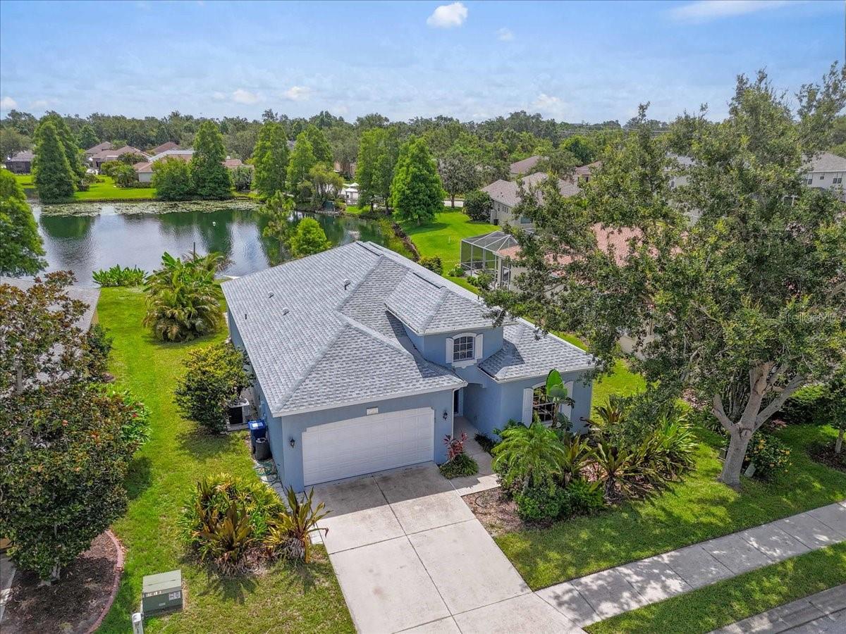 Charming Home in Northwood Park - Low HOA & No CDD Fees! Welcome to this beautifully maintained 4 bedroom home with relaxing water views located in the desirable Northwood Park community, offering the perfect blend of comfort, and convenience. As you approach the home, you'll be greeted by a well-landscaped front yard that sets the tone for what's to come. Stepping inside, you'll immediately notice the high ceilings that create an expansive, open atmosphere with water views from living areas, master bedroom, and 4th bedroom. The tile floors throughout the living areas, kitchen, and bathrooms offer both durability and ease of maintenance, while thoughtful architectural details like built in shelving in the family room add a touch of elegance. For those who love to cook and entertain, the kitchen is a focal point. It features solid surface countertops and wood cabinetry. Whether preparing everyday meals or hosting guests, you'll appreciate the closet pantry,breakfast bar, and island for added convenience. The open floor plan seamlessly connects the kitchen, dining, and living spaces,providing an ideal flow for both intimate gatherings and large parties. The primary suite is a private retreat, boasting water views, a walk-in closet, and an ensuite bath with dual sinks, a relaxing soaking tub, and a walk-in shower. New roof (2024), and a modern HVAC system(2023), Water heater(2019). Enjoy peaceful evenings or weekend relaxation in your private screened lanai, or entertain guests on your paver patio overlooking a serene pond. Don't miss out on this exceptional home that offers not just a comfortable living space, but also peace of mind with modern upgrades and thoughtful details.