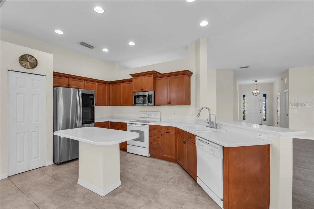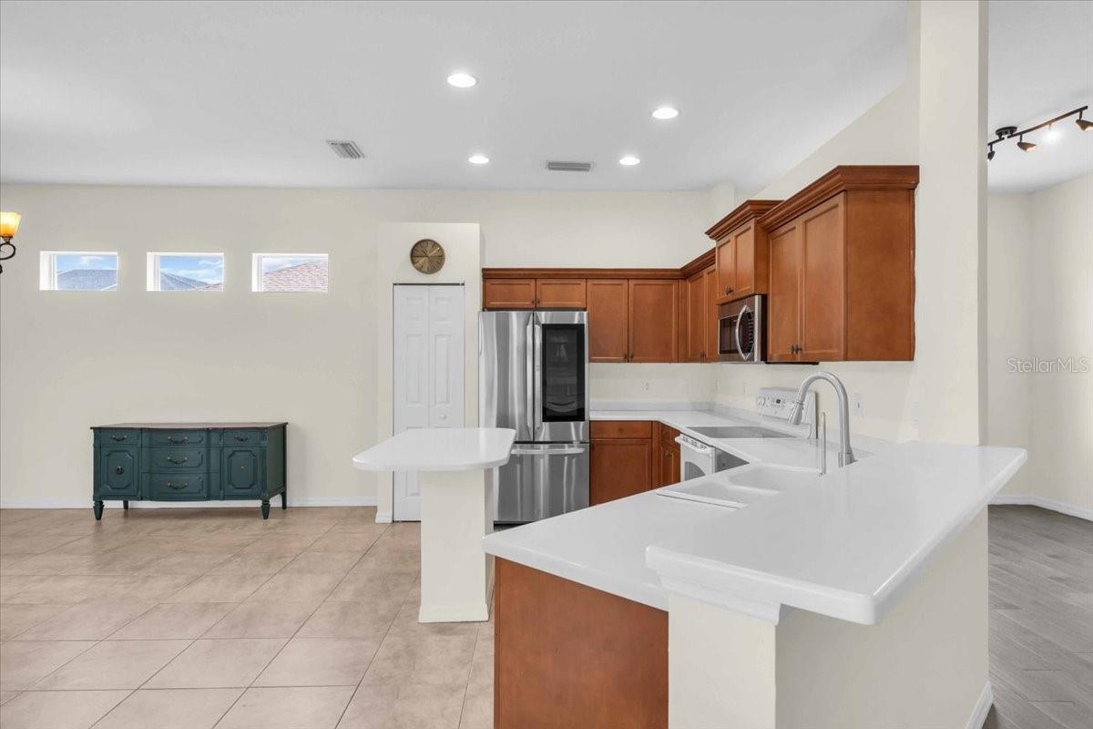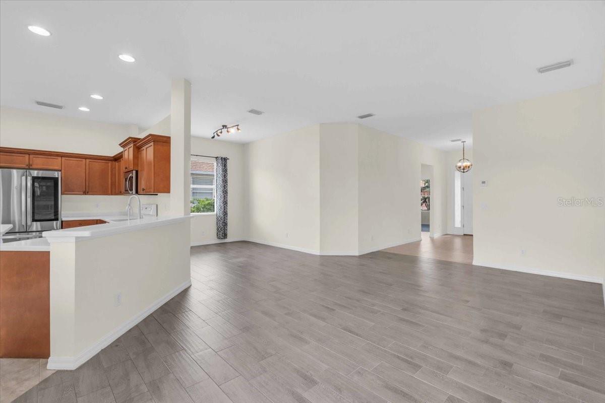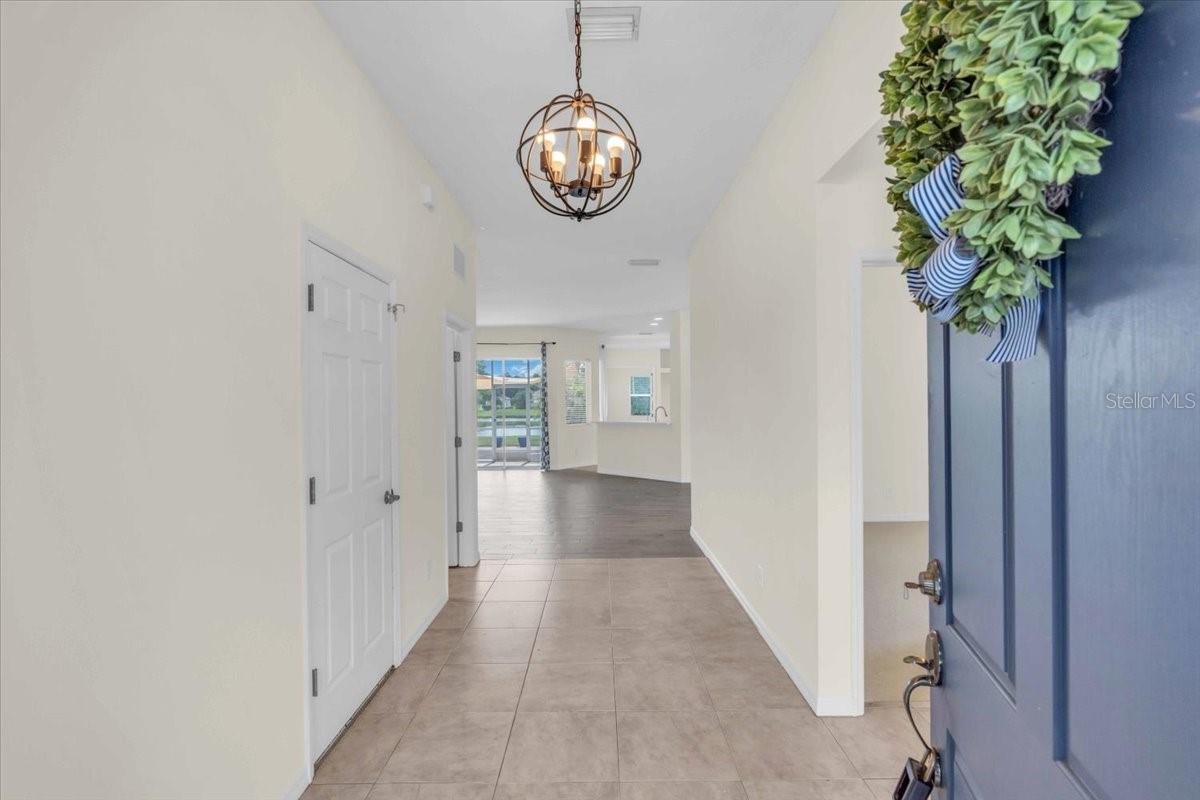 Charming Home in Northwood Park - Low HOA & No CDD Fees! Welcome to this beautifully maintained 4 bedroom home with relaxing water views located in the desirable Northwood Park community, offering the perfect blend of comfort, and convenience. As you approach the home, you'll be greeted by a well-landscaped front yard that sets the tone for what's to come. Stepping inside, you'll immediately notice the high ceilings that create an expansive, open atmosphere with water views from living areas, master bedroom, and 4th bedroom. The tile floors throughout the living areas, kitchen, and bathrooms offer both durability and ease of maintenance, while thoughtful architectural details like built in shelving in the family room add a touch of elegance. For those who love to cook and entertain, the kitchen is a focal point. It features solid surface countertops and wood cabinetry. Whether preparing everyday meals or hosting guests, you'll appreciate the closet pantry,breakfast bar, and island for added convenience. The open floor plan seamlessly connects the kitchen, dining, and living spaces,providing an ideal flow for both intimate gatherings and large parties. The primary suite is a private retreat, boasting water views, a walk-in closet, and an ensuite bath with dual sinks, a relaxing soaking tub, and a walk-in shower. New roof (2024), and a modern HVAC system(2023), Water heater(2019). Enjoy peaceful evenings or weekend relaxation in your private screened lanai, or entertain guests on your paver patio overlooking a serene pond. Don't miss out on this exceptional home that offers not just a comfortable living space, but also peace of mind with modern upgrades and thoughtful details.