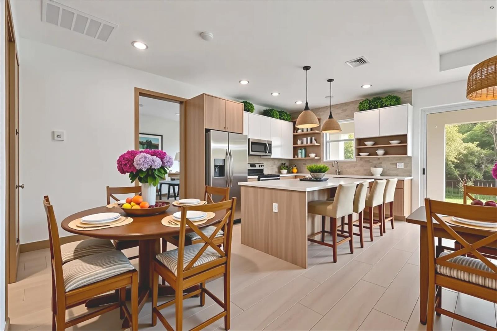 Welcome to 405 Sunset Road N - a stunning NEW CONSTRUCTION-MOVE IN READY Costal/Contemporary home located in the serene, deed-restricted community of Rotonda Heights. This beautifully designed 3-bedroom, 2-bathroom residence blends modern comfort with elegant finishes, offering the perfect retreat on Florida's Gulf Coast.Step inside and be greeted by soaring 9.4-foot ceilings, porcelain tile flooring throughout, an open-concept layout that fills the home with natural light, and IMPACT WINDOWS. The spacious great room flows seamlessly into the chef's kitchen, complete with 42" cabinetry, sleek stone countertops, stainless steel appliances, and a large island - perfect for entertaining.The private owner's suite features a walk-in closet and a luxurious en-suite bath with dual vanities, a tiled walk-in shower and a sleek tub to relax in. Two additional bedrooms provide flexibility for guests, an office, or hobbies.Outside, enjoy the tranquility of a quiet neighborhood just minutes from golf courses, beaches, dining, and shopping. The home is built on a low-maintenance lot with plenty of space for an outdoor living area with a rear porch already set up to enjoy.With NO FLOOD INSURANCE required and located just a short drive to Englewood Beach, Boca Grande, and Highway 75, this move-in-ready home is the perfect blend of convenience and coastal charm.