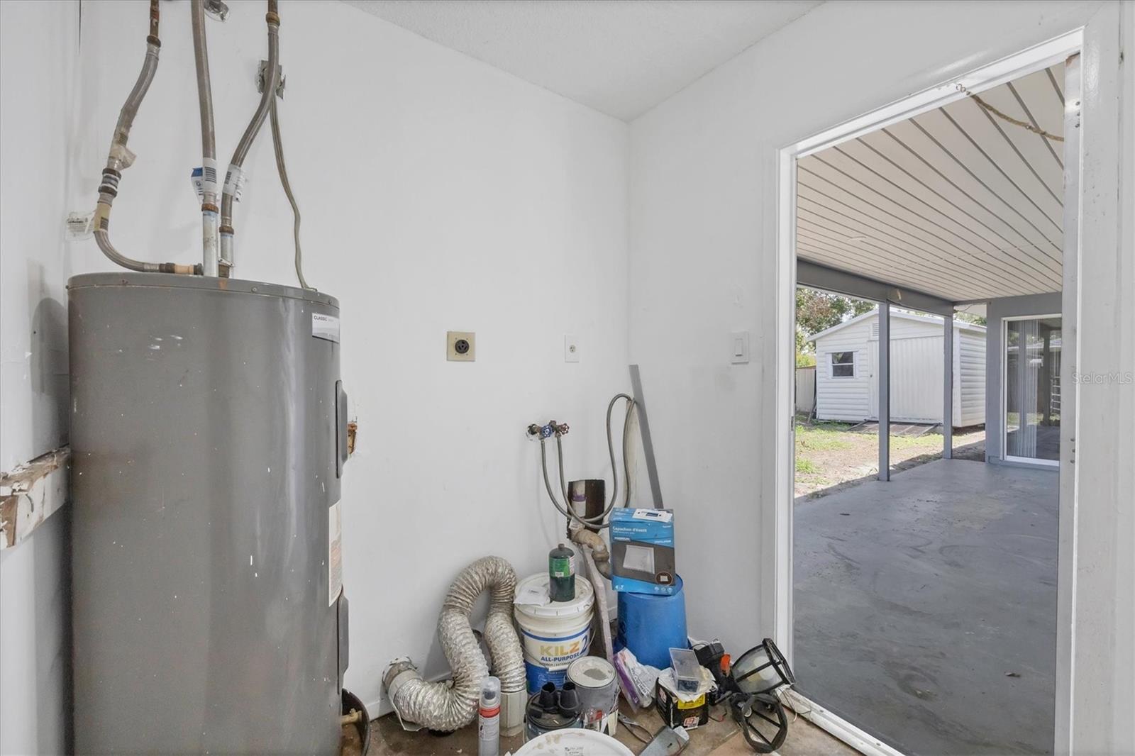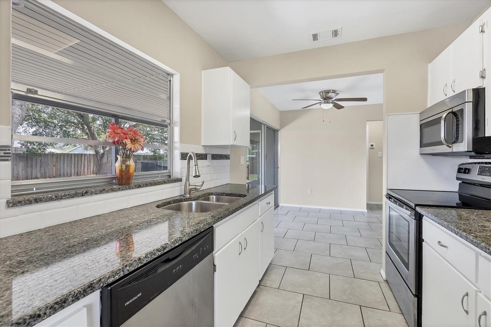 One or more photo(s) has been virtually staged. One or more photo(s) was virtually staged. How does a $30 a month electric bill sound? This home has whole house solar, installed 2022 at a cost of $39K, balance will be paid in full by seller at closing. DON'T LET THE SMALLER SQUARE FOOTAGE DISCOURAGE YOU; IT FEELS MUCH BIGGER WITH A GREAT FLOORPLAN. The home is on city water and sewer unlike a great deal of North Port. The roof, A/C, and electric are all in working order and updated in the past 10 years. The front door has been replaced as well as some of the windows. The interior has fresh paint and updated bathrooms. Plenty of closet space in the bedrooms with laminate wood flooring. There is a large open back porch that overlooks beautiful oak trees, a perfect spot to create a private oasis or space for the kids to play in the shade. A large shed is included and it is outfitted for power. Plenty of space in the side yard for a RV or boat. Bring your personal touch and enjoy many years as the seller has. NOT IN A FLOOD ZONE!!!
