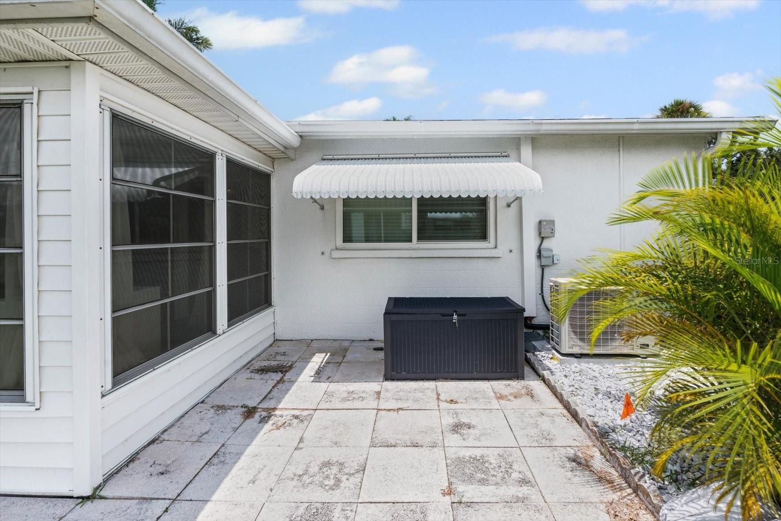Exterior: Awning(s), Lighting, Rain Gutters, Sliding Doors
