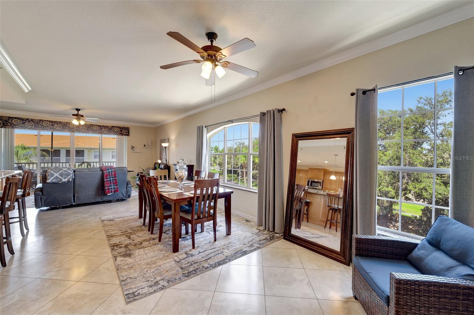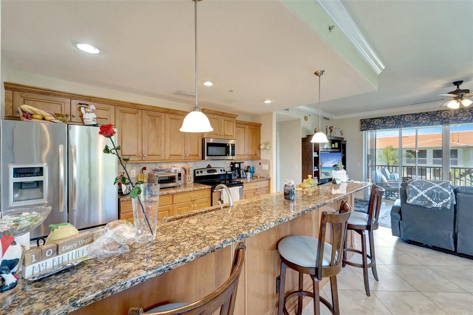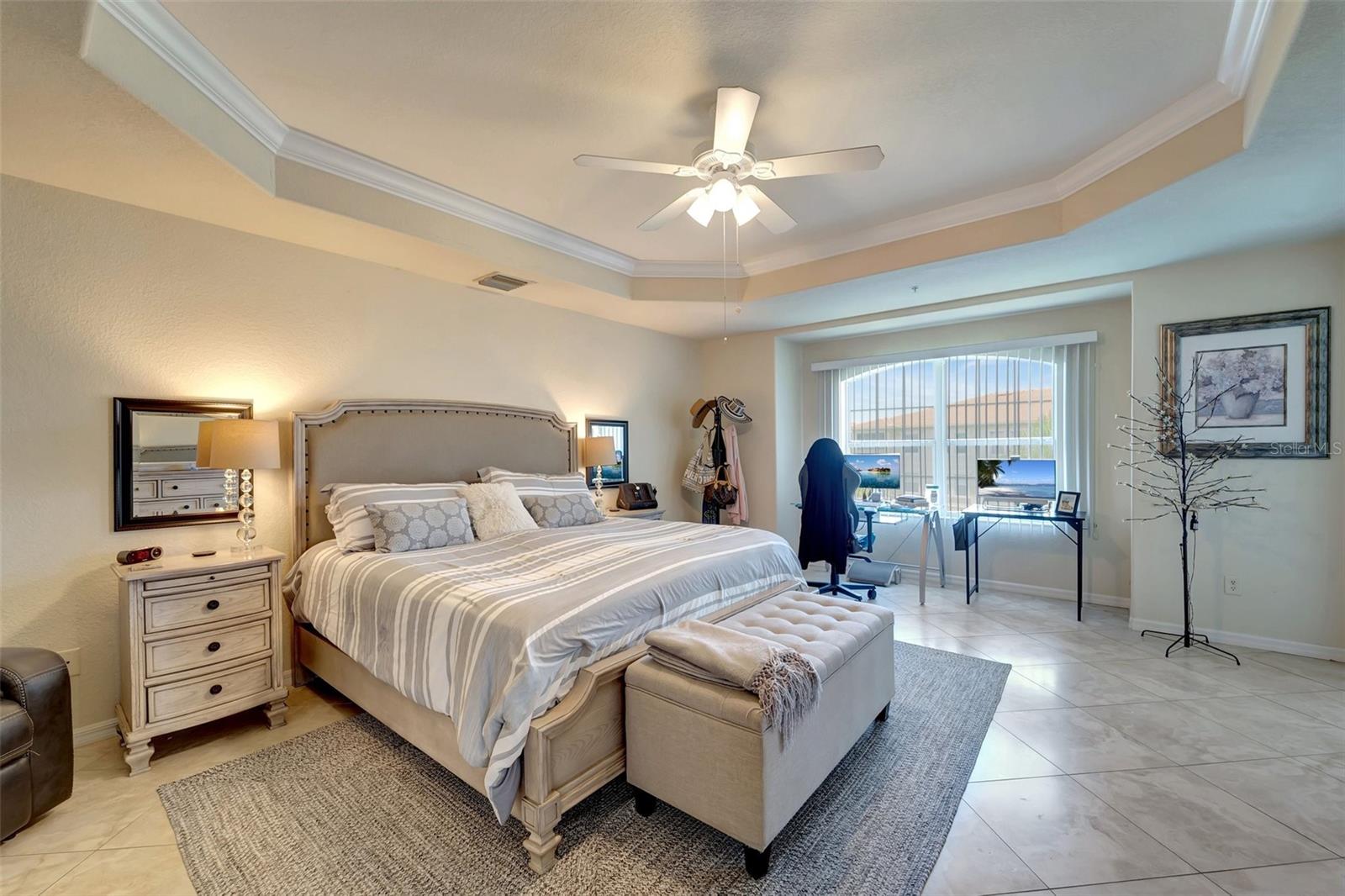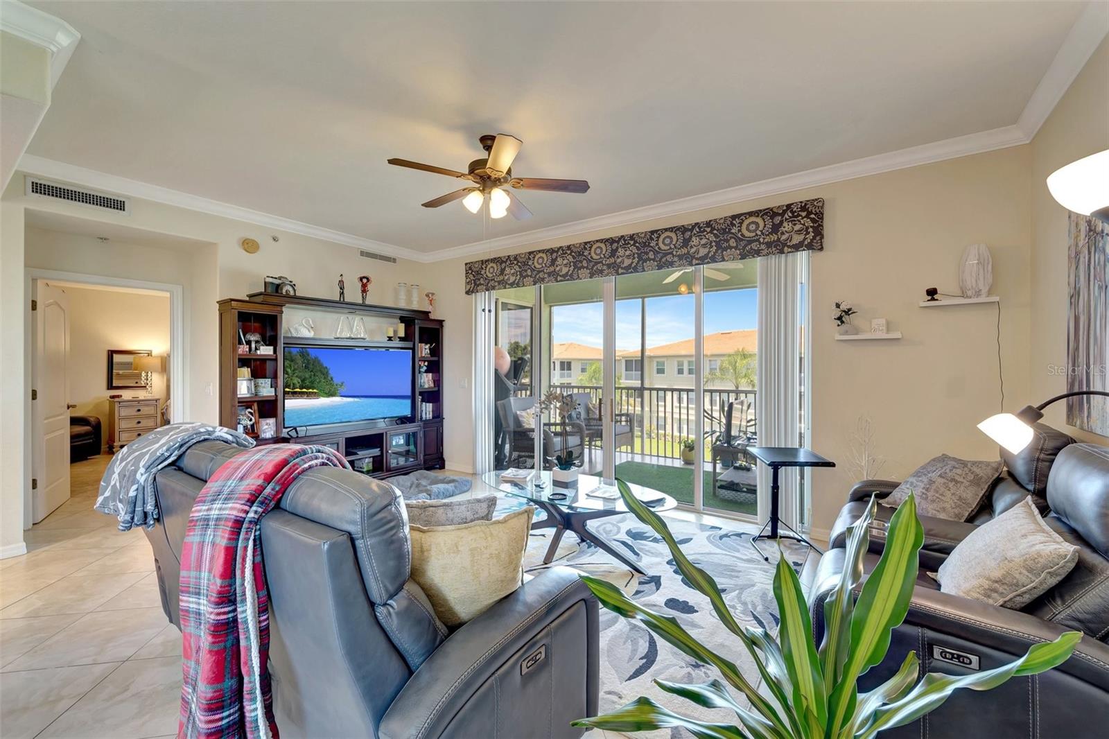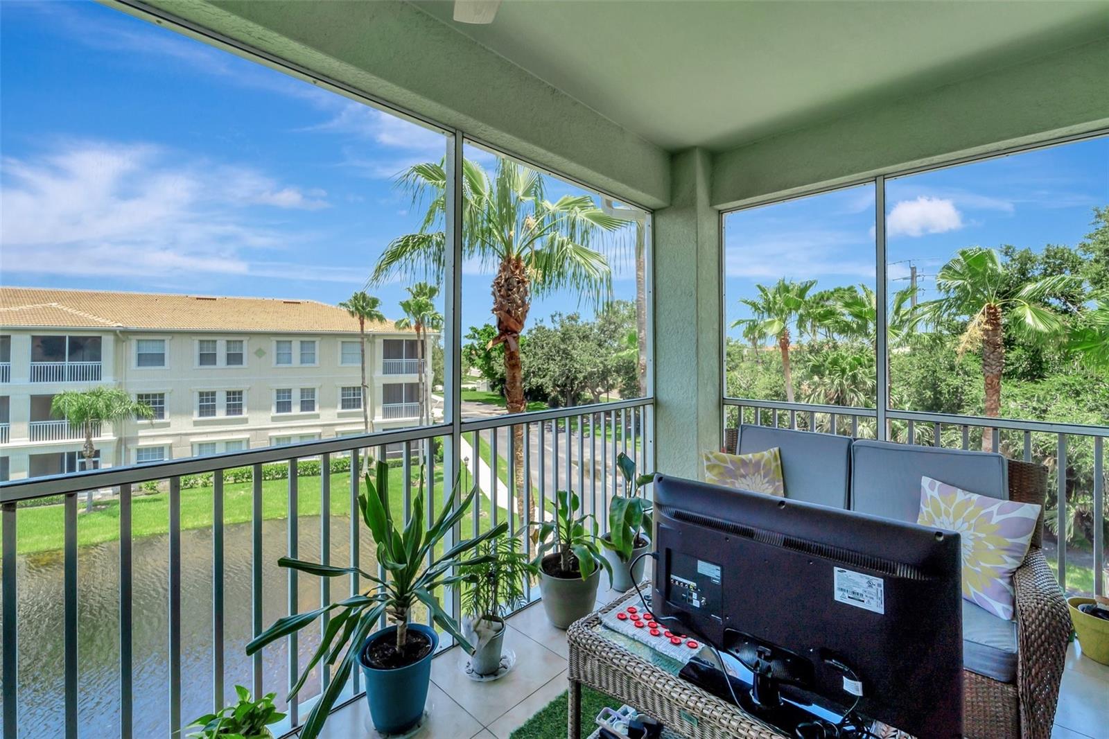 One or more photo(s) has been virtually staged. NEW PRICE - Enjoy Christmas morning opening presents in your new Venice home. This one-owner, top-floor 'Penthouse' unit has over 270 degrees of panoramic viewing. INSIDE, freshly painted from front to back and top to bottom, it's so bright and fresh looking you might mistake it for brand-new. New updated conveniences like ceiling fans with efficient LED lighting will keep you comfortable year-round and have you smiling. Even the patio doors in the Primary Bedroom and Living Room were just serviced. Be sure to open them - they glide with the touch of a single fingertip! Nothing left to do but unpack and enjoy! OUTSIDE, the San Lino lawns and landscaping are always impeccable. And the recently-completed Roof has a 50-year warranty and is PAID FOR! :-) These generously sized units are few in number and rarely available. Enjoy beautiful lake views in a resort-like atmosphere, all from a supreme location. At San Lino, you're never more than a few minutes from shopping, great restaurants, I-75, a variety of entertainment choices, and... THE BEACH! This former builder's model has only been occupied since 2011 and includes the extras they offered at the time. Low-maintenance, ceramic tile floors are used throughout the home, complementing the generous use of crown and ceiling mouldings. These spacious residences feature two bedrooms and two bathrooms, a Den/Office 'Flex' room, En-Suite laundry, a bonus storage room, and a covered and screened-in Lanai. A conveniently-located one-car garage right out front adds to the many perks of San Lino living. Ready now for your immediate inspection, approval,and move-in!