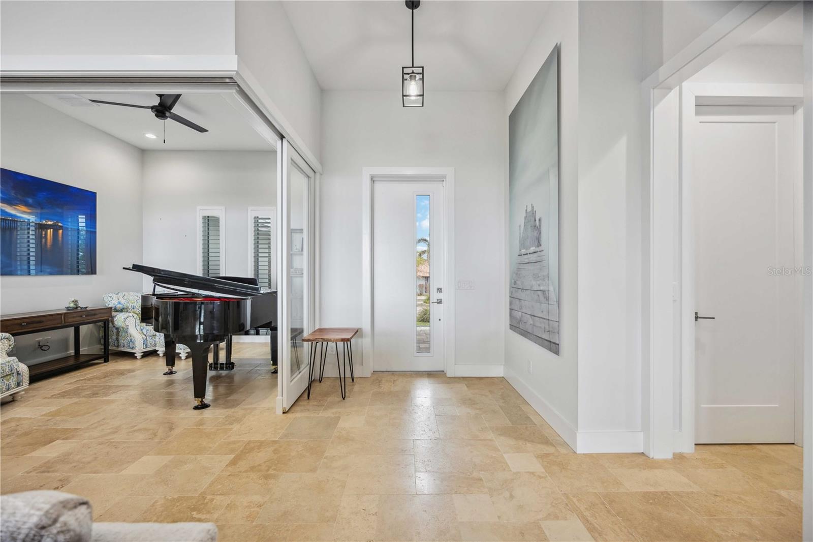 The breathtaking water views serve as a serene backdrop to this exquisite 4-bedroom, 3-bathroom waterfront, gulf access sanctuary with breathtaking, unobstructed views of Charlotte Harbor from nearly every room. This custom-built home built in 2020 offers both construction features and an elevation that were designed to prevent damage from storms. The home is built above flood level, has over-engineered construction foundation and roofing features, and has proven to withstand impact or damage from all hurricanes and tropical storms occurring since it was built! Literally zero damage! No Expenses have been spared in the Well Appointed Waterfront Pool Home featuring Standing Seam Metal Roof, Impact Glass Windows, Aluminum Soffits with 2 ft. overhang for Maximum Sun Protection, Four (4) Bedrooms, Three Full (3) Baths, Attached Oversized Three (3) Car Garage, Travertine Flooring throughout, Solid Wood Cabinetry throughout, Solid Core Interior Doors throughout, Spray Foam Insulation, Volume Ceilings, Open and Bright Great Room with Floor to Ceiling Entertainment Wall with 74"Dimplex Electric Fireplace, 75" LG TV and Bose Soundtouch Soundbar, Zero Corner Doors, Open Kitchen with Expansive Island with Breakfast Bar, GE Profile Appliances, Built in Oven, Induction Cooktop, Stone Counters, Luxurious Private Owners Suite, Separate Den/Piano Room or would make a Great Executive Home Office, Large Laundry Room with Additional Storage. Plantation shutters throughout add a touch of timeless elegance while offering privacy and natural light. Ideal for Entertaining is the Additional Living Space provided by the Spacious Lanai with a newly installed retractable Hurricane Shutter offering additional protection from storms or indoor/outdoor living options, Pre-plumbed Outdoor Designated Kitchen Area with Vent in Place ready for you to Customize your Outdoor Grilling Needs and the Screened Saltwater Pool with new pool heater. Paver Drive and Walkway, there is room on the Eastside of the Home to Park an RV and on the Right side of the Home there is a Custom Rack to Store Kayaks/Canoes. Electrical panel set up for Portable Generator (included with sale). There is a large .5 acre yard and your own Private Sandy Beach, giving you Endless Views and Spectacular Sunsets, plus you are moments to Outstanding Boating, Fishing, and Kayaking. You will be just a Short Drive to the Port Charlotte Beach Complex, Tennis, Shopping, Airports, the Sunseeker Resort, Rays Sports Complex, Dining, Medical, Punta Gorda, Boca Grande, Golf, Pickleball and all that Southwest Florida Offers. Seller has dock plans approved by the Corps of Engineers and quote for future dock available. Seller to include one year home warranty with purchase. We Invite you to schedule a Tour and Make an Offer Today, your Waterfront Lifestyle awaits. Current Homeowners insurance yearly policy is $3250 and Flood Policy yearly is $1847. Seller to provide one year whole home warranty at closing