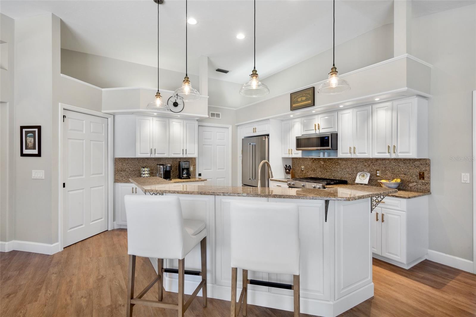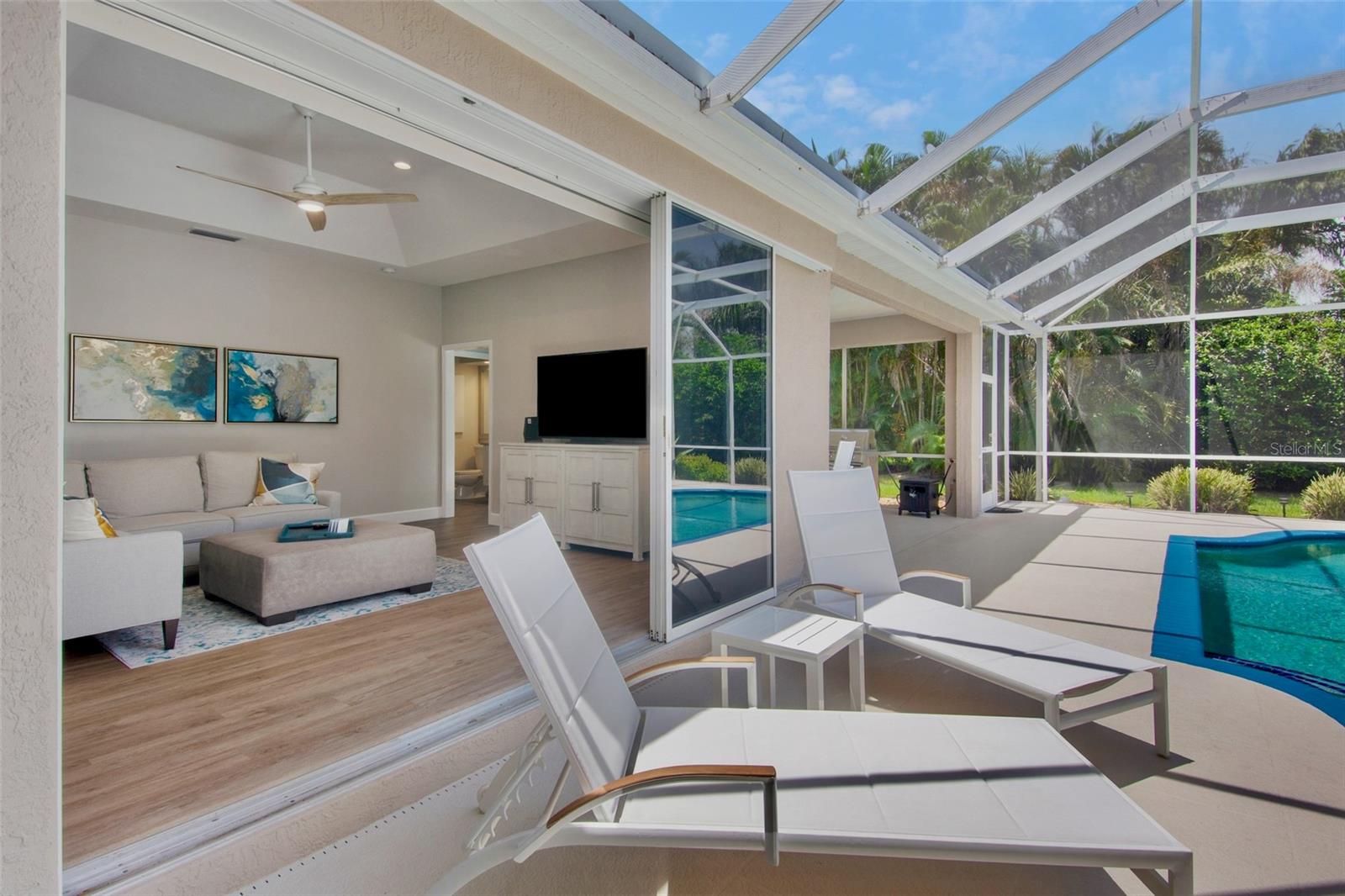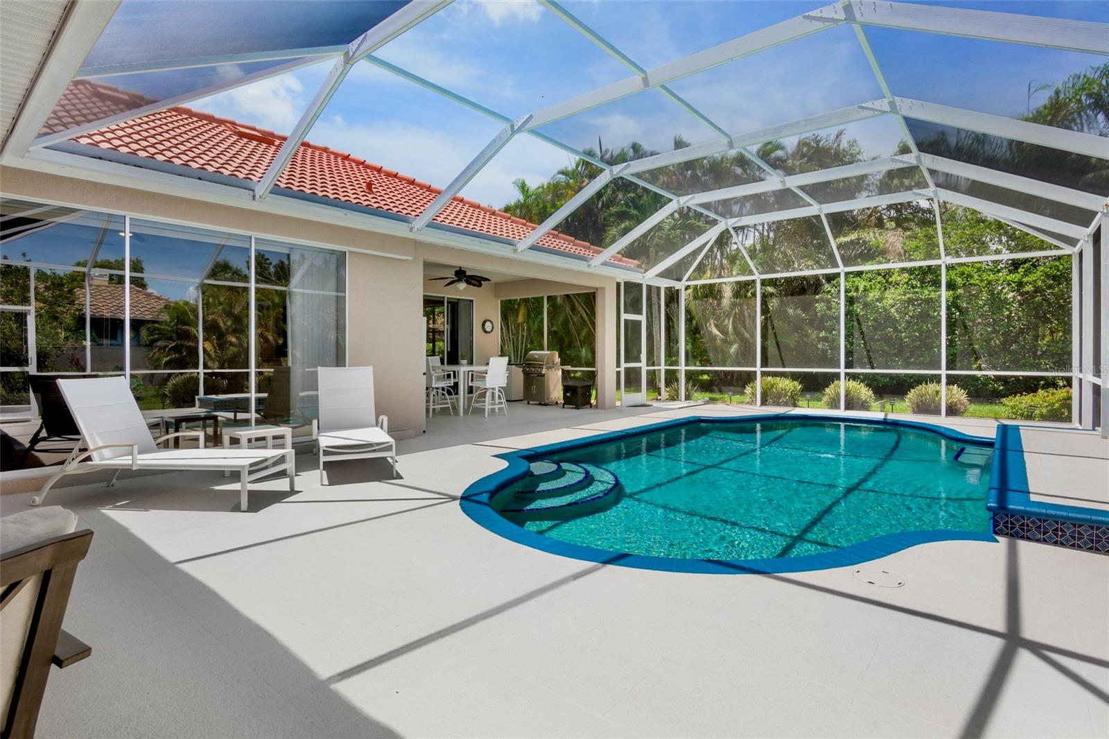 "Move-In Ready" Just Reached a Whole New Level! Welcome to this immaculate 4-BEDROOM + OFFICE/DEN + 3 FULL BATHS , ideally located behind the gates of the beautifully maintained Turtle Rock community--renowned for its scenic walking trails, mature landscaping, and picturesque natural vistas. This stunning residence offers true peace of mind and modern comfort with a brand new roof $52,736.00(2024) Thoughtful upgrades enhance both the aesthetics and functionality of this beautifully designed built home by renown builder Todd Johnston. Step inside to a spacious, light-filled interior adorned with luxury vinyl flooring throughout, elegant 5-inch baseboards, crown moldings, tray ceilings, and a fresh designer color palette inside and out. The updated kitchen is a chef's dream, featuring granite countertops and backsplash, premium KitchenAid stainless steel appliances including a natural gas range ( Turtle Rock is a natural gas community) with convection oven, built-in microwave, three-door counter-depth refrigerator, and dishwasher. Raised-panel wood cabinetry with soft-close hinges and sleek modern hardware enhance the kitchen, laundry room, hall, and guest bath. Storage has been reimagined with custom wood organizers in the walk-in pantry and closets. All lighting has been updated to energy-efficient LED fixtures, including stylish pendant lights and upgraded ceiling fans. Each bathroom showcases contemporary quartz countertops, updated fixtures, and framed mirrors. For added consistency, all door hardware and hinges have been replaced for a seamless updated look throughout. A pair of double leaded-glass front doors offers a grand and elegant entry. The home has been completely re pipped and features a natural gas water heater and gas furnace integrated with the air handler for efficient climate control Lennox AC system $ 16,320.00.(2023) . Step outside to the oversized screened-in pool area, complete with an expansive lanai and two covered verandas--one of which is pre-plumbed for a future outdoor kitchen. The 2-car garage is equally impressive, offering an epoxy-finished floor, a level 2 electric car charger, generator ready electric breaker system, ceiling mounted storage racks, cabinetry, attic access via pull-down ladder, and even a bike pulley system. An extended 3-car-wide driveway provides generous parking. Curb appeal is enhanced by an updated landscaping package and a reclaimed water irrigation system with timer--conveniently (Reclaimed water is included in the HOA dues). As a Turtle Rock resident, enjoy access to resort-style amenities: a heated community pool, tennis and basketball courts, clubhouse, playground, and miles of scenic trails. All this is just minutes from the Legacy Trail, top-rated schools, Siesta Key Beach, the YMCA, and a wide array of shopping and dining destinations. This truly move-in ready home combines thoughtful upgrades, timeless style, and an exceptional location in one of Sarasota's most desirable gated communities. Schedule your private showing today before it's too late!