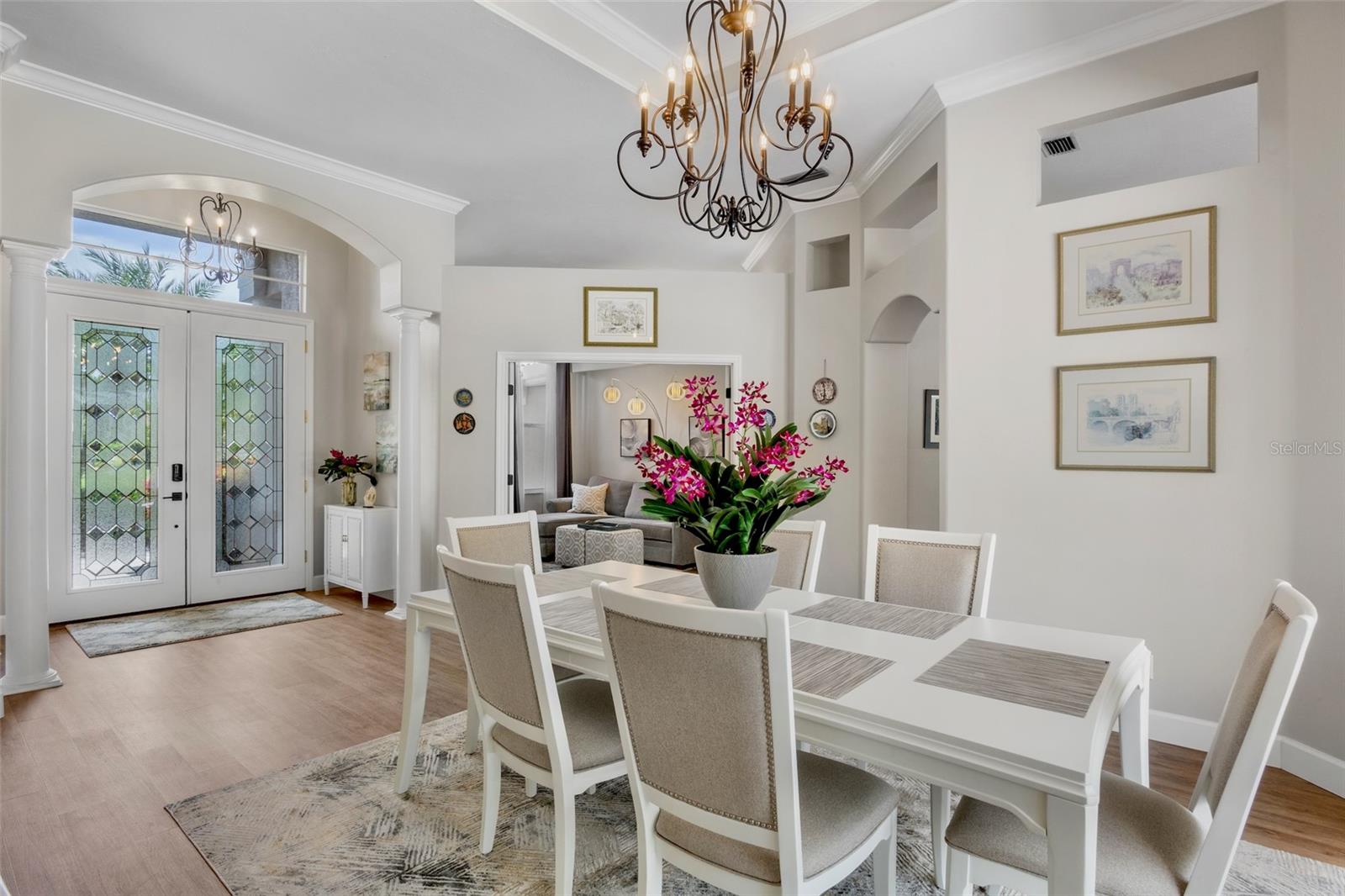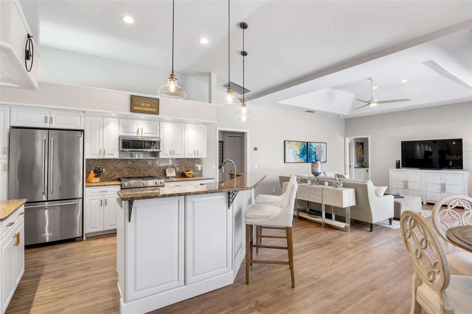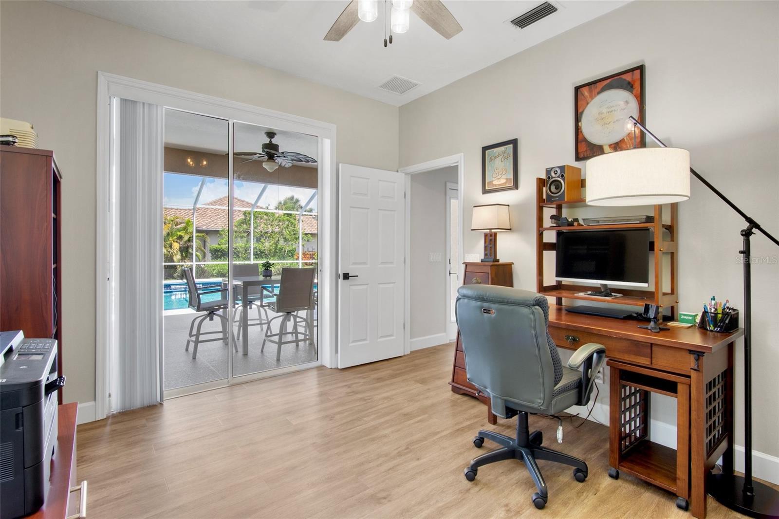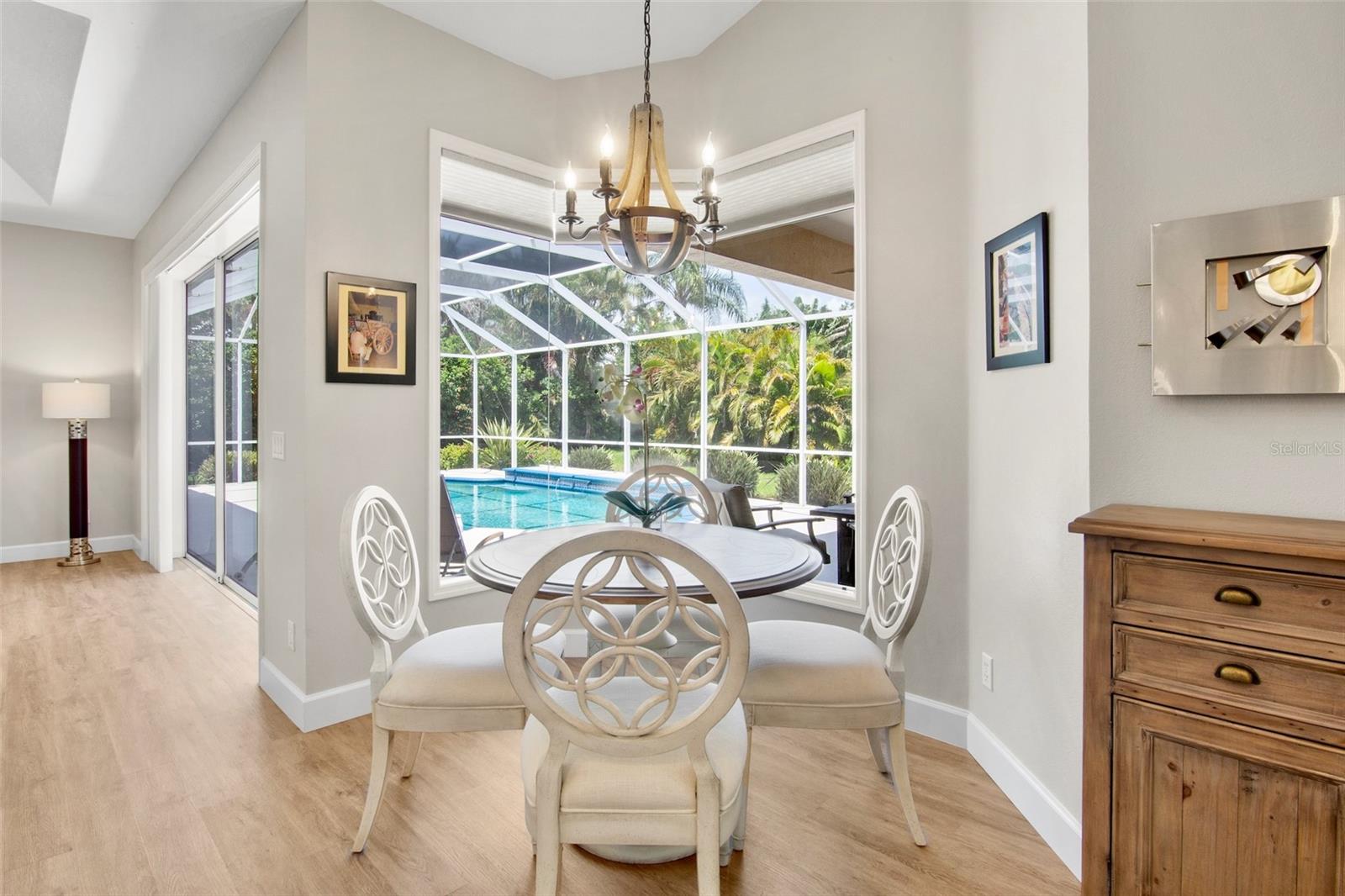 "Move-In Ready" Just Reached a Whole New Level! Welcome to this immaculate 4-BEDROOM + OFFICE/DEN + 3 FULL BATHS , ideally located behind the gates of the beautifully maintained Turtle Rock community--renowned for its scenic walking trails, mature landscaping, and picturesque natural vistas. This stunning residence offers true peace of mind and modern comfort with a brand new roof $52,736.00(2024) Thoughtful upgrades enhance both the aesthetics and functionality of this beautifully designed built home by renown builder Todd Johnston. Step inside to a spacious, light-filled interior adorned with luxury vinyl flooring throughout, elegant 5-inch baseboards, crown moldings, tray ceilings, and a fresh designer color palette inside and out. The updated kitchen is a chef's dream, featuring granite countertops and backsplash, premium KitchenAid stainless steel appliances including a natural gas range ( Turtle Rock is a natural gas community) with convection oven, built-in microwave, three-door counter-depth refrigerator, and dishwasher. Raised-panel wood cabinetry with soft-close hinges and sleek modern hardware enhance the kitchen, laundry room, hall, and guest bath. Storage has been reimagined with custom wood organizers in the walk-in pantry and closets. All lighting has been updated to energy-efficient LED fixtures, including stylish pendant lights and upgraded ceiling fans. Each bathroom showcases contemporary quartz countertops, updated fixtures, and framed mirrors. For added consistency, all door hardware and hinges have been replaced for a seamless updated look throughout. A pair of double leaded-glass front doors offers a grand and elegant entry. The home has been completely re pipped and features a natural gas water heater and gas furnace integrated with the air handler for efficient climate control Lennox AC system $ 16,320.00.(2023) . Step outside to the oversized screened-in pool area, complete with an expansive lanai and two covered verandas--one of which is pre-plumbed for a future outdoor kitchen. The 2-car garage is equally impressive, offering an epoxy-finished floor, a level 2 electric car charger, generator ready electric breaker system, ceiling mounted storage racks, cabinetry, attic access via pull-down ladder, and even a bike pulley system. An extended 3-car-wide driveway provides generous parking. Curb appeal is enhanced by an updated landscaping package and a reclaimed water irrigation system with timer--conveniently (Reclaimed water is included in the HOA dues). As a Turtle Rock resident, enjoy access to resort-style amenities: a heated community pool, tennis and basketball courts, clubhouse, playground, and miles of scenic trails. All this is just minutes from the Legacy Trail, top-rated schools, Siesta Key Beach, the YMCA, and a wide array of shopping and dining destinations. This truly move-in ready home combines thoughtful upgrades, timeless style, and an exceptional location in one of Sarasota's most desirable gated communities. Schedule your private showing today before it's too late!