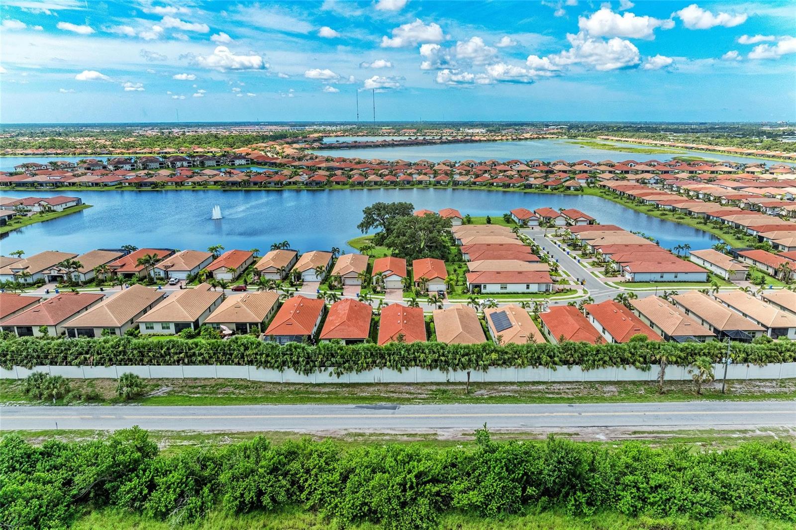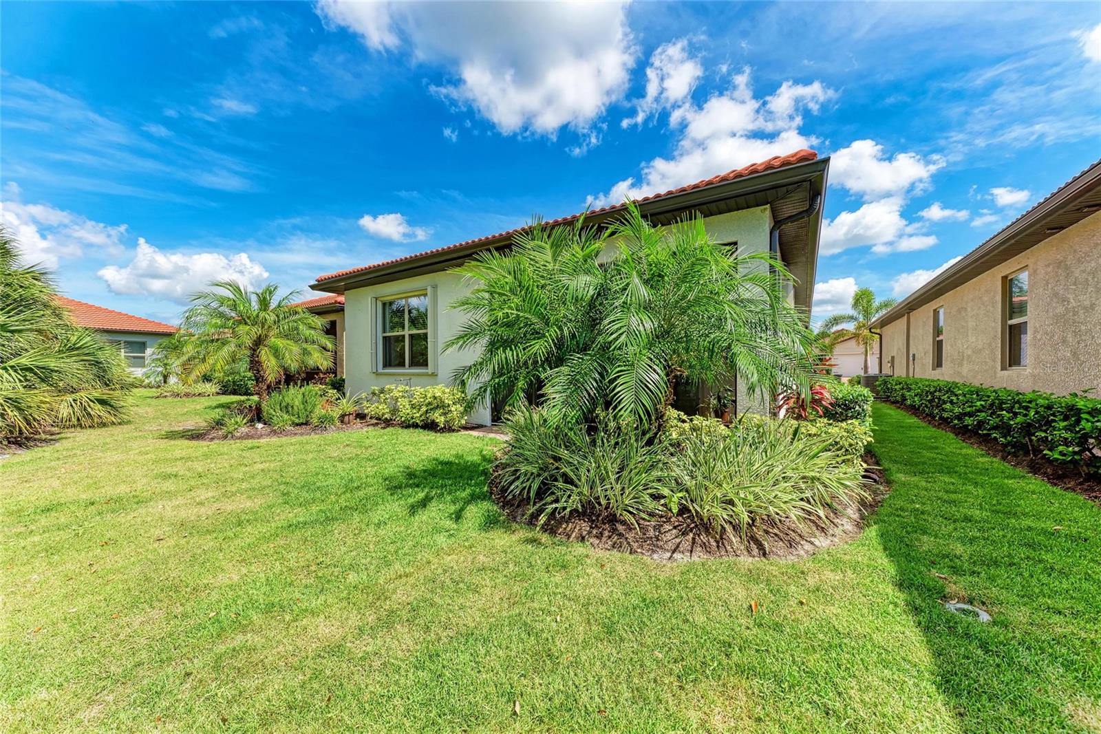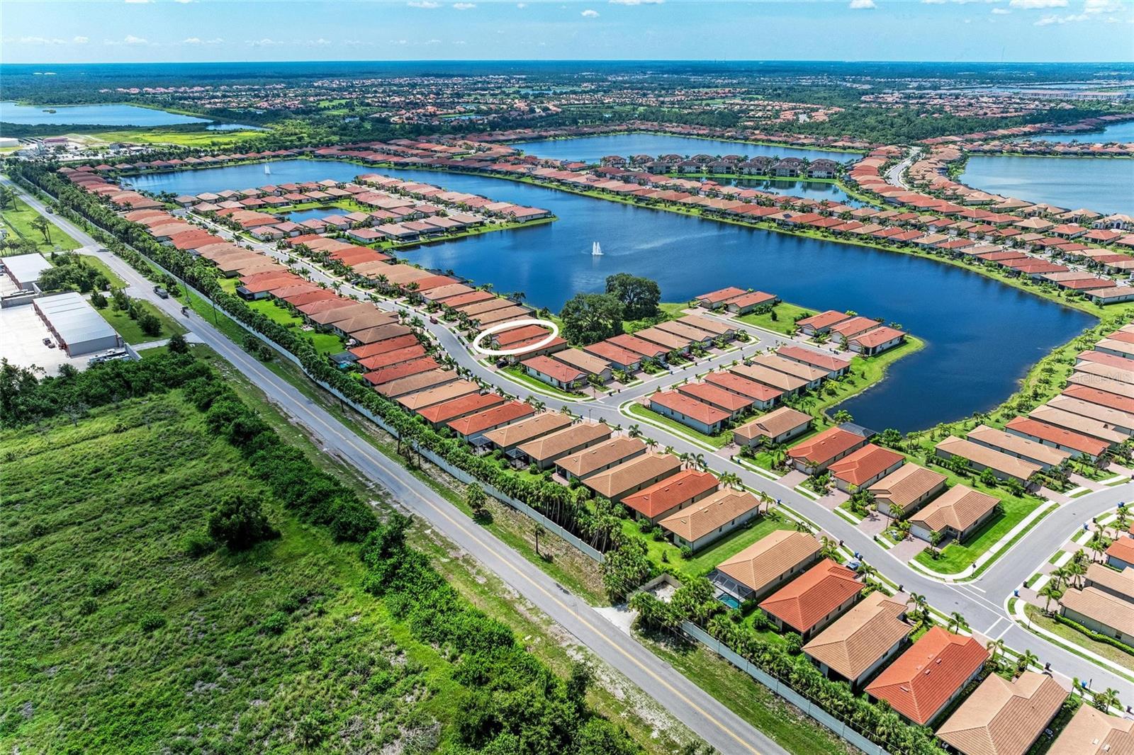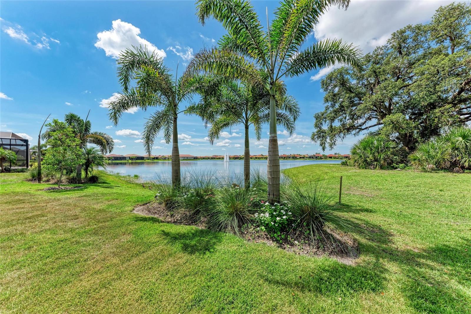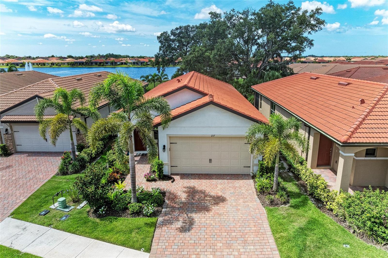 You will adore this well-kept three-bedroom, two-bathroom home on a lovely lot that provides seclusion and a tranquil haven. Savor calm mornings or leisurely nights from the comfort of your paver lanai, which has Clearview Screening offering unhindered views of the shimmering lake, rich landscape, and swaying palm trees.All the amenities you desire in your new home are included in this maintenance-free, move-in ready masterpiece. Enjoy the open concept design, which makes it perfect for daily living and entertaining. The kitchen features quartz countertops, stainless steel appliances, a Kinetico water filtration system, white shaker soft-close cabinets, a huge walk-in pantry, a backsplash of designer glass tiles, and a large island that is ideal for entertaining. Crown molding, custom closets in every bedroom, luxurious carpet in the master bedroom, chic plank tile throughout, and beautiful lighting and fans throughout. Additionally, there is a leaf filter gutter protection system that makes water drainage easier for easy home maintenance. For your peace of mind, there are also more recent accordion-style hurricane shutters and impact glass for the front entry window. This house exudes beauty from the inside out!The community offers an array of resort-style amenities, including: Infinity-edge lakefront pool, firepit, Clubhouse with screened outdoor lounge area tennis, pickleball, and bocce ball courts, playground, dog park and over 200 acres of interconnected lakes with dock to launch your kayak. Conveniently located near Sarasota Memorial Hospital, top-rated medical facilities, shopping, dining, the Legacy Bike Trail, and only minutes to the Gulf Beaches, this home offers the perfect blend of luxury, comfort, and location. Don't miss this must-see home and make it yours today!
