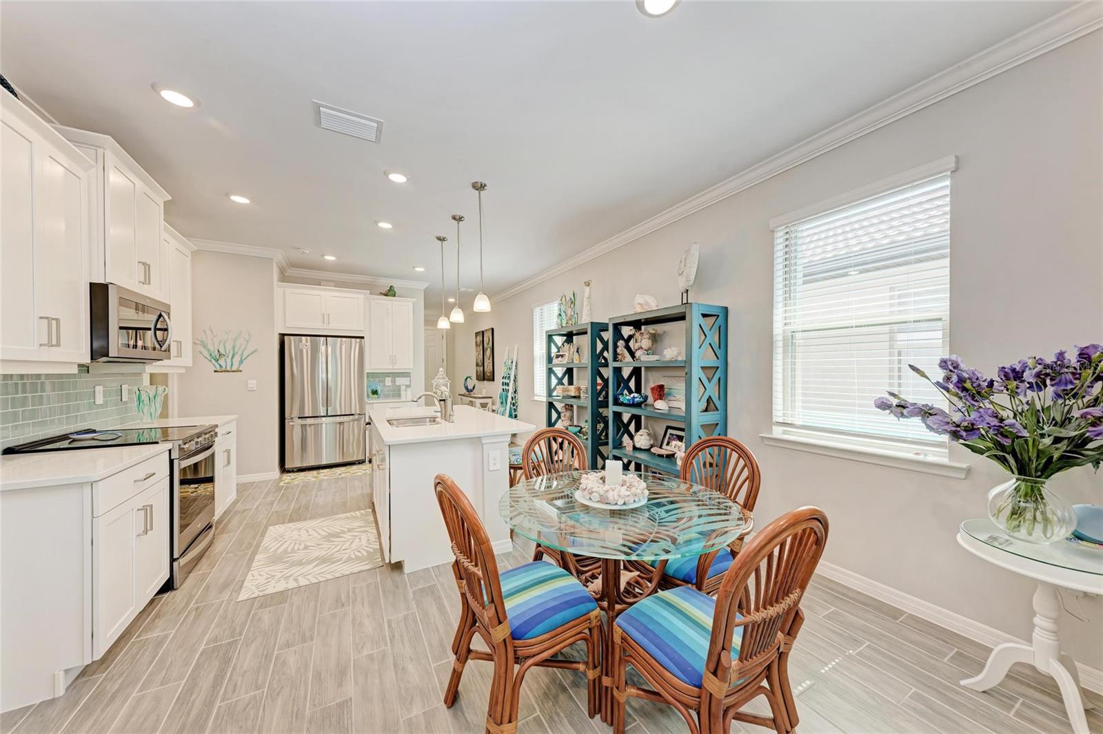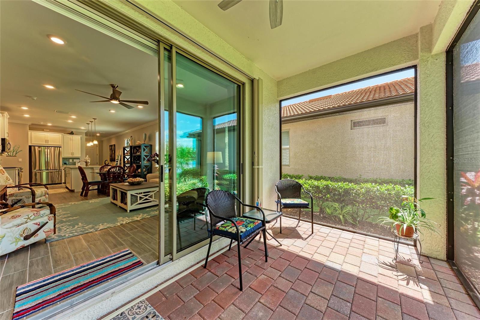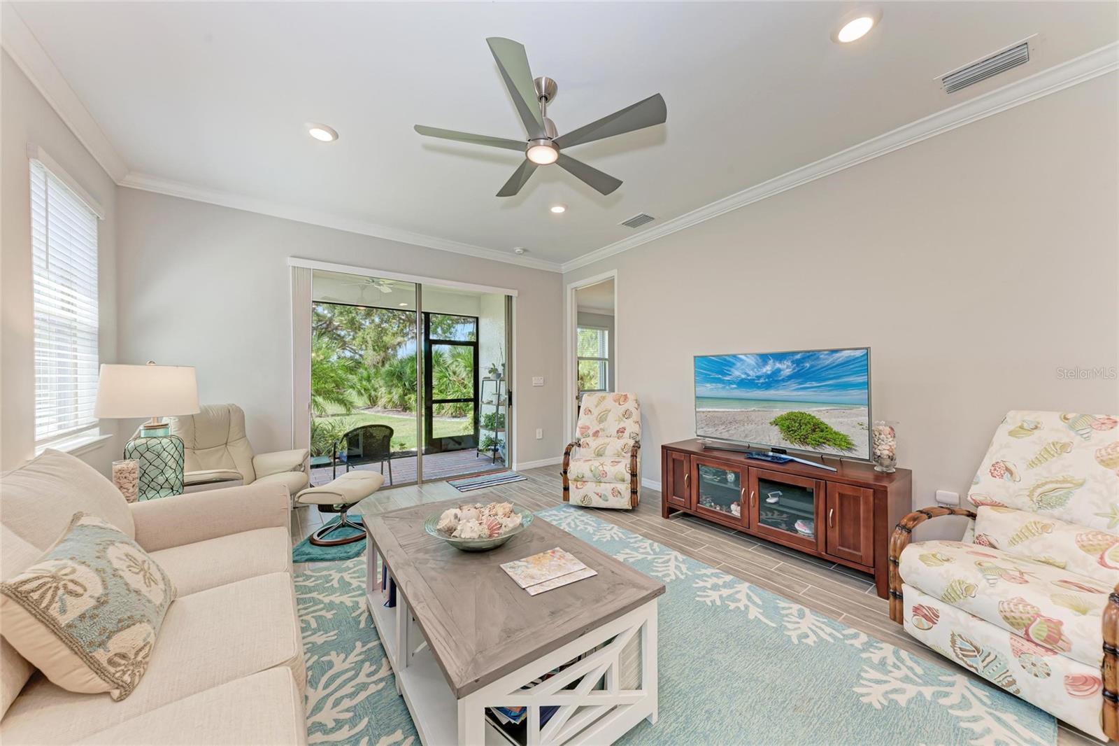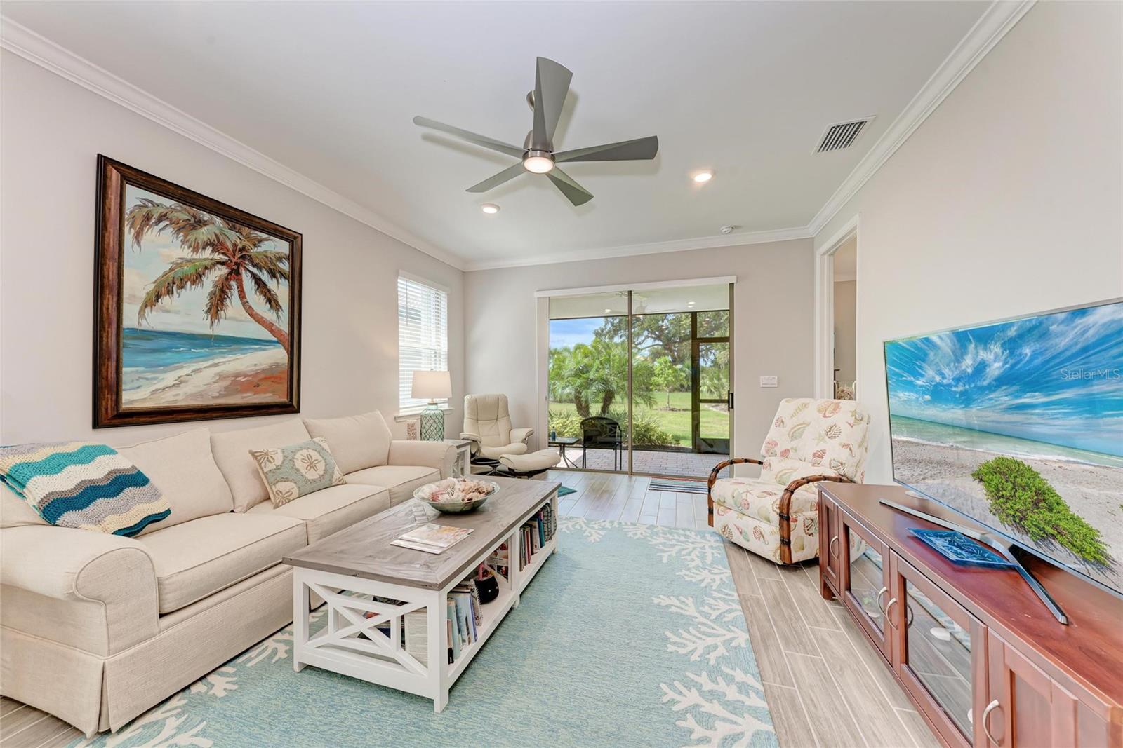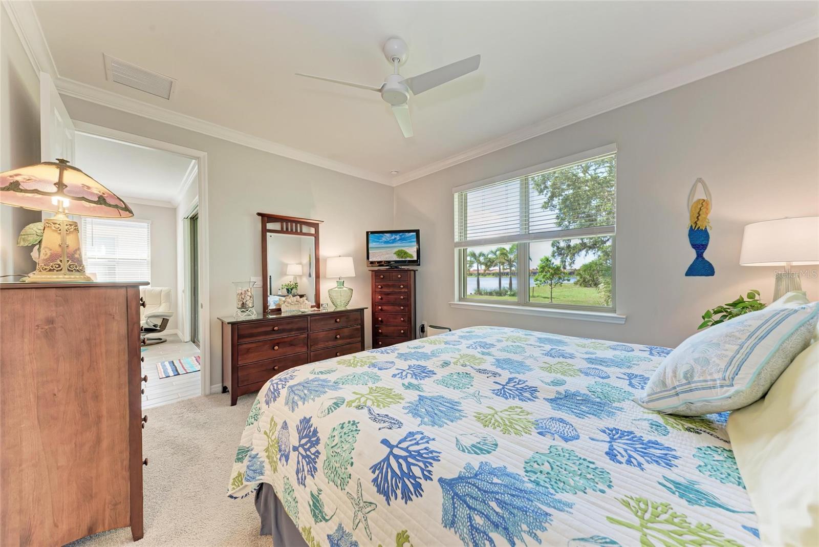 You will adore this well-kept three-bedroom, two-bathroom home on a lovely lot that provides seclusion and a tranquil haven. Savor calm mornings or leisurely nights from the comfort of your paver lanai, which has Clearview Screening offering unhindered views of the shimmering lake, rich landscape, and swaying palm trees.All the amenities you desire in your new home are included in this maintenance-free, move-in ready masterpiece. Enjoy the open concept design, which makes it perfect for daily living and entertaining. The kitchen features quartz countertops, stainless steel appliances, a Kinetico water filtration system, white shaker soft-close cabinets, a huge walk-in pantry, a backsplash of designer glass tiles, and a large island that is ideal for entertaining. Crown molding, custom closets in every bedroom, luxurious carpet in the master bedroom, chic plank tile throughout, and beautiful lighting and fans throughout. Additionally, there is a leaf filter gutter protection system that makes water drainage easier for easy home maintenance. For your peace of mind, there are also more recent accordion-style hurricane shutters and impact glass for the front entry window. This house exudes beauty from the inside out!The community offers an array of resort-style amenities, including: Infinity-edge lakefront pool, firepit, Clubhouse with screened outdoor lounge area tennis, pickleball, and bocce ball courts, playground, dog park and over 200 acres of interconnected lakes with dock to launch your kayak. Conveniently located near Sarasota Memorial Hospital, top-rated medical facilities, shopping, dining, the Legacy Bike Trail, and only minutes to the Gulf Beaches, this home offers the perfect blend of luxury, comfort, and location. Don't miss this must-see home and make it yours today!