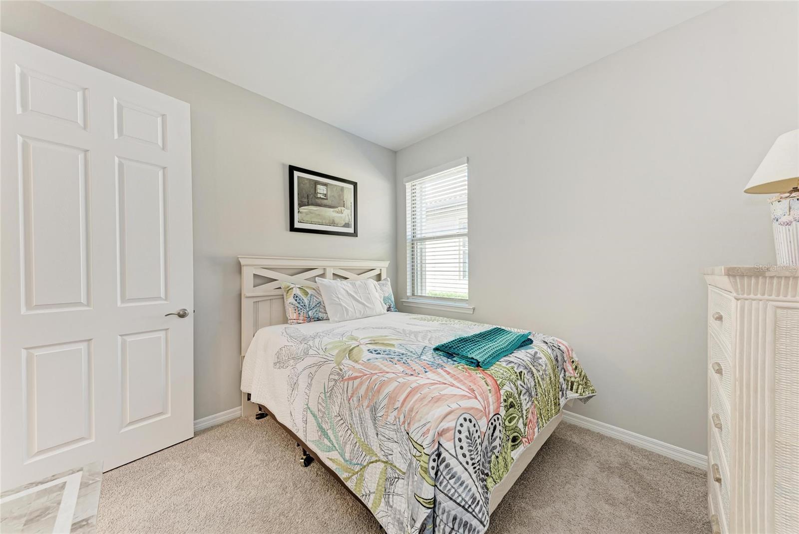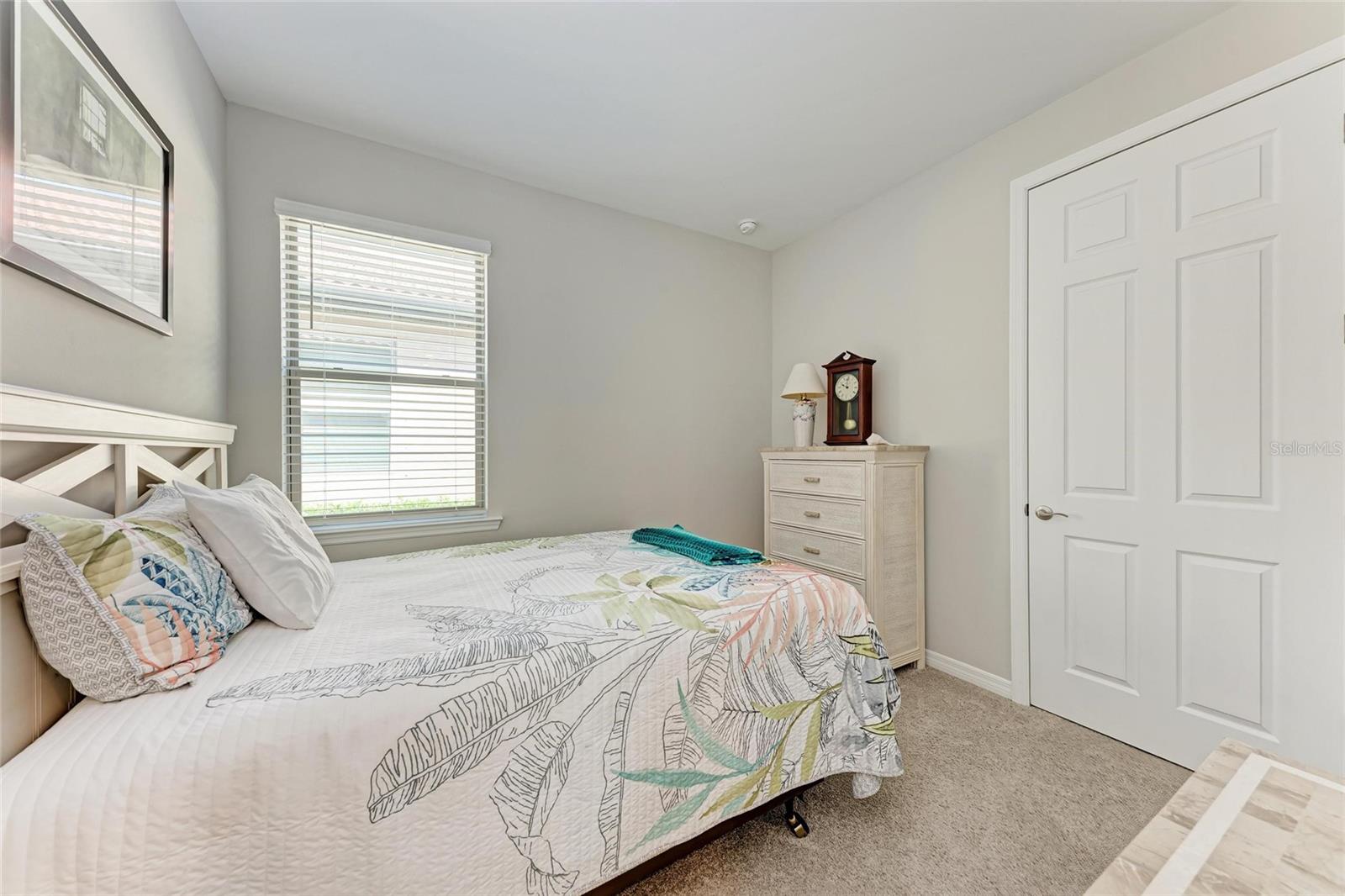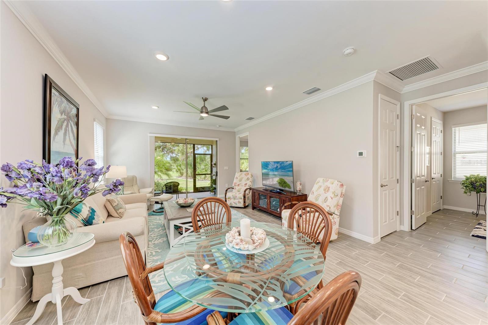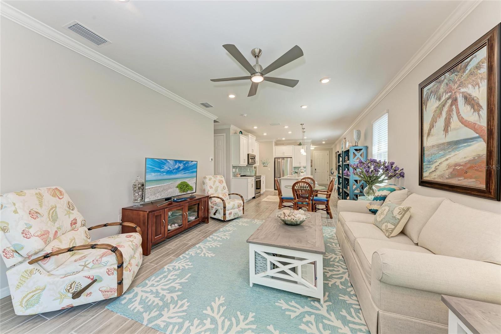 You will adore this well-kept three-bedroom, two-bathroom home on a lovely lot that provides seclusion and a tranquil haven. Savor calm mornings or leisurely nights from the comfort of your paver lanai, which has Clearview Screening offering unhindered views of the shimmering lake, rich landscape, and swaying palm trees.All the amenities you desire in your new home are included in this maintenance-free, move-in ready masterpiece. Enjoy the open concept design, which makes it perfect for daily living and entertaining. The kitchen features quartz countertops, stainless steel appliances, a Kinetico water filtration system, white shaker soft-close cabinets, a huge walk-in pantry, a backsplash of designer glass tiles, and a large island that is ideal for entertaining. Crown molding, custom closets in every bedroom, luxurious carpet in the master bedroom, chic plank tile throughout, and beautiful lighting and fans throughout. Additionally, there is a leaf filter gutter protection system that makes water drainage easier for easy home maintenance. For your peace of mind, there are also more recent accordion-style hurricane shutters and impact glass for the front entry window. This house exudes beauty from the inside out!The community offers an array of resort-style amenities, including: Infinity-edge lakefront pool, firepit, Clubhouse with screened outdoor lounge area tennis, pickleball, and bocce ball courts, playground, dog park and over 200 acres of interconnected lakes with dock to launch your kayak. Conveniently located near Sarasota Memorial Hospital, top-rated medical facilities, shopping, dining, the Legacy Bike Trail, and only minutes to the Gulf Beaches, this home offers the perfect blend of luxury, comfort, and location. Don't miss this must-see home and make it yours today!