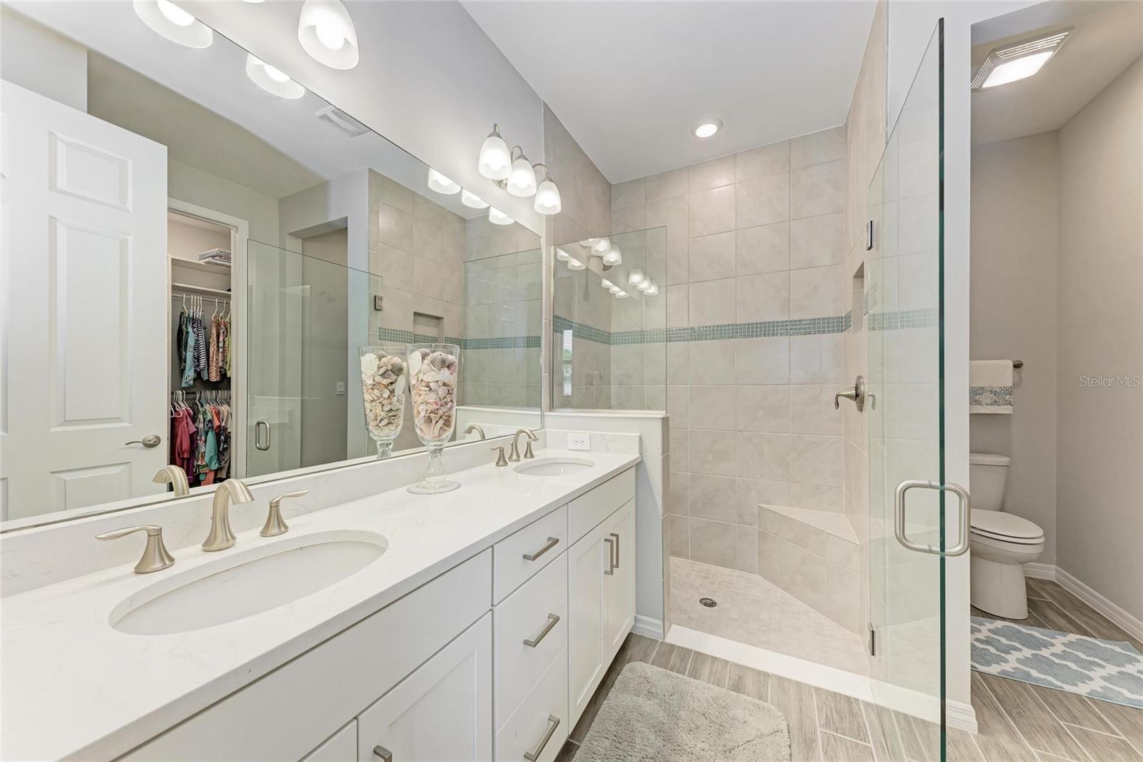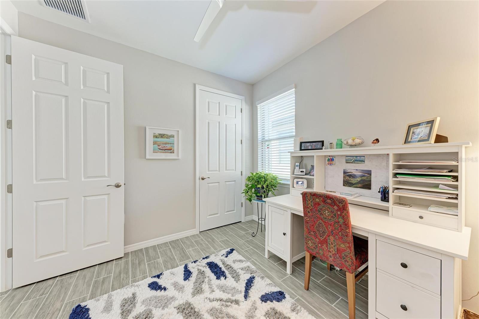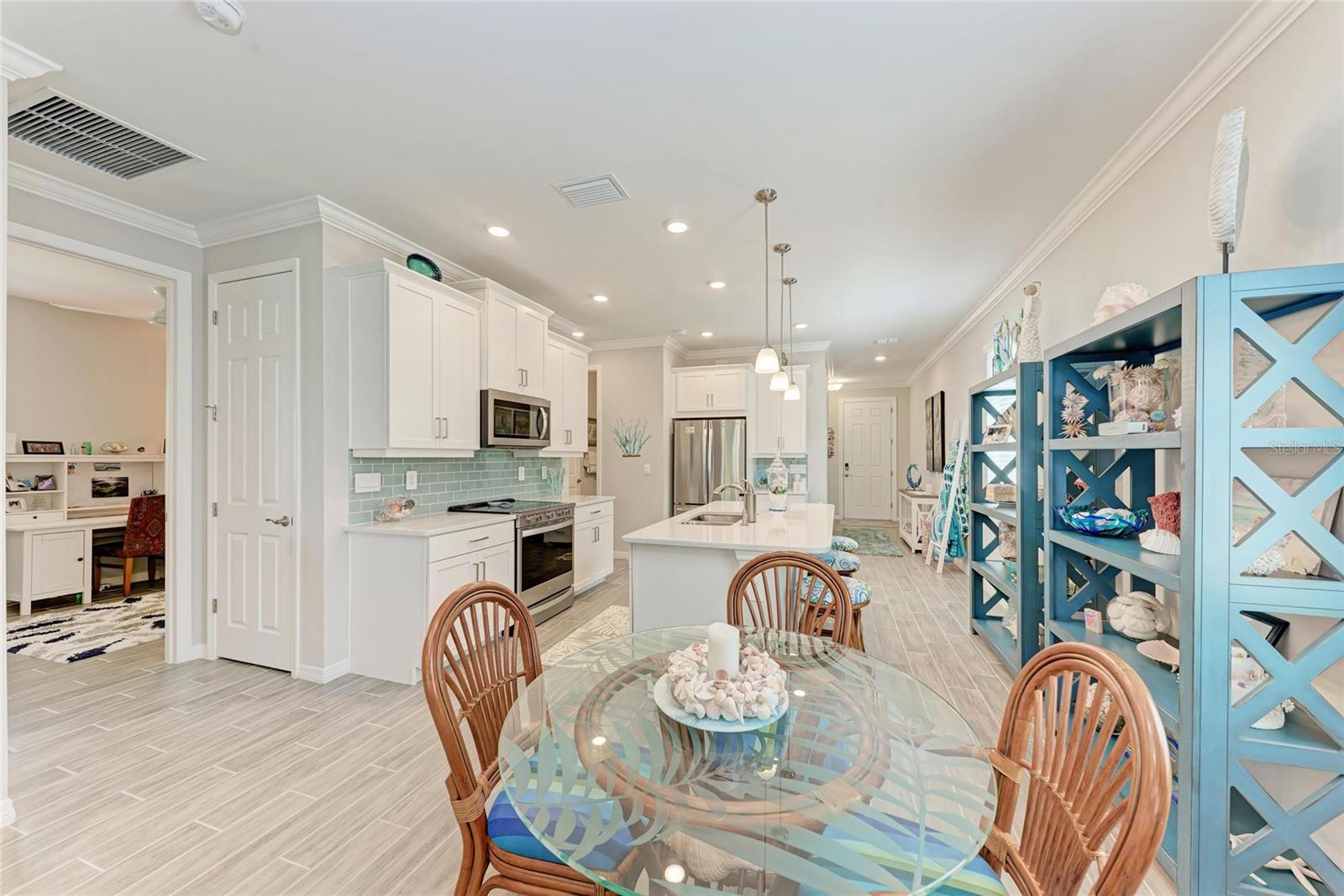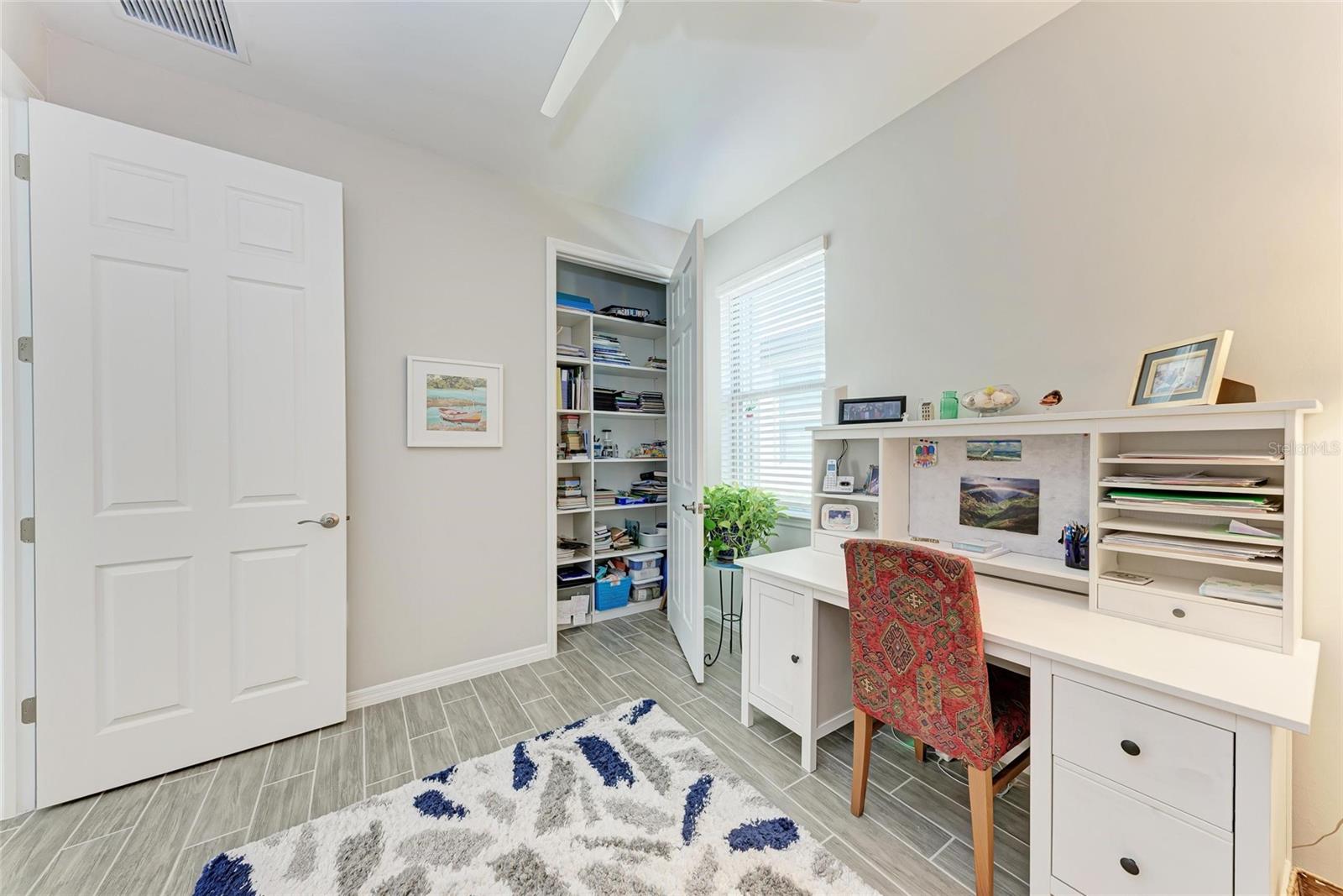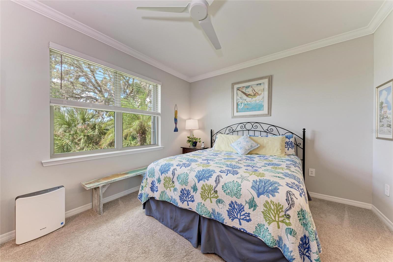 You will adore this well-kept three-bedroom, two-bathroom home on a lovely lot that provides seclusion and a tranquil haven. Savor calm mornings or leisurely nights from the comfort of your paver lanai, which has Clearview Screening offering unhindered views of the shimmering lake, rich landscape, and swaying palm trees.All the amenities you desire in your new home are included in this maintenance-free, move-in ready masterpiece. Enjoy the open concept design, which makes it perfect for daily living and entertaining. The kitchen features quartz countertops, stainless steel appliances, a Kinetico water filtration system, white shaker soft-close cabinets, a huge walk-in pantry, a backsplash of designer glass tiles, and a large island that is ideal for entertaining. Crown molding, custom closets in every bedroom, luxurious carpet in the master bedroom, chic plank tile throughout, and beautiful lighting and fans throughout. Additionally, there is a leaf filter gutter protection system that makes water drainage easier for easy home maintenance. For your peace of mind, there are also more recent accordion-style hurricane shutters and impact glass for the front entry window. This house exudes beauty from the inside out!The community offers an array of resort-style amenities, including: Infinity-edge lakefront pool, firepit, Clubhouse with screened outdoor lounge area tennis, pickleball, and bocce ball courts, playground, dog park and over 200 acres of interconnected lakes with dock to launch your kayak. Conveniently located near Sarasota Memorial Hospital, top-rated medical facilities, shopping, dining, the Legacy Bike Trail, and only minutes to the Gulf Beaches, this home offers the perfect blend of luxury, comfort, and location. Don't miss this must-see home and make it yours today!