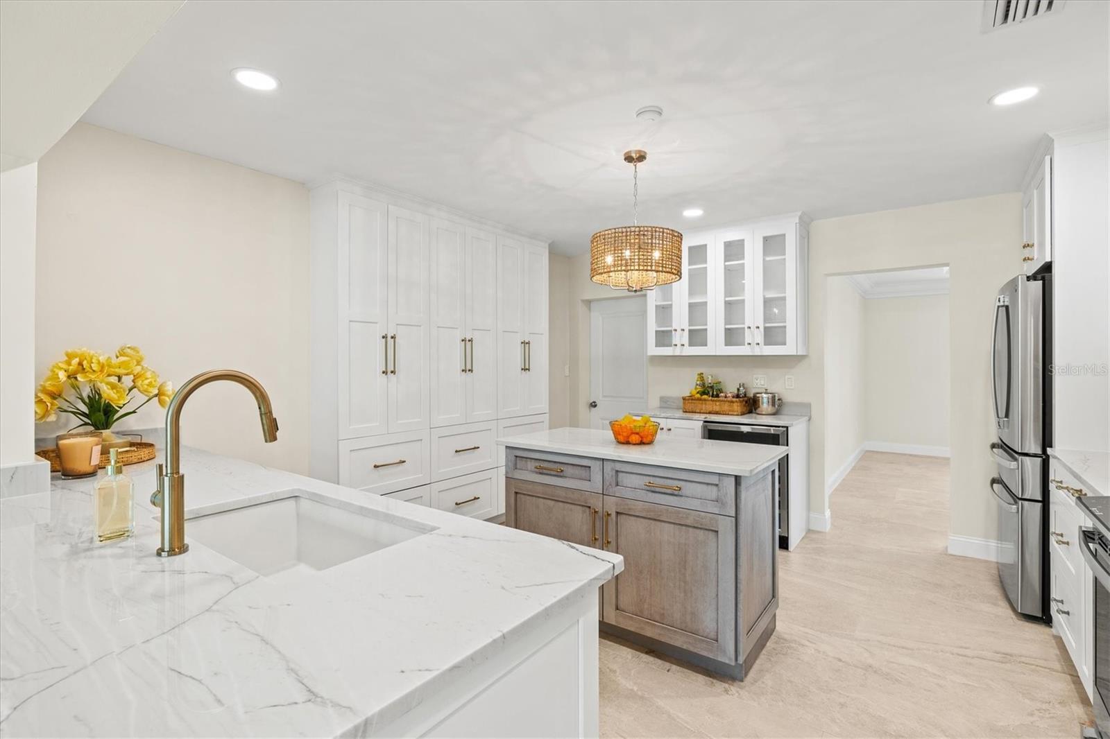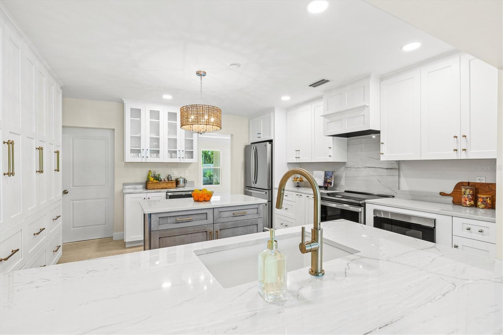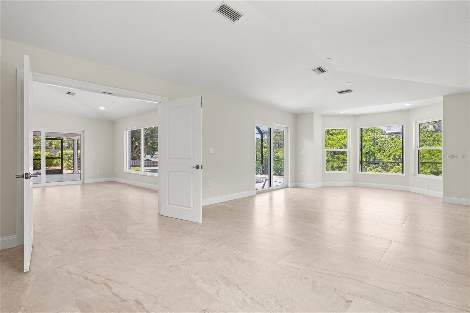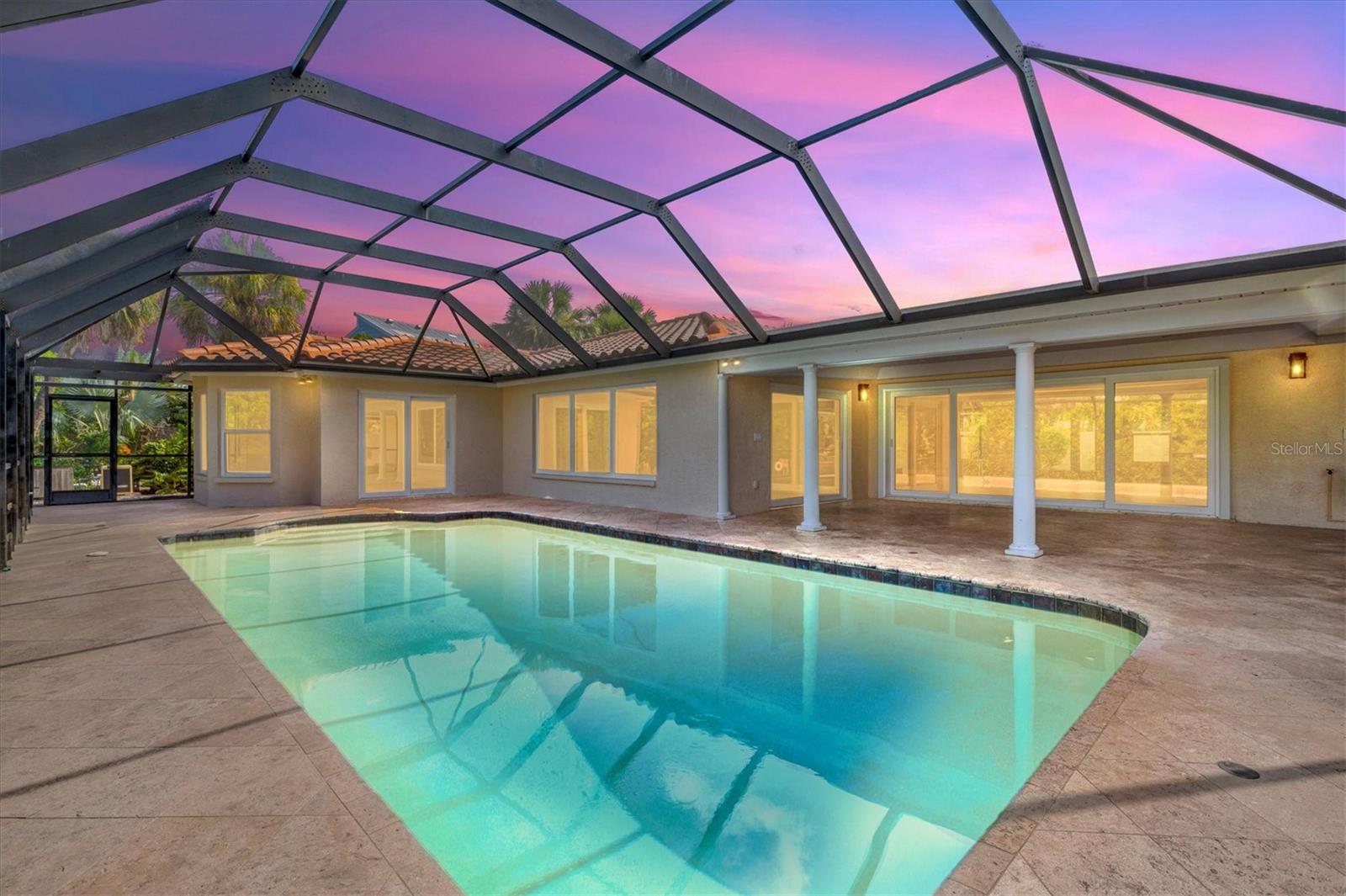 One or more photo(s) has been virtually staged. Discover this FULLY RENOVATED four-bedroom, three-bathroom sanctuary spanning 3,541 square feet, where luxury living meets WATERFRONT tranquility. Situated on almost a half acre lot, with rear views facing west for colorful sunsets, this meticulously crafted residence boasts a heated pool, a floating dock and long seawall inviting water enthusiasts to enjoy exploring the canals which lead out to the open waters of Sarasota Bay. The heart of this distinguished home features an expansive open-concept main living area, chef's kitchen and spacious dining space, thoughtfully designed to accommodate family and guests while offering sweeping views of the sparkling pool and canal. The seamless flow of the layout and blending of the outdoor and indoor space creates an entertainer's paradise, perfect for culinary adventures and memorable gatherings.Retreat to the luxurious primary bedroom, where panoramic canal vistas provide a serene backdrop for morning coffee or evening reflection. Unwind in the spa-like bathroom featuring a soaking tub, walk-in shower, dual vanities and frosted sliding glass doors to the outdoor shower. The SPLIT FLOORPLAN ensures ease and privacy for all. Bedroom 2 features an en-suite bathroom and long water views! Bedroom 3 has double doors and can be utilized as a den or office space if desired. Bedroom 4 has a private entrance with sliding glass doors overlooking the sunny front courtyard. This thoughtful layout offers many options for use of the generous space.The coral stone tiled pool and lanai area transforms into your personal oasis, where gentle breezes dance across the water's surface, creating an atmosphere of pure indulgence after sun-soaked beach days. The fully fenced yard, greenspace, winding walkways, outdoor shower, 2 car garage with extended driveway and parking space complete this comfortable retreat. The property's exceptional LOCATION places you moments (just .6mi) to the vibrant Siesta Village, where boutiques and acclaimed dining establishments await your discovery. (Just .7mi) to the nearest beach access! The main entrance to World-renowned Siesta Beach, celebrated for its powdery white sands and crystal-clear waters, beckons just over a mile away. This remarkable residence represents more than mere accommodation; it embodies a lifestyle where every detail has been carefully considered. From the quality construction evident throughout to the thoughtful integration of indoor and outdoor living spaces, this home promises years of comfort in one of Sarasota's most coveted waterfront communities.