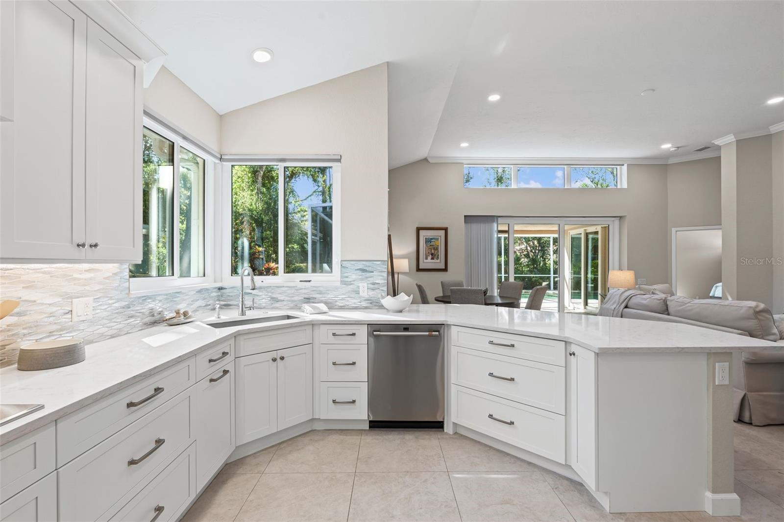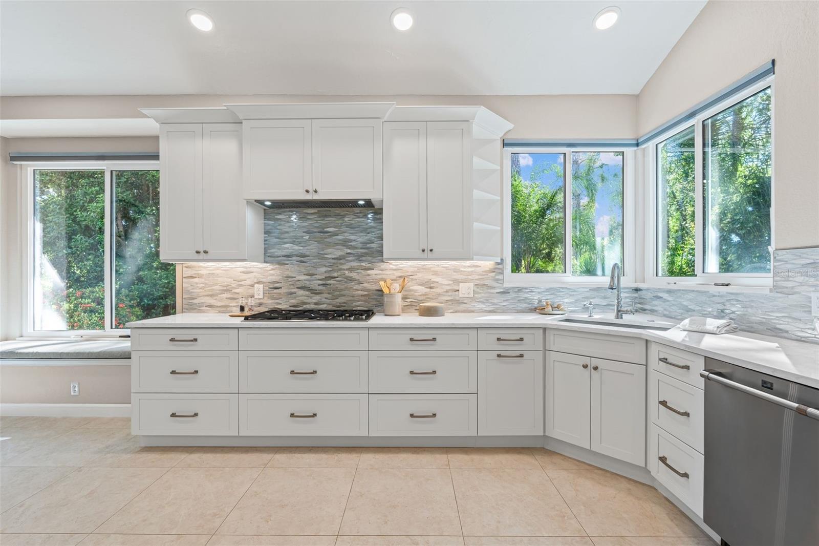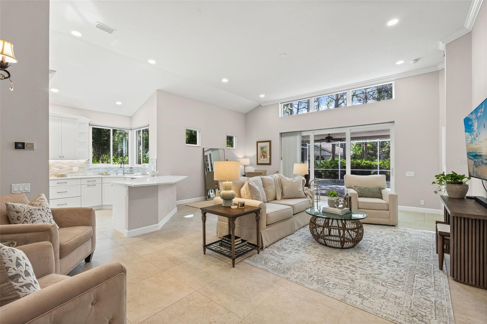 Completely renovated in 2023 to the utmost standards, this luxury pool home is better than today's new builds. From top to bottom, you'll notice the difference. On the exterior, enjoy peace of mind with the new roof, impact resistant windows and doors, impact resistant garage door, fresh paint, and whole house generator. New pavers, landscaping and outdoor lighting set the tropical ambiance. The sparkling pool, with a new heater and pool tiles, and the outdoor kitchen invite you to relax and entertain in true Florida style. On the inside you'll find new tile floors and baseboards, Hunter Douglas shades, new outlets, switches, lighting fixtures, exhaust fans, ceiling fans, and a new HVAC system. No detail has been overlooked. This pristine home boasts a chef's kitchen with Cambria quartz countertops, soft-close cabinetry, and GE Cafe and Wolf appliances. Everything in the kitchen and in both baths has been fully renovated with the highest quality materials and finishes. The open floor plan and soaring ceilings in this spacious home maximize the abundant natural light and provide multiple views of the inviting pool and lush landscaping. Located on a quiet cul-de-sac in Hampton Green, a subdivision within the coveted University Park Country Club, HOA dues cover the landscaping as well as high speed fiber-optic cable and internet in the homes. University Park Country Club is a gated master planned community with 27 holes of four-star rated golf, a full-service restaurant and bar, state of the art clubhouse and fitness center, pickleball and tennis courts.