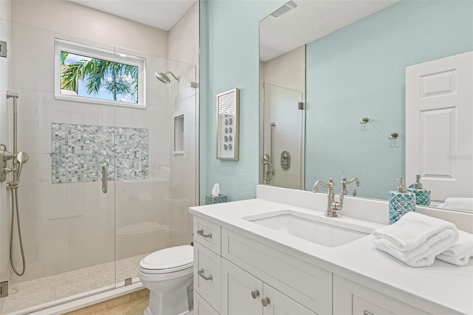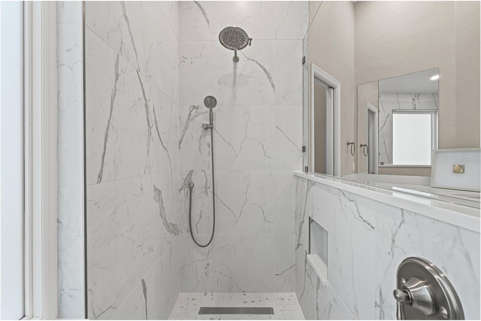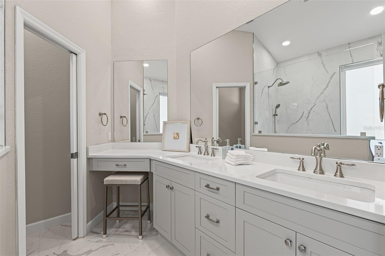 Completely renovated in 2023 to the utmost standards, this luxury pool home is better than today's new builds. From top to bottom, you'll notice the difference. On the exterior, enjoy peace of mind with the new roof, impact resistant windows and doors, impact resistant garage door, fresh paint, and whole house generator. New pavers, landscaping and outdoor lighting set the tropical ambiance. The sparkling pool, with a new heater and pool tiles, and the outdoor kitchen invite you to relax and entertain in true Florida style. On the inside you'll find new tile floors and baseboards, Hunter Douglas shades, new outlets, switches, lighting fixtures, exhaust fans, ceiling fans, and a new HVAC system. No detail has been overlooked. This pristine home boasts a chef's kitchen with Cambria quartz countertops, soft-close cabinetry, and GE Cafe and Wolf appliances. Everything in the kitchen and in both baths has been fully renovated with the highest quality materials and finishes. The open floor plan and soaring ceilings in this spacious home maximize the abundant natural light and provide multiple views of the inviting pool and lush landscaping. Located on a quiet cul-de-sac in Hampton Green, a subdivision within the coveted University Park Country Club, HOA dues cover the landscaping as well as high speed fiber-optic cable and internet in the homes. University Park Country Club is a gated master planned community with 27 holes of four-star rated golf, a full-service restaurant and bar, state of the art clubhouse and fitness center, pickleball and tennis courts.