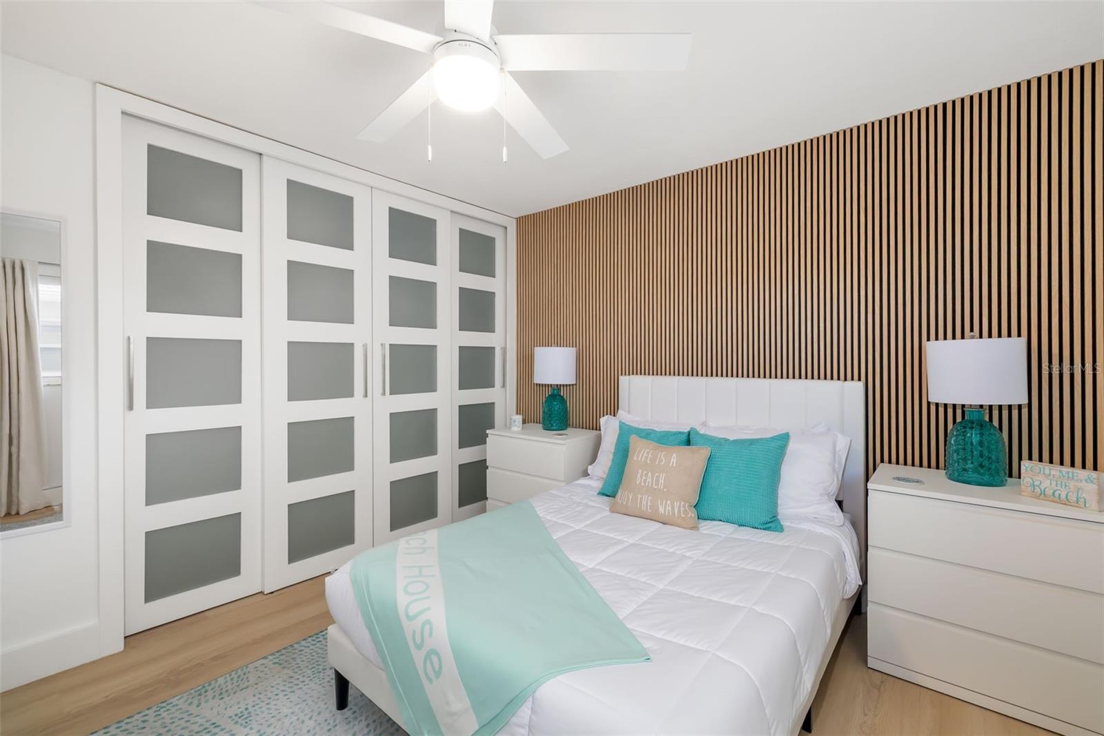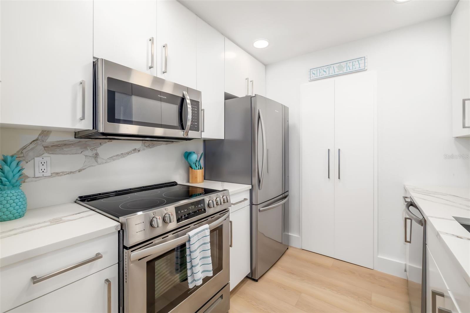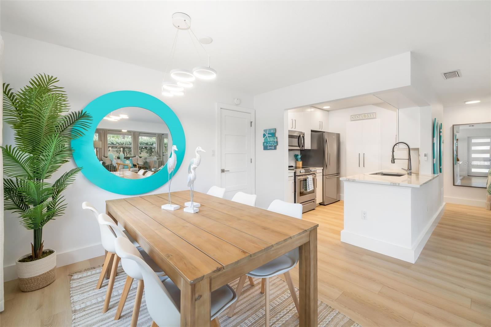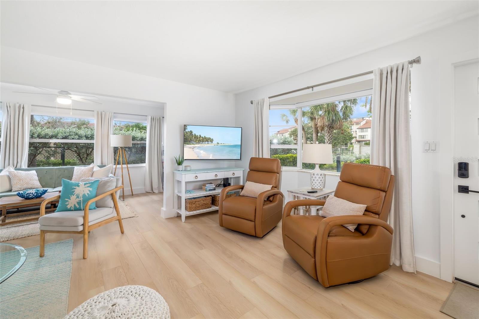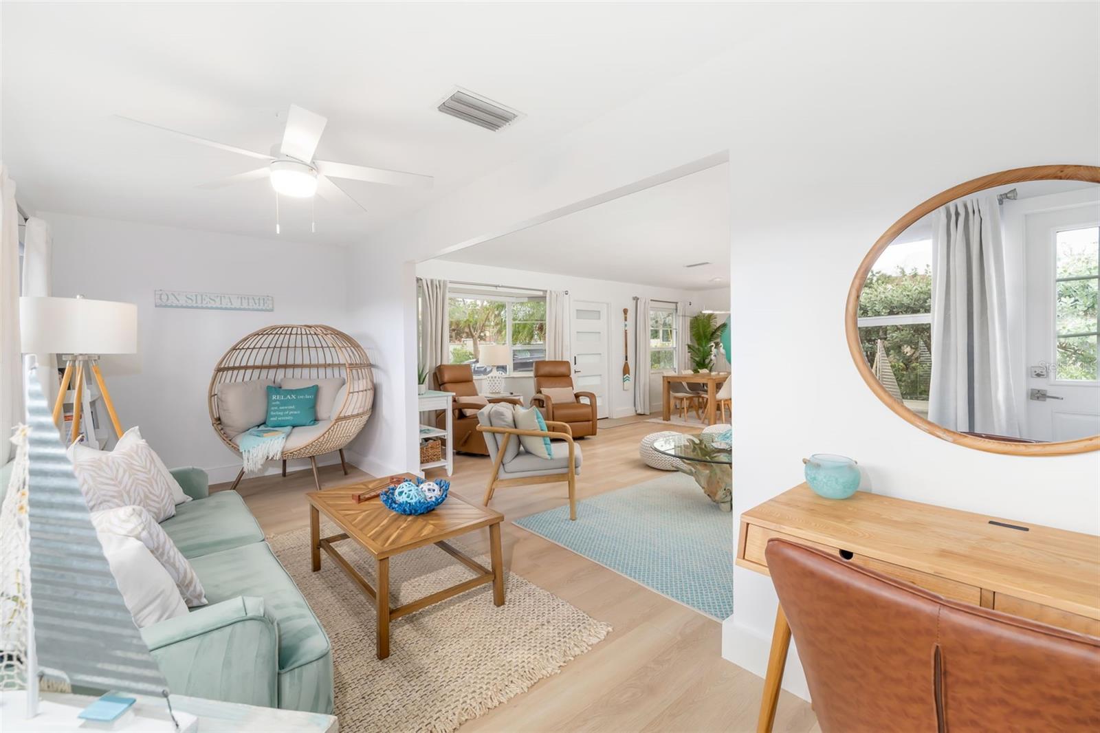 Experience the ultimate Siesta Key lifestyle in this beautifully renovated two-bedroom, two-bath end-unit villa just short distance from private Gulf and beach access. Offered turnkey furnished with stylish new dcor, this 1,296-square-foot residence blends luxury and comfort with an open-concept layout, sun-drenched Florida room, and updated kitchen featuring quartz countertops, matching backsplash, soft-close cabinetry and stainless steel appliances. The spacious primary suite boasts a custom accent wall, wall-to-wall closet with designer glass doors, and a spa-inspired en-suite bath. The second bedroom is equally impressive, featuring an accent wall with slat wood acoustic panels and sliding closet doors with obscure glass inserts. Enjoy coastal living with new luxury vinyl plank flooring, blackout window shades, modern lighting, front-loading washer and dryer, attached one-car garage with epoxy floor, and guest parking. Crystal Sands is a well-maintained community with two pools, including one beachfront pool--and an on-site rental management company with weekly rentals permitted June through September and two-week minimum rentals October through May. This villa also includes exterior maintenance-free living, cable, internet, water, sewer and trash provided by the condominium association. Park the car and hop on the free Siesta Key trolley--just near your door--with service stretching from Turtle Beach to downtown Sarasota.