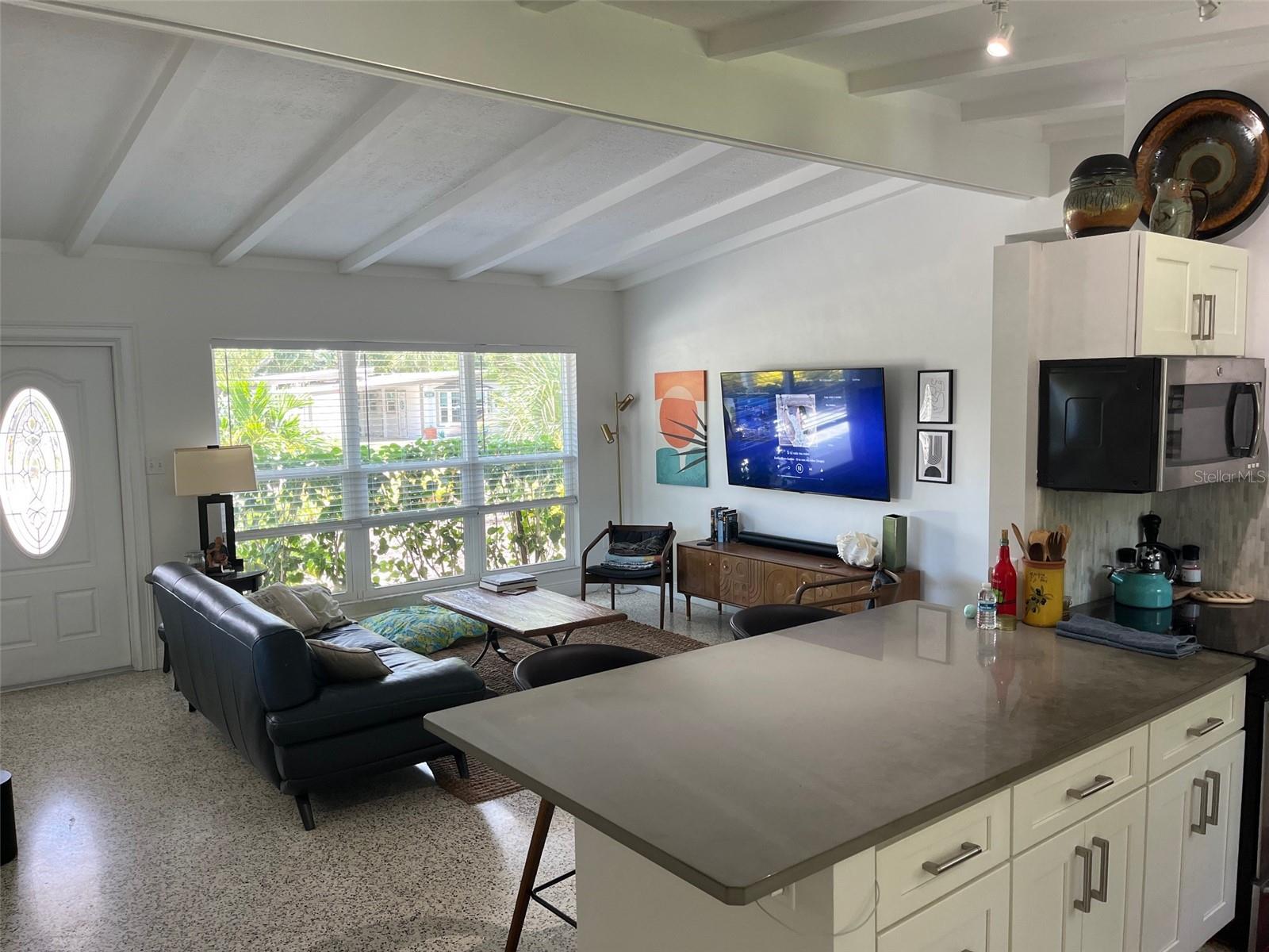 **SELLER WILL CONSIDER OWNER-FINANCING..!! Totally renovated and move-in ready 2 BR / 2BA true mid-century modern home, open concept design with vaulted ceilings exposed beams, hurricane impact low-E windows and doors, professionally restored terrazzo floors throughout, re-stuccoed exterior block construction with freshly painted exterior and interior and paver driveway. New elastomeric roof coating, shaker style kitchen cabinets with soft-close doors and solid plywood boxes, large peninsula, marble countertops, updated bathrooms, master bedroom with en-suite and walk-in cedar closet, two additional cedar closets, air-conditioned laundry room, LED lighting throughout, home security and fire alarm equipped, Florida-room with slanted modern wall of windows that can be used for multi-purposes. Large lot (7620 sq.ft.), with fully fenced back yard and new large paver patio area, grass lawn, irrigation system, night lighting, mature trees for shade and new Tuff Shed for storage/tools. This is a low maintenance home with underground power lines located in a VERY high sought after area with NO HOA, Short walk to Southside Village and Sarasota Memorial Hospital (SMH), and just 1.5 miles south of downtown... minutes from restaurants, shopping, Bay Park, Siesta Key and St. Armand's Circle. * "Seller is a Licensed FL Real Estate Agent".