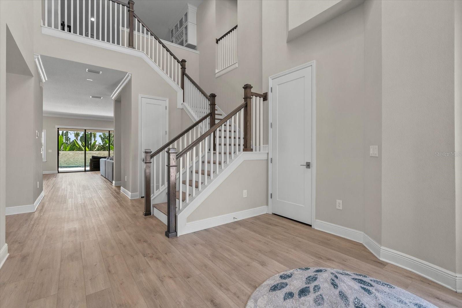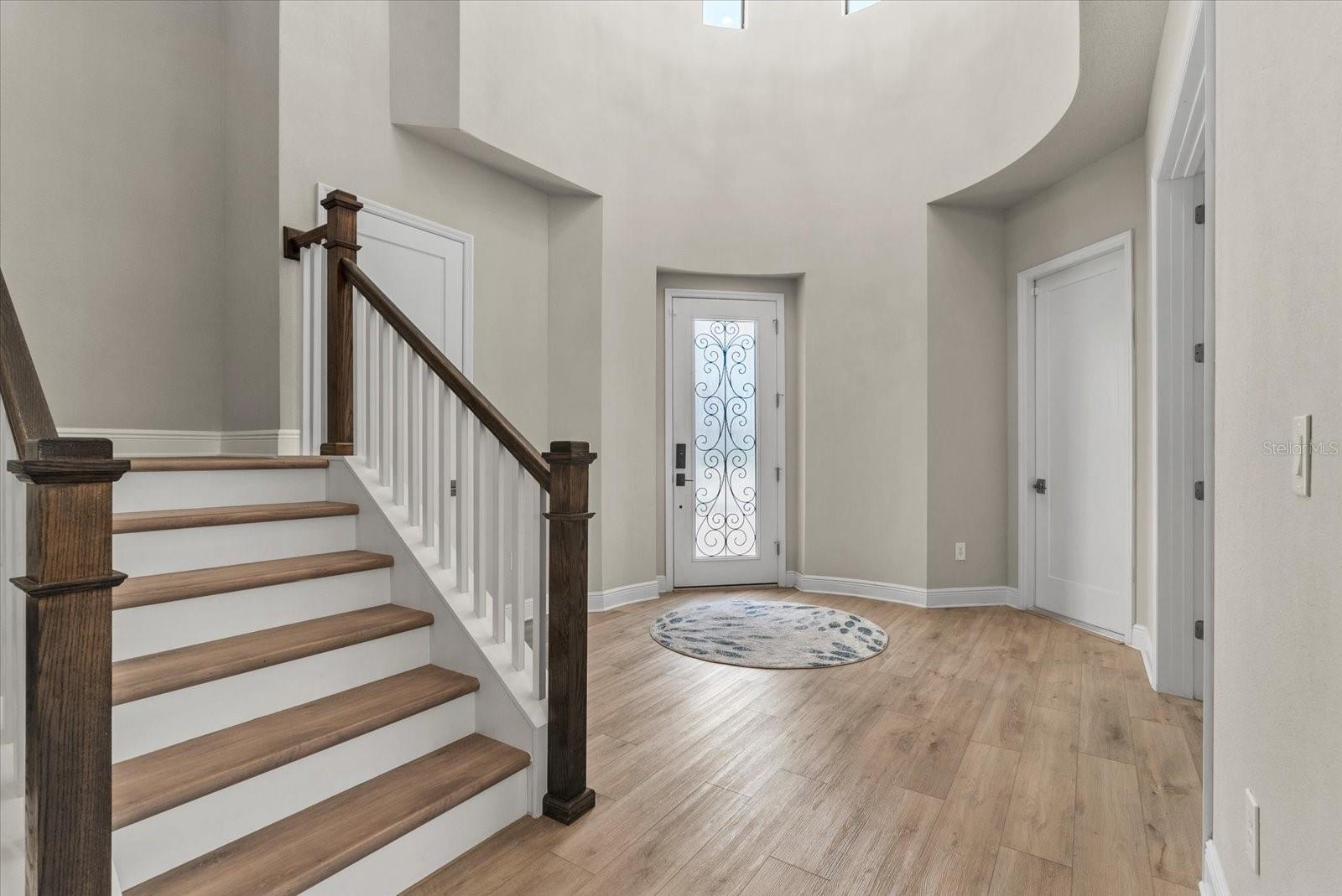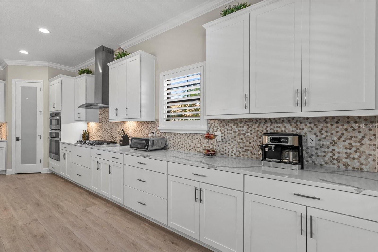 Introducing 8206 Rushton Place--your chance to own a showcase Madeira III home on the largest lot in the sought-after Crosswind Ranch of Parrish. Set at the end of a private cul-de-sac on over a quarter acre, this residence masterfully blends architectural grandeur with modern luxury. Designed to impress from the moment you arrive, the home's Mediterranean-inspired faade features split garages, stone accents, and a signature rotunda entry that sets the tone for the elegance that follows. Step inside the soaring two-story foyer, where the angled staircase and natural light create a breathtaking welcome. The formal dining room and office with custom built-ins anchor the entrance, offering well-appointed spaces for entertaining and productivity. Throughout the home, refined details like crown molding elevate the overall design and add timeless character. The heart of the home is the expansive gourmet kitchen--an entertainer's dream--featuring rich quartz countertops, built-in wall oven with a microwave above, gas cooktop, custom mosaic backsplash, and a large island that gracefully transitions into a built-in dining table. The great room flows effortlessly into the screened lanai through expansive sliders with electric shades, revealing a 2024 resort-style pool with triple waterfalls, built-in spa, sun shelf with in-water loungers, and Italian marble decking beneath a soaring two-story screen enclosure. Downstairs, a guest suite with a full bath doubles as a convenient pool bath, while a stylish powder room completes the main level. Durable yet elegant, luxury vinyl plank flooring extends throughout the first floor, enhancing the home's inviting ambiance. Upstairs, discover a versatile loft with wet bar, three oversized secondary bedrooms--including two that share a Jack-and-Jill bathroom--and a custom laundry room with built-in cabinetry, quartz counters, a utility sink, folding counter, and drying bar for added functionality. The primary suite is a serene retreat with dual walk-in closets, a spa-inspired bathroom featuring quartz counters, dual vanities, a soaking tub, and a walk-in shower. Step out onto the full-length private balcony for tranquil views of your tropical oasis--an ideal space for morning coffee or evening relaxation. Additional highlights include a whole-house water filtration system, reverse osmosis in the kitchen and wet bar, and a spacious 3-car garage. As a resident of Crosswind Ranch, you'll enjoy access to premier amenities including a lagoon-style pool and cabana, dog park, pickleball courts, and scenic walking trails. Ideally situated just 3 miles from Publix and all the vibrant shopping and dining options in North River Ranch, 2.5 miles to the brand-new Parrish Community Park, 3 miles to Parrish Community High School, and only 7 miles to I-75 with easy access to I-275 and the stunning Gulf Coast beaches--this home offers both luxury and location. Why wait for new construction when you can own this impeccably designed and upgraded Madeira III--where every detail has been curated for comfort, elegance, and enduring value? Welcome home to 8206 Rushton Place, Parrish!