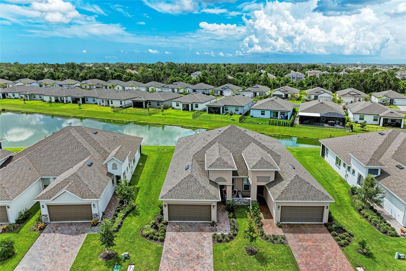 Florida Living at Its Finest - Best Value in Trevesta!Welcome to your dream retreat in the highly sought-after gated community of Trevesta, nestled in the heart of Palmetto! This beautifully appointed lakefront villa offers the perfect blend of simple luxury, comfort, and low-maintenance living -- ideal for year-round enjoyment or seasonal escapes. Step inside to discover an open-concept floor plan bathed in natural light, where expansive lake views steal the show from the moment you enter. The spacious great room flows effortlessly into a modern kitchen featuring stone countertops, stainless steel appliances, a large island, and plenty of storage -- perfect for entertaining or relaxed everyday living.Wake up to serene water views from the primary suite, which boasts a walk-in closet and an en-suite bath with dual vanities and a glass-enclosed shower. A split bedroom layout offers privacy for guests, or family members. Walk out the wall of glass sliders leading to the screened lanai to enjoy your morning coffee or evening wine, overlooking the peaceful lake and lush landscaping -- a tranquil setting you'll never tire of. Highlights include:*Lawn care, exterior maintenance, and irrigation included**Energy-efficient construction and hurricane shutters**Meticulously maintained, lives like brand new*Trevesta offers a resort-like lifestyle with walking trails, playgrounds, and easy access to I-75, I-275, and US 41 -- placing you minutes from shopping, dining, the beautiful Gulf beaches, and everything the Tampa Bay and Sarasota areas have to offer. Schedule your private tour today & start living a life you don't need a vacation from!