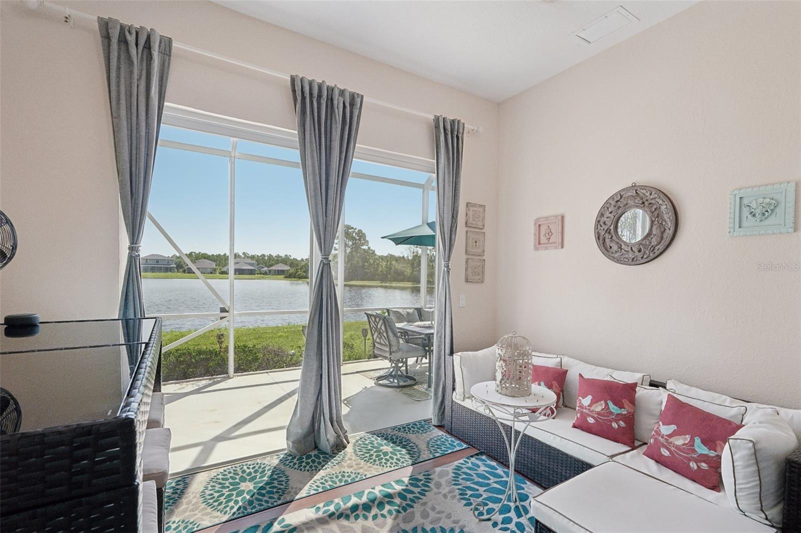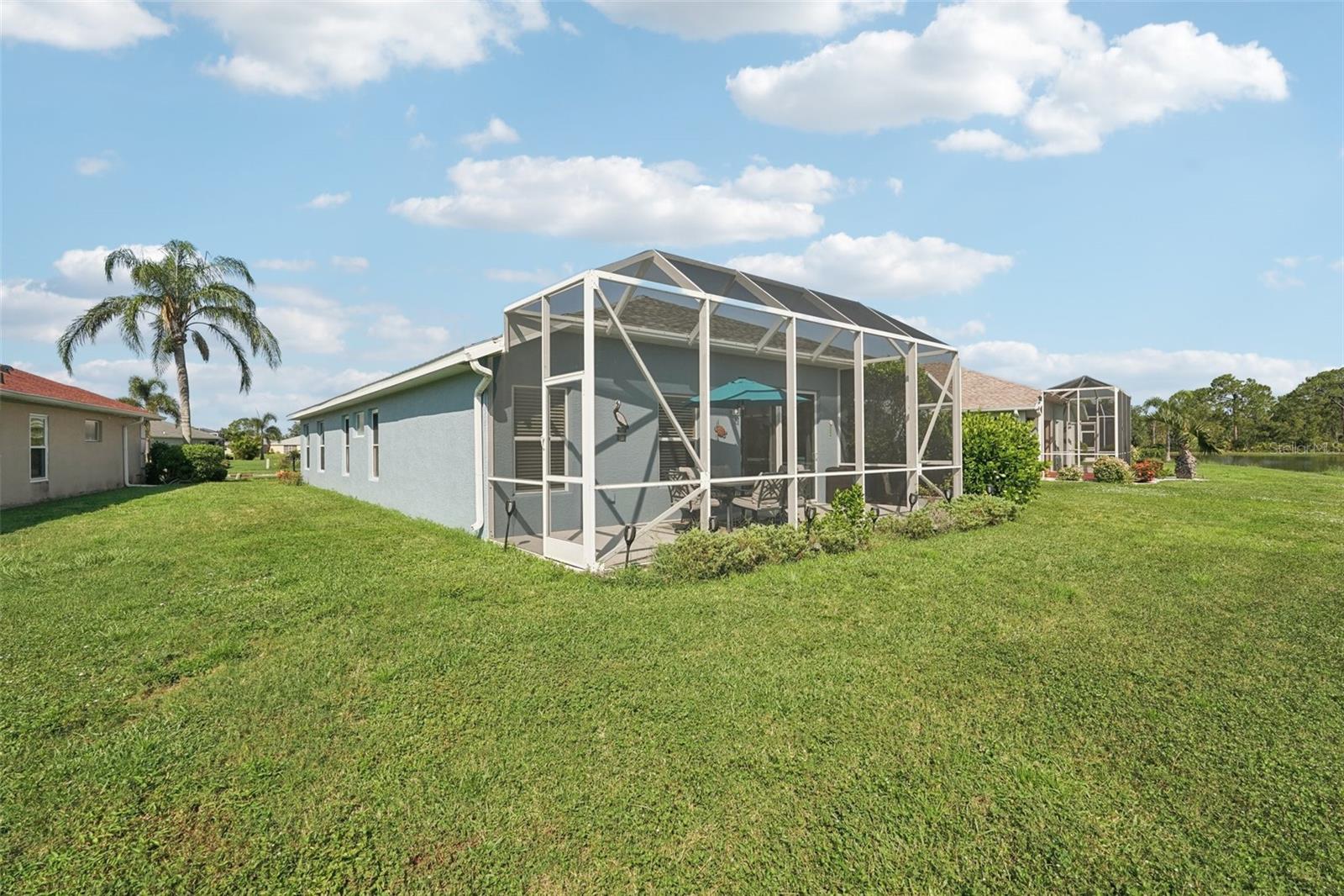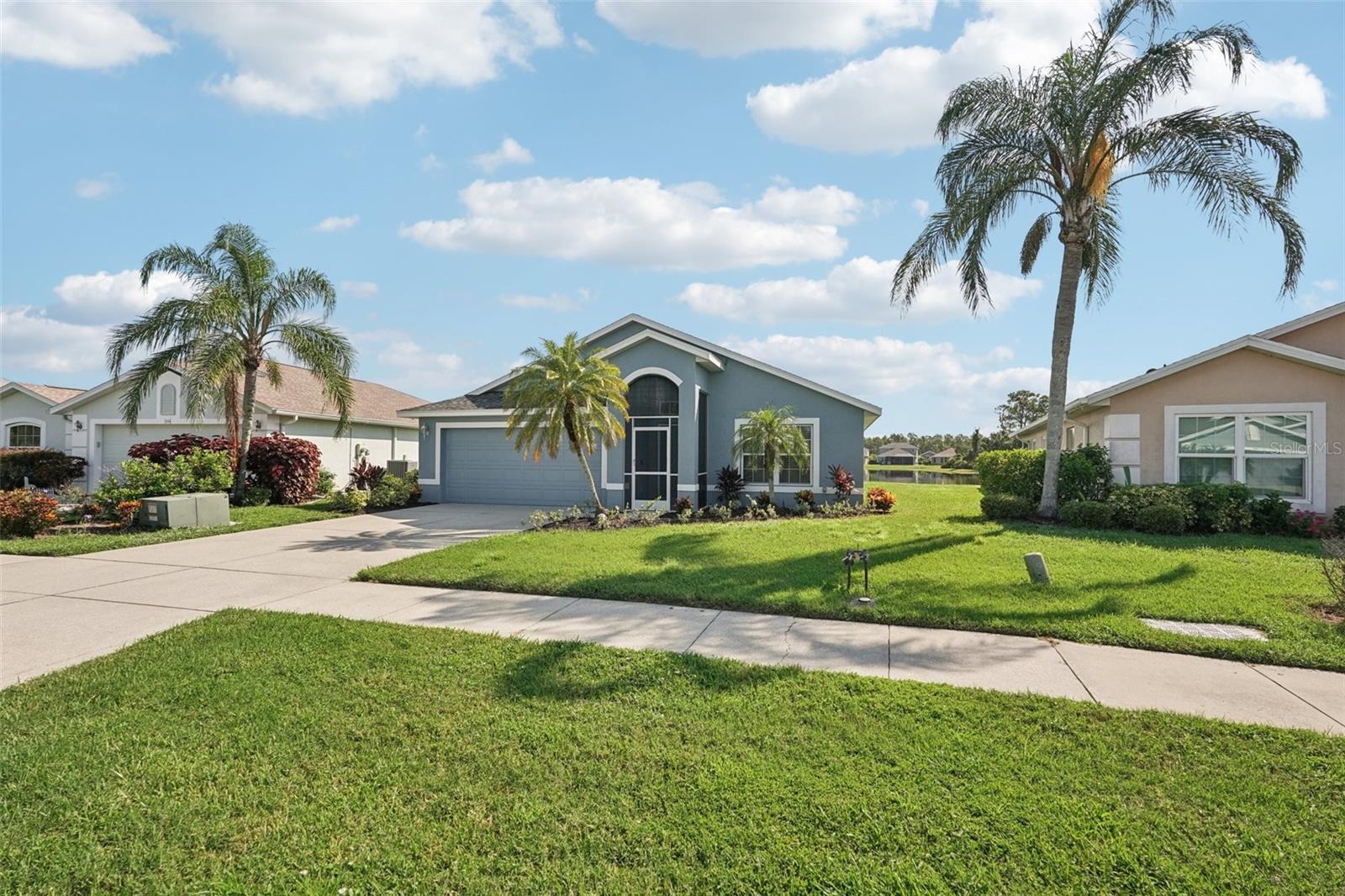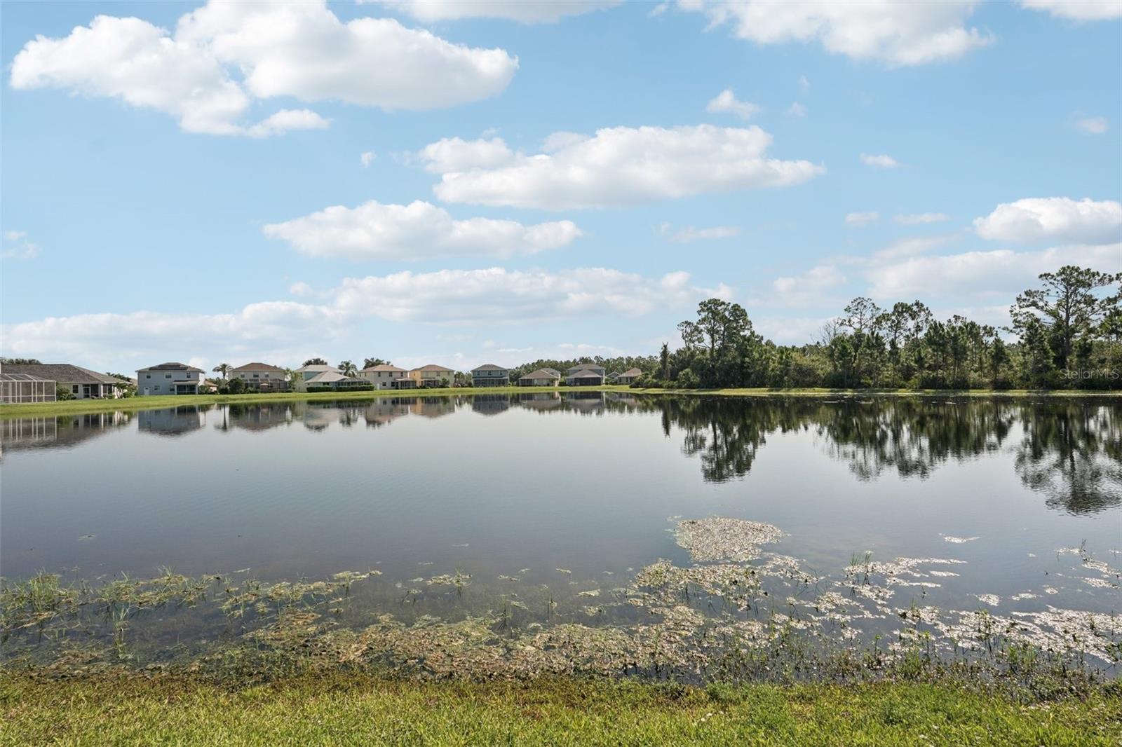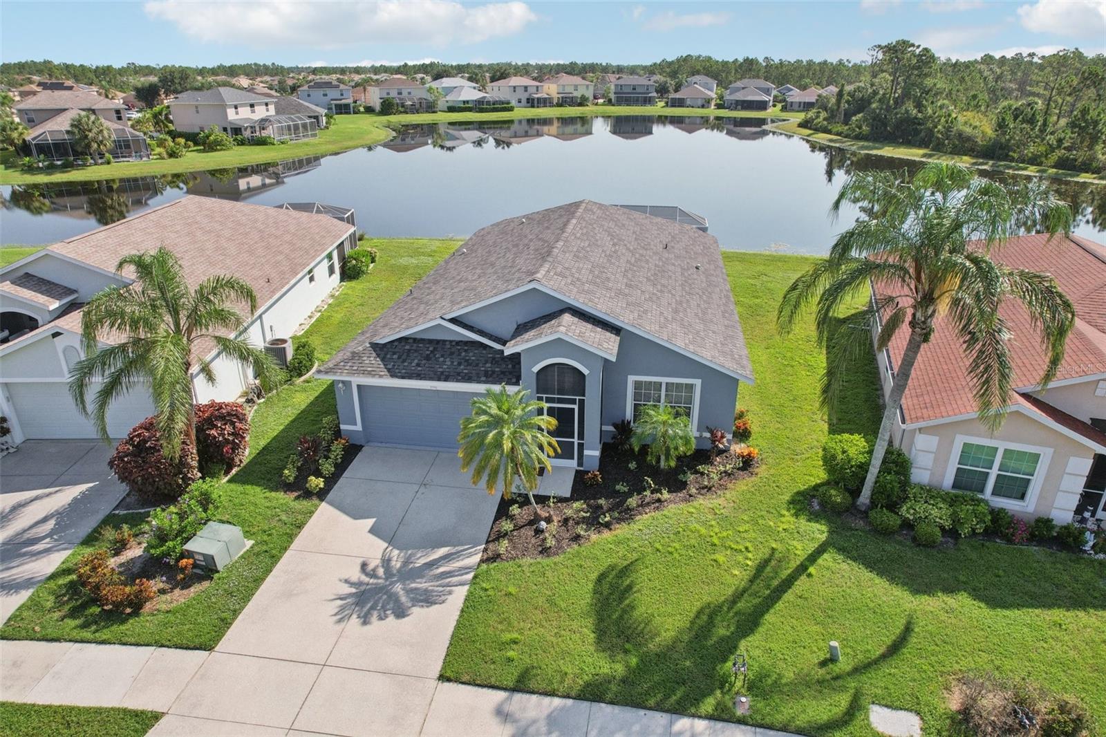 From the moment you enter you will be delighted with the best lake view in Lakeside Plantation. The preserve beyond the lake is great for bird watching and there are lake views from most rooms. The soaring ceilings and archways create an elegant ambience. The home features 4 bedrooms and 2 full bathrooms. There is also a bonus room you can use for an office, playroom, craft room etc. The eat-in kitchen features new stainless-steel Whirlpool appliances, new GFCI outlets, real oak cabinets with crown molding, granite counters, and under cabinet lighting that highlights the fabulous newly installed backsplash. Organization is a snap with the built-in cabinets in the hallway just off the kitchen. Both bathrooms have granite counters, updated lighting, shower wall extended to ceiling, and vessel sinks. The primary bath has a new toilet and professionally cleaned shower and new grout. There is NO carpet in this home. The main living areas have hardwood floors, bedrooms and bonus room are wood laminate, and the wet areas are a neutral tile. There are 3" Hunter Douglas blinds throughout the home. There is a family dining room combo when you first walk in and to the rear of the home is a separate family room with a new large remote-control lighted fan. The kitchen bar area has new pendant lights, and the eat-in kitchen has a matching pendant light. New dimmer light switches have been installed throughout. The exterior of the home was just painted as well as the garage floor, driveway and lanai pressure washed; new landscaping and irrigation (7 zones) was installed. The roof was replaced in 2020 and HVAC in 2022 with a UV light. The Sliding glass doors are hurricane impact as well as some of the windows. The front door has a new coded lock, and the garage door has a new remote pad and new remote controls. There is a newly installed Ring Doorbell for added security. This is a pet and smoke free home. There is a heated, saltwater resort style community pool and hot tub, tennis courts, basketball and pickle ball courts, fitness center, playground, billiard room and library. Many activities at the clubhouse to enjoy! You can relax knowing your lawn care is maintained by the HOA. Don't miss the opportunity to own this lakefront beauty in the Lakeside Plantation community. Enjoy the convenience of nearby golf courses, beaches, shopping and entertainment. Schedule a private showing today!