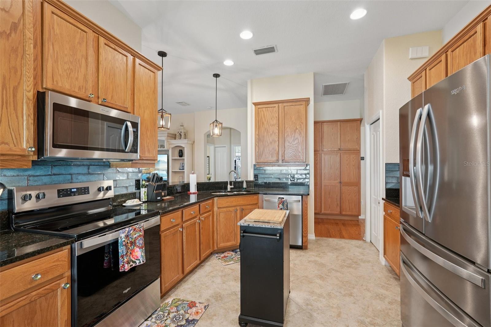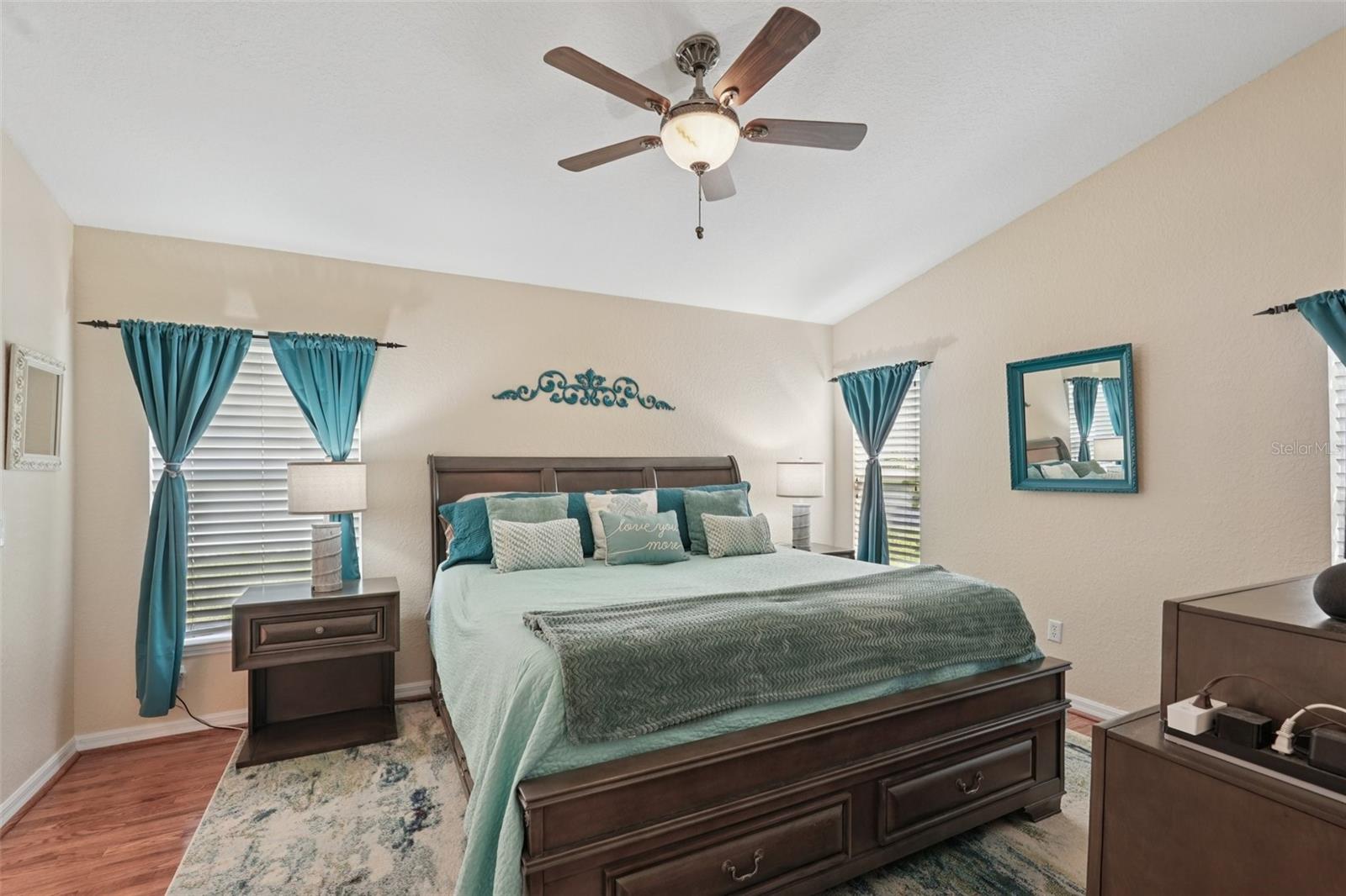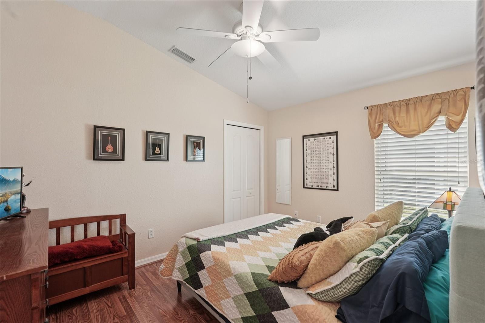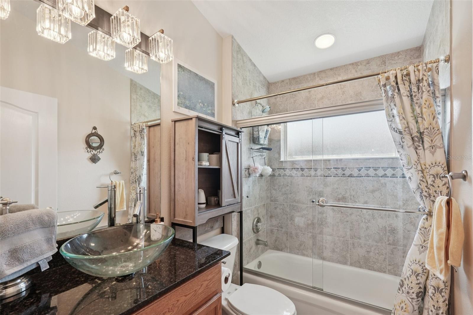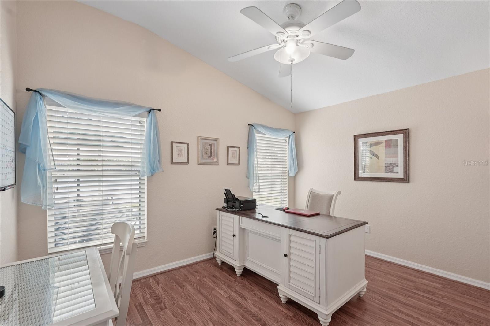 From the moment you enter you will be delighted with the best lake view in Lakeside Plantation. The preserve beyond the lake is great for bird watching and there are lake views from most rooms. The soaring ceilings and archways create an elegant ambience. The home features 4 bedrooms and 2 full bathrooms. There is also a bonus room you can use for an office, playroom, craft room etc. The eat-in kitchen features new stainless-steel Whirlpool appliances, new GFCI outlets, real oak cabinets with crown molding, granite counters, and under cabinet lighting that highlights the fabulous newly installed backsplash. Organization is a snap with the built-in cabinets in the hallway just off the kitchen. Both bathrooms have granite counters, updated lighting, shower wall extended to ceiling, and vessel sinks. The primary bath has a new toilet and professionally cleaned shower and new grout. There is NO carpet in this home. The main living areas have hardwood floors, bedrooms and bonus room are wood laminate, and the wet areas are a neutral tile. There are 3" Hunter Douglas blinds throughout the home. There is a family dining room combo when you first walk in and to the rear of the home is a separate family room with a new large remote-control lighted fan. The kitchen bar area has new pendant lights, and the eat-in kitchen has a matching pendant light. New dimmer light switches have been installed throughout. The exterior of the home was just painted as well as the garage floor, driveway and lanai pressure washed; new landscaping and irrigation (7 zones) was installed. The roof was replaced in 2020 and HVAC in 2022 with a UV light. The Sliding glass doors are hurricane impact as well as some of the windows. The front door has a new coded lock, and the garage door has a new remote pad and new remote controls. There is a newly installed Ring Doorbell for added security. This is a pet and smoke free home. There is a heated, saltwater resort style community pool and hot tub, tennis courts, basketball and pickle ball courts, fitness center, playground, billiard room and library. Many activities at the clubhouse to enjoy! You can relax knowing your lawn care is maintained by the HOA. Don't miss the opportunity to own this lakefront beauty in the Lakeside Plantation community. Enjoy the convenience of nearby golf courses, beaches, shopping and entertainment. Schedule a private showing today!