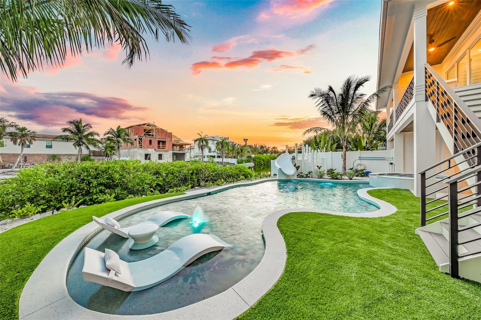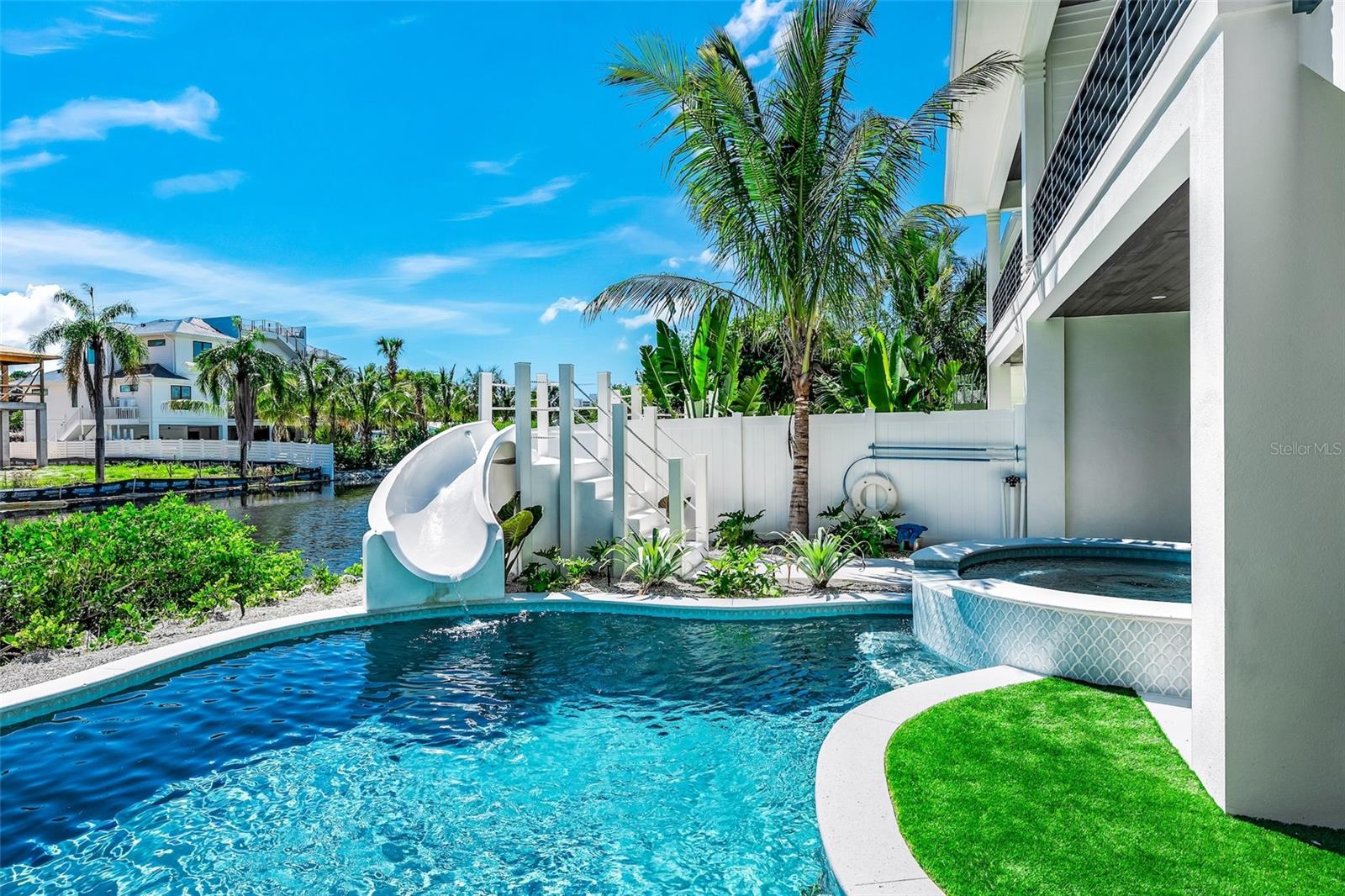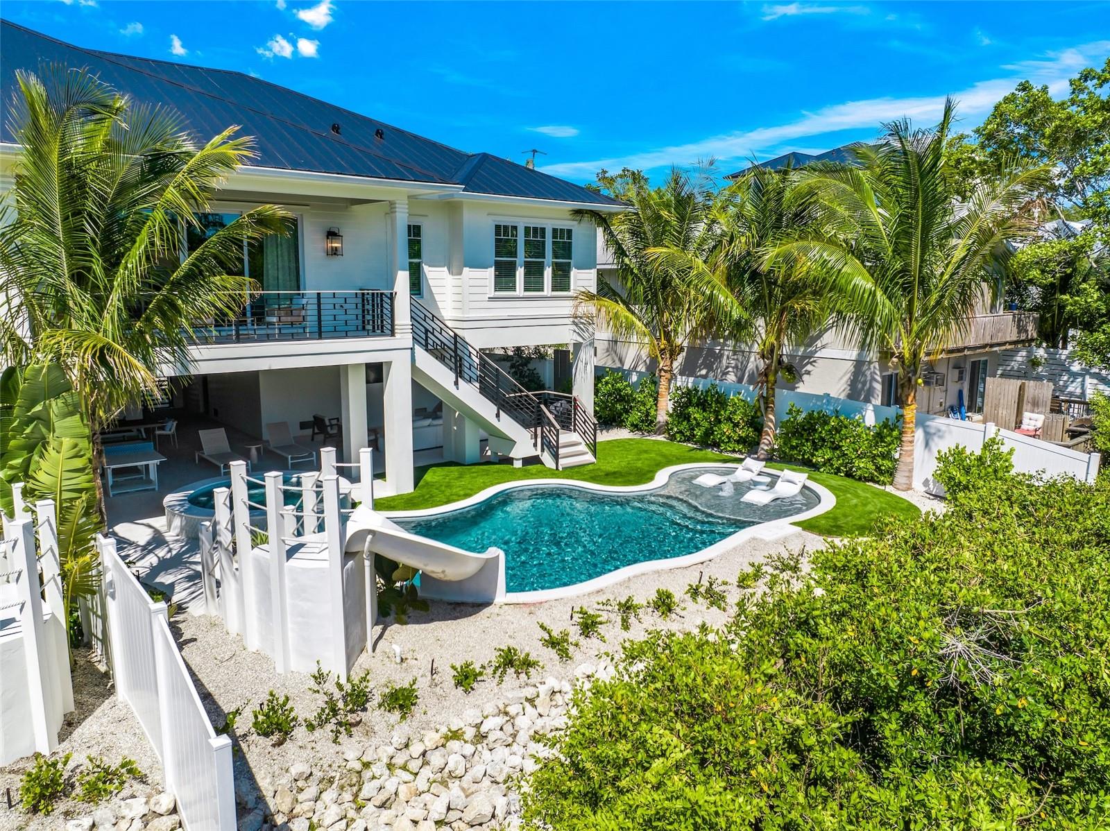 LOCATION, LOCATION, LOCATION ON BEAUTIFUL SIESTA KEY!!! Experience the ultimate in coastal luxury with this stunning new construction home by the renowned Eason Builders Group. Located on the tranquil and exclusive Peacock Road, this four-bedroom, four-and-a-half-bathroom waterfront residence offers a harmonious blend of modern elegance, tropical beauty, and thoughtful design. Be welcomed by sophistication as you enter the great room, where an open floor plan features inviting seating area and expansive sliding doors that bring the tropical breeze inside. The chef-inspired kitchen boasts top-of-the-line appliances, a generous center island, and a bar area with a wine fridge, creating the perfect space for entertaining or preparing gourmet meals. This home's well-thought-out design includes four spacious bedrooms, each with its own en-suite bathroom adorned with designer finishes, ensuring comfort and privacy for every guest. This property is being offered turnkey furnished, allowing you to move in and start enjoying this exquisite home immediately or continue to use as a successful rental property. Outside, your personal paradise awaits. Surrounded by lush tropical landscaping and breathtaking water views, the outdoor living area features a sparkling pool with a water slide, an in-ground spa, and expansive patios perfect for hosting or relaxing. While part of an architecturally stunning paired estate, this home offers the independence and feel of a standalone residence- perfect for refined coastal living. Located in the heart of Siesta Key, this home offers the ultimate convenience. Just minutes from the renowned Siesta Key Beach--or less than a 10-minute walk--you can enjoy the powdery white sand and turquoise waters with ease. The home is also close to local restaurants, marinas, boutique shopping, and Sarasota's vibrant arts and culture scene. Whether you're seeking a serene personal retreat or a lucrative investment property with weekly rentals allowed, this home delivers it all. Don't miss this rare opportunity to own a piece of paradise where luxury, breathtaking views, and the Siesta Key lifestyle come together to create your perfect coastal haven.