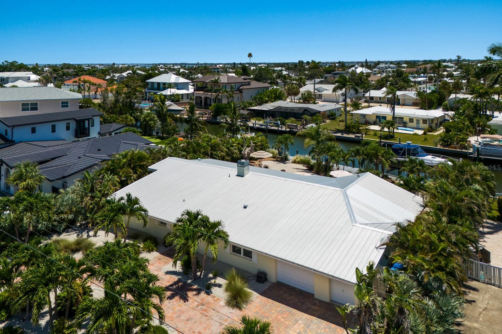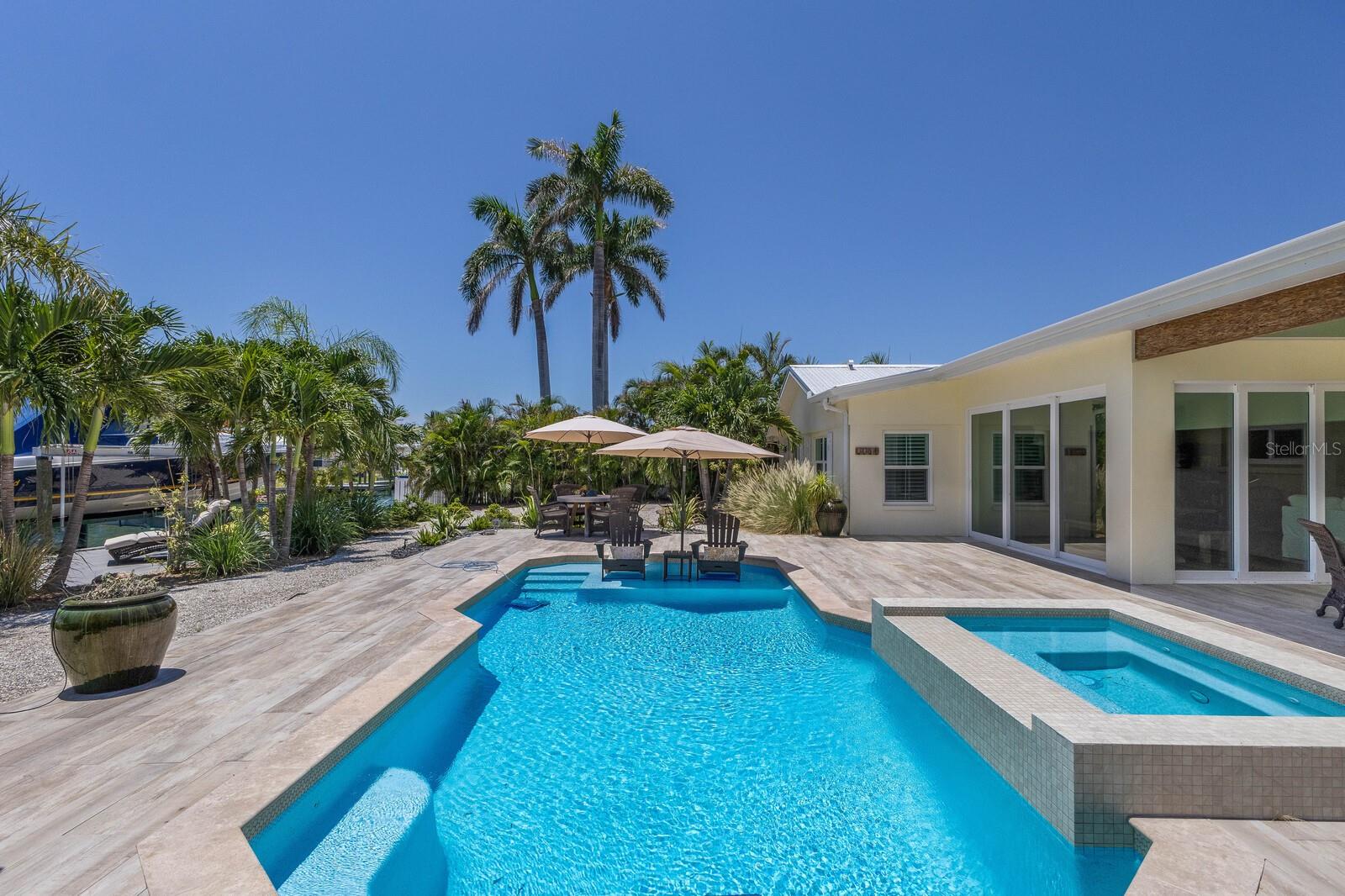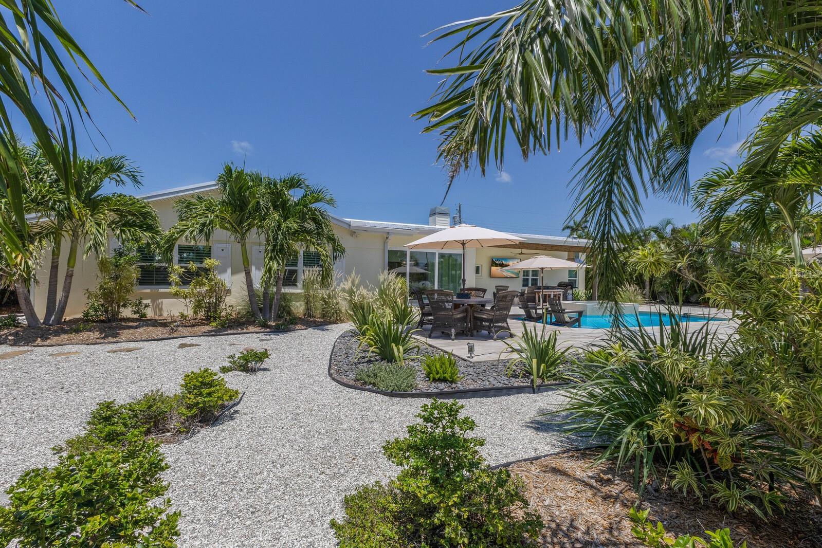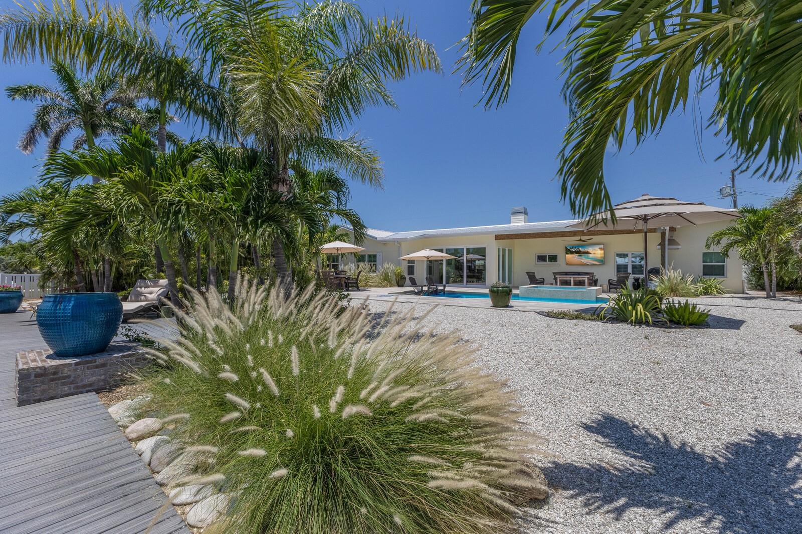 Set along a tranquil canal in the heart of Anna Maria Island, this stunning retreat offers the best of Florida living with its blend of comfort, functionality, and tropical elegance. With three spacious bedrooms and three beautifully appointed bathrooms, this home is designed to impress, featuring expansive sliding glass doors that flood the open-concept living area with natural light and offer seamless access to the private backyard oasis. The kitchen is a standout with sleek finishes, stainless steel appliances, a center island for gathering, a custom dry bar and a striking copper sink that adds a touch of artisan character. The interior features a split bedroom plan offering an easy flowing floor plan with a grand master suite, separate dining space, interior laundry room off the garage and so much more. Outside, the backyard is an entertainer's dream with a sparkling pool and spa surrounded by lush landscaping, multiple seating areas, and direct access to Tampa Bay where a 16,000 lb boat lift and low maintenance dock awaits for effortless days on the water. The garage not only offers ample storage but also includes dedicated space for your golf cart, while clever built-ins and overhead storage racks keep everything neatly in place. Impact windows and doors, newer metal roof and more give extra piece of mind. Whether you're dining indoors with views of the water, lounging poolside under the palms, or heading out by boat from your dock, this home invites you to slow down and savor the island lifestyle in comfort and style. Don't let this perfect slice of island life slip away!