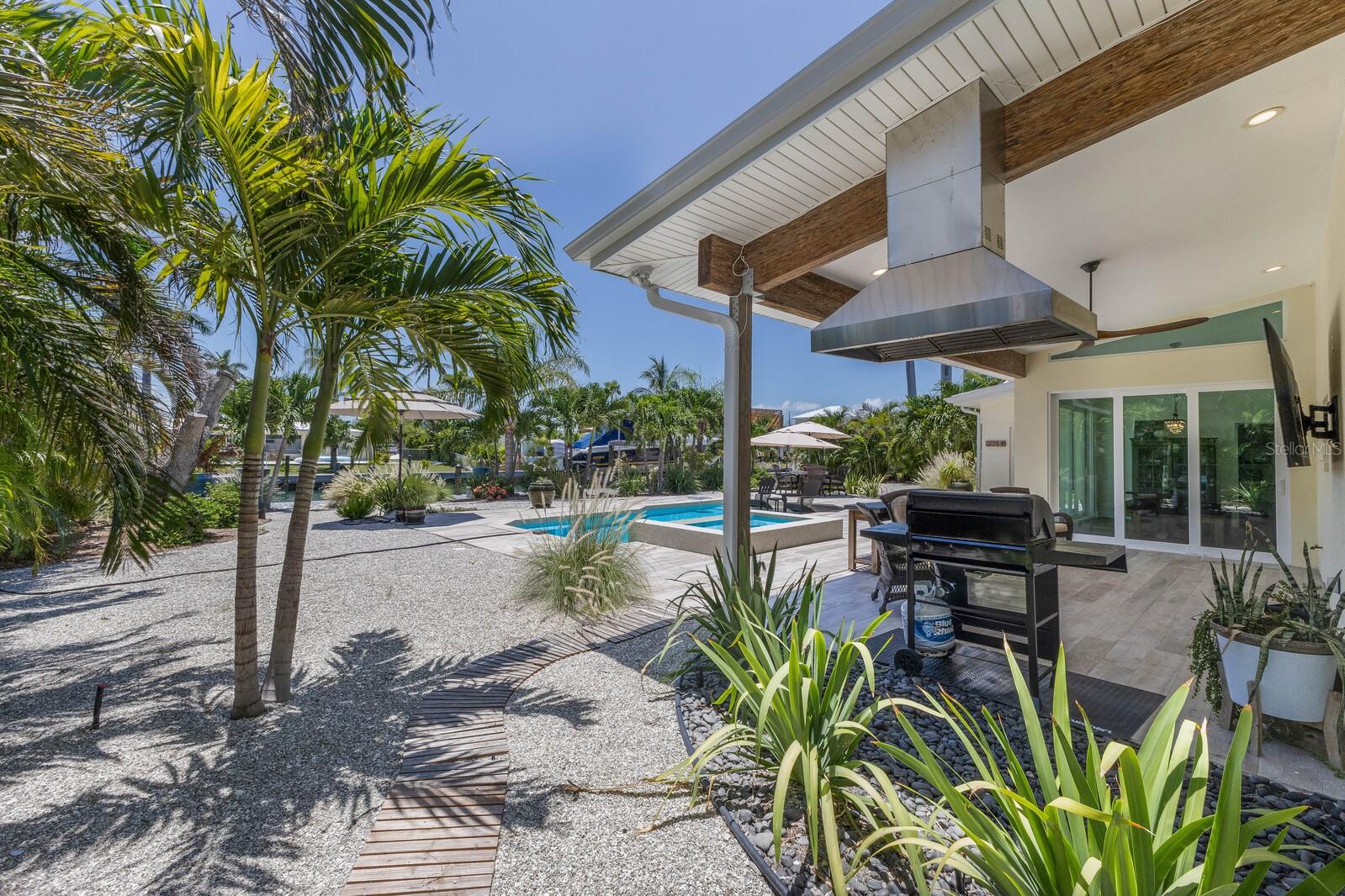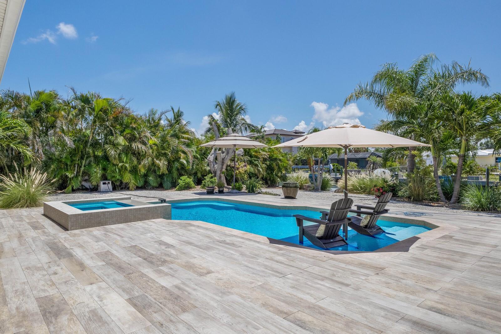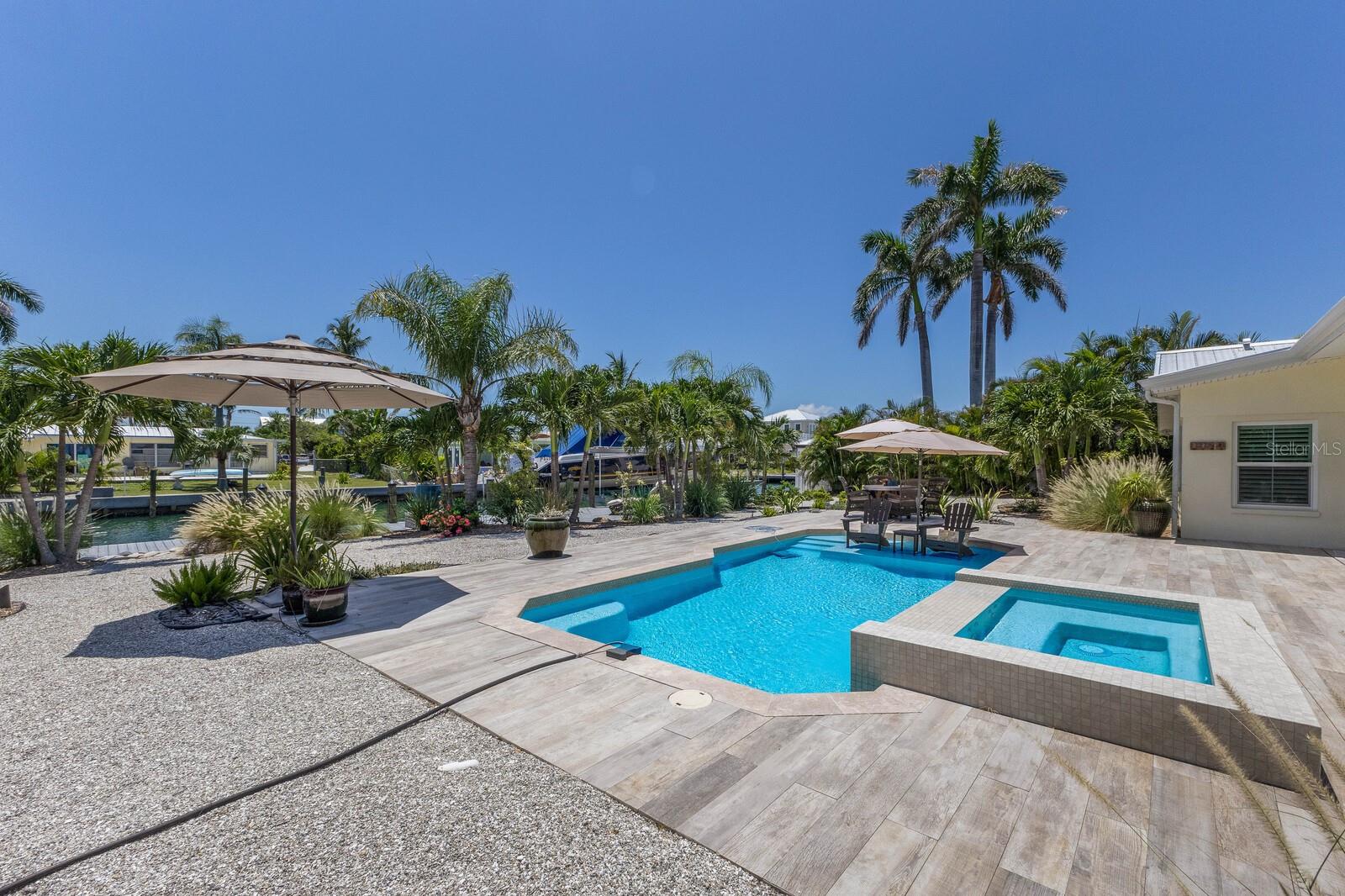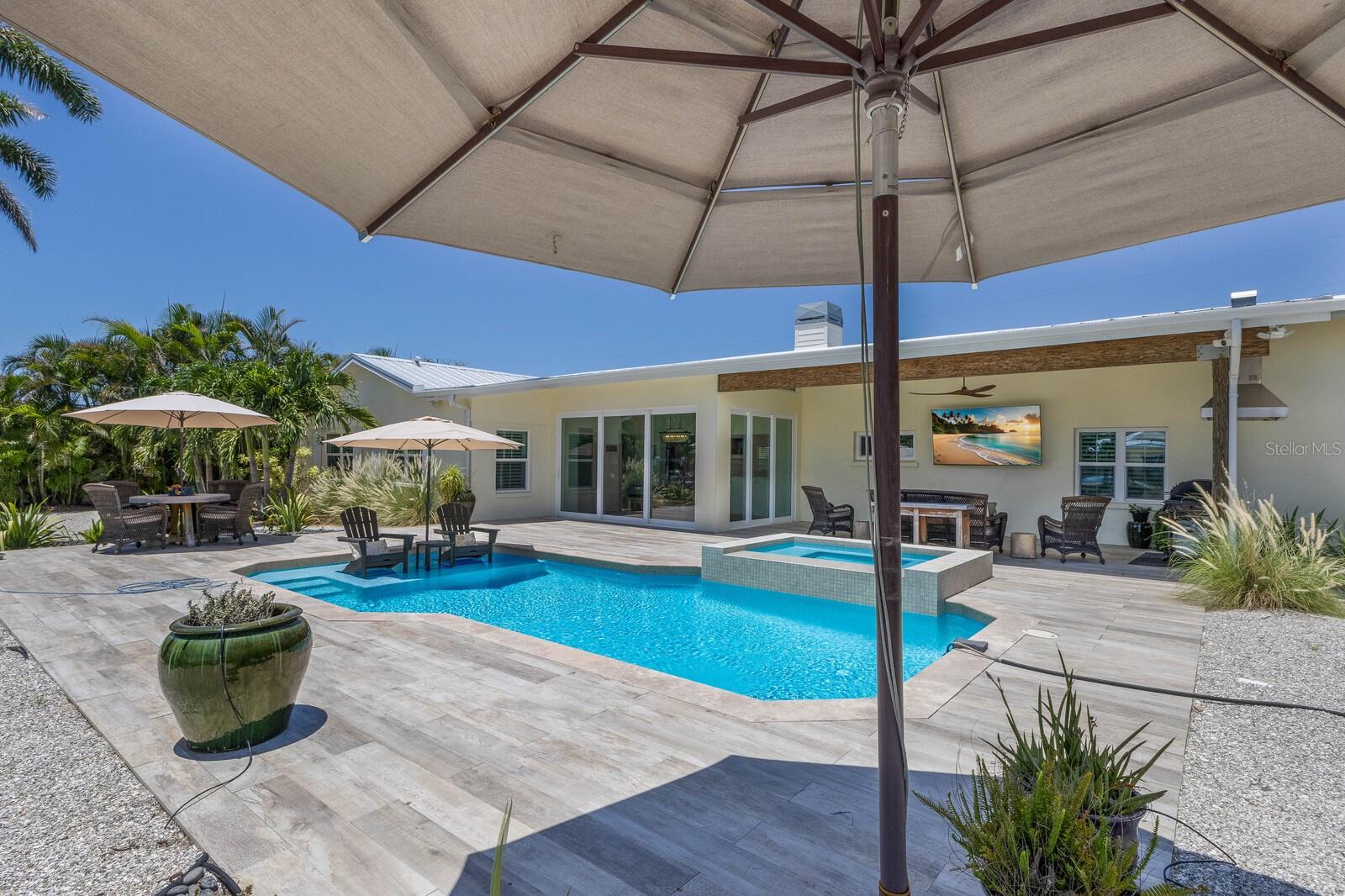Set along a tranquil canal in the heart of Anna Maria Island, this stunning retreat offers the best of Florida living with its blend of comfort, functionality, and tropical elegance. With three spacious bedrooms and three beautifully appointed bathrooms, this home is designed to impress, featuring expansive sliding glass doors that flood the open-concept living area with natural light and offer seamless access to the private backyard oasis. The kitchen is a standout with sleek finishes, stainless steel appliances, a center island for gathering, a custom dry bar and a striking copper sink that adds a touch of artisan character. The interior features a split bedroom plan offering an easy flowing floor plan with a grand master suite, separate dining space, interior laundry room off the garage and so much more. Outside, the backyard is an entertainer's dream with a sparkling pool and spa surrounded by lush landscaping, multiple seating areas, and direct access to Tampa Bay where a 16,000 lb boat lift and low maintenance dock awaits for effortless days on the water. The garage not only offers ample storage but also includes dedicated space for your golf cart, while clever built-ins and overhead storage racks keep everything neatly in place. Impact windows and doors, newer metal roof and more give extra piece of mind. Whether you're dining indoors with views of the water, lounging poolside under the palms, or heading out by boat from your dock, this home invites you to slow down and savor the island lifestyle in comfort and style. Don't let this perfect slice of island life slip away!