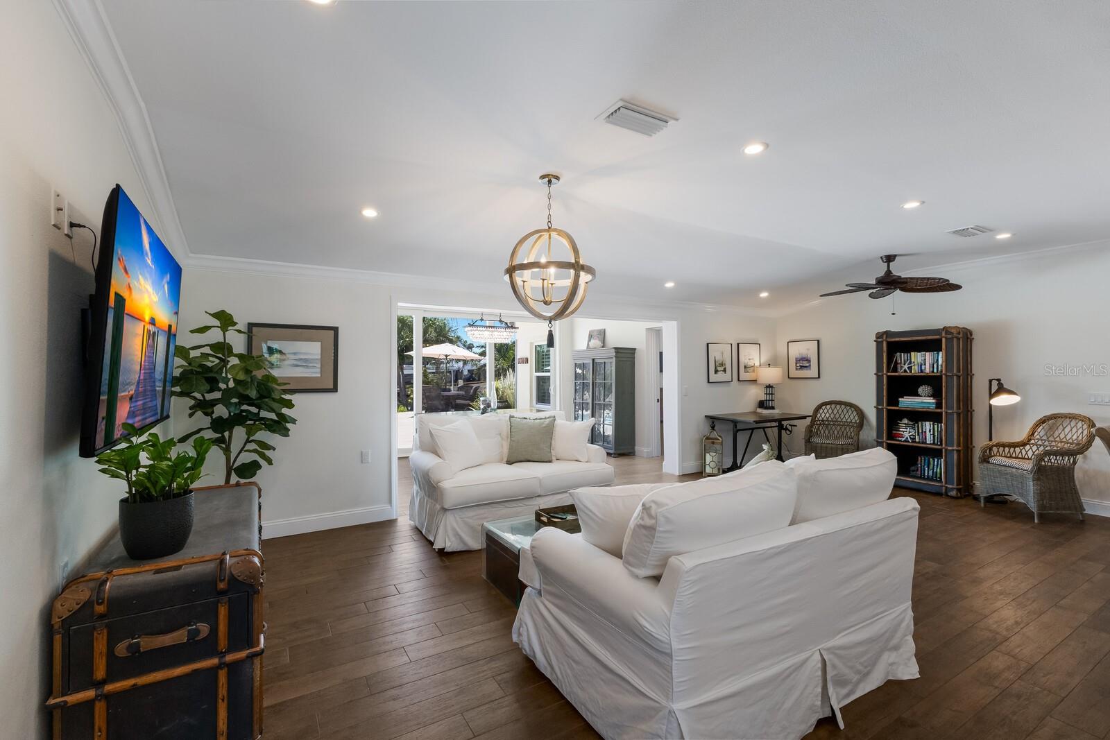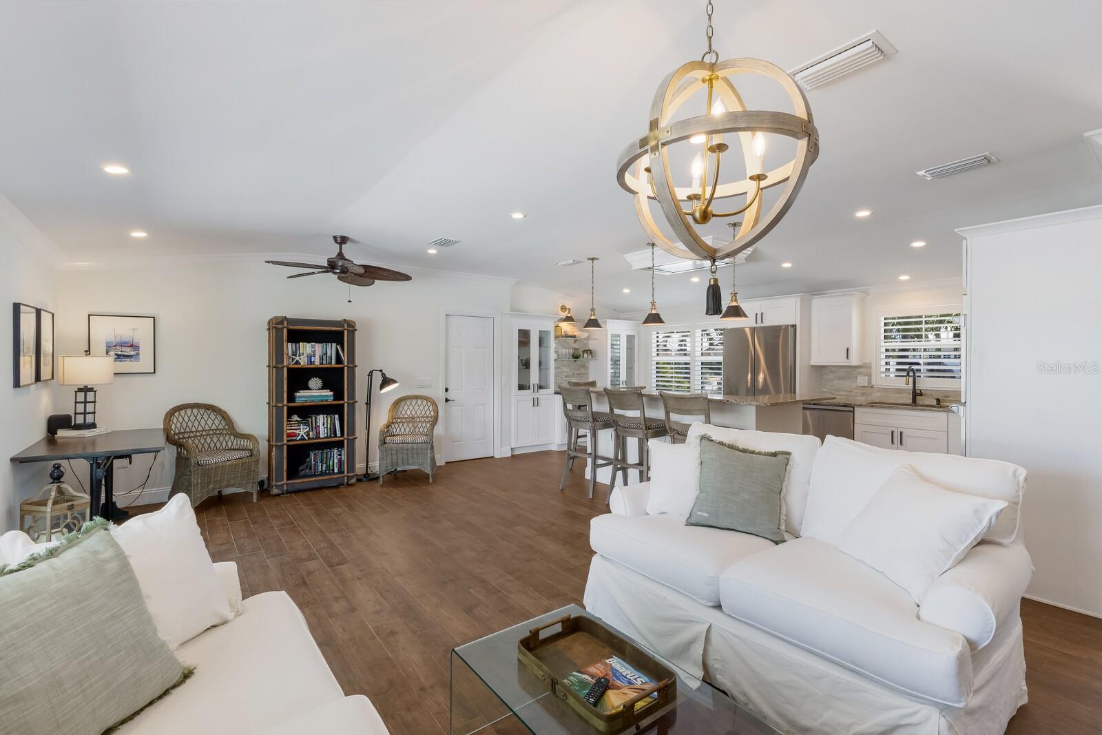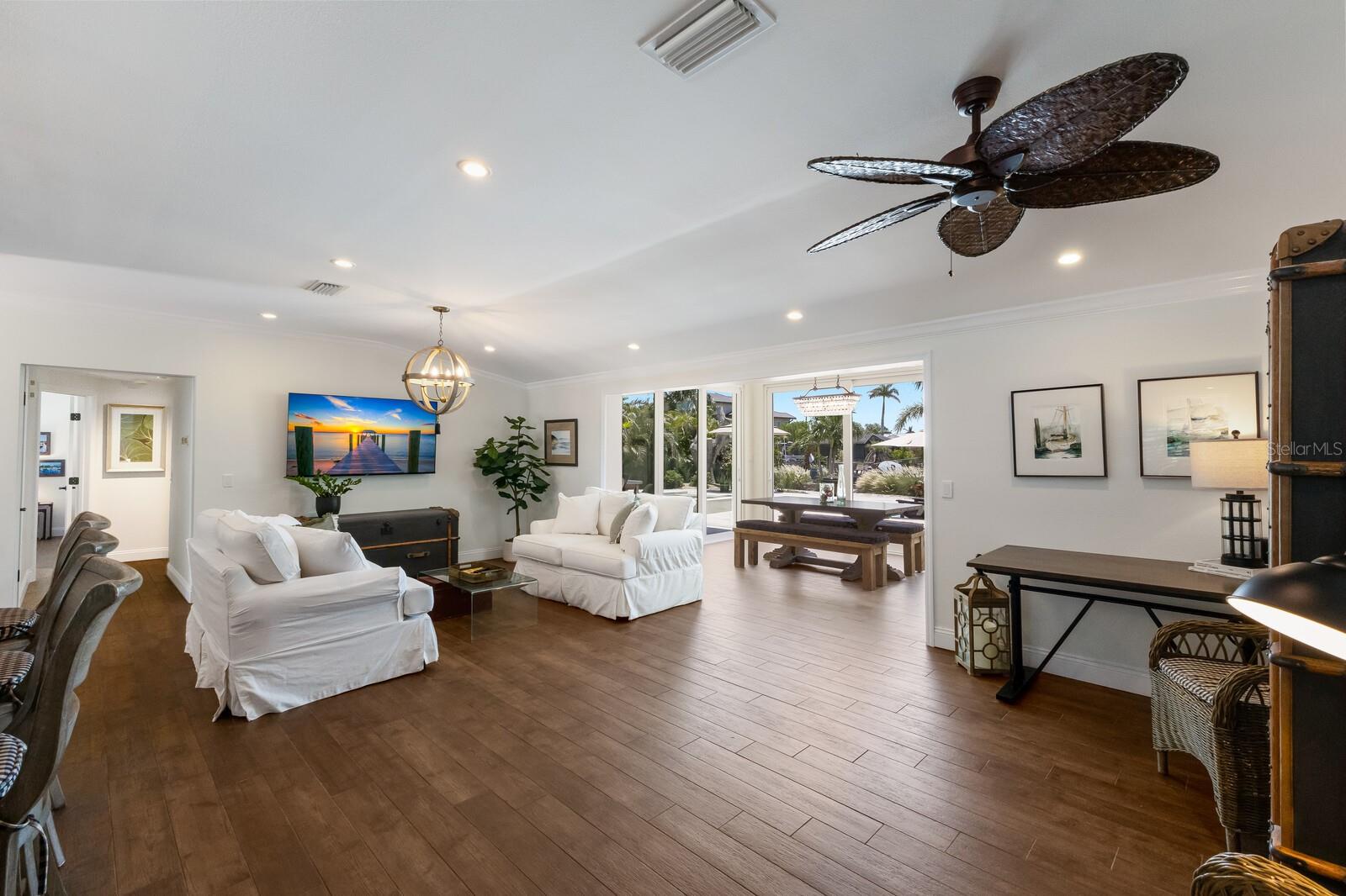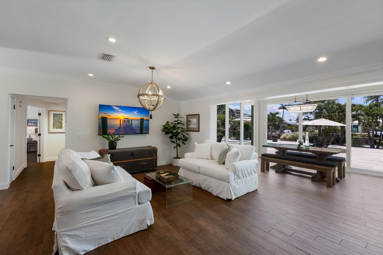 Set along a tranquil canal in the heart of Anna Maria Island, this stunning retreat offers the best of Florida living with its blend of comfort, functionality, and tropical elegance. With three spacious bedrooms and three beautifully appointed bathrooms, this home is designed to impress, featuring expansive sliding glass doors that flood the open-concept living area with natural light and offer seamless access to the private backyard oasis. The kitchen is a standout with sleek finishes, stainless steel appliances, a center island for gathering, a custom dry bar and a striking copper sink that adds a touch of artisan character. The interior features a split bedroom plan offering an easy flowing floor plan with a grand master suite, separate dining space, interior laundry room off the garage and so much more. Outside, the backyard is an entertainer's dream with a sparkling pool and spa surrounded by lush landscaping, multiple seating areas, and direct access to Tampa Bay where a 16,000 lb boat lift and low maintenance dock awaits for effortless days on the water. The garage not only offers ample storage but also includes dedicated space for your golf cart, while clever built-ins and overhead storage racks keep everything neatly in place. Impact windows and doors, newer metal roof and more give extra piece of mind. Whether you're dining indoors with views of the water, lounging poolside under the palms, or heading out by boat from your dock, this home invites you to slow down and savor the island lifestyle in comfort and style. Don't let this perfect slice of island life slip away!