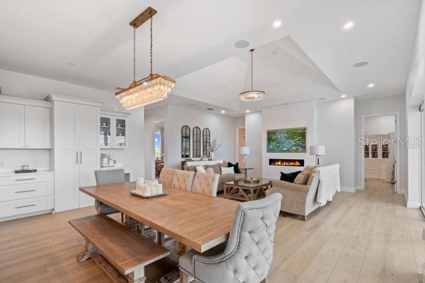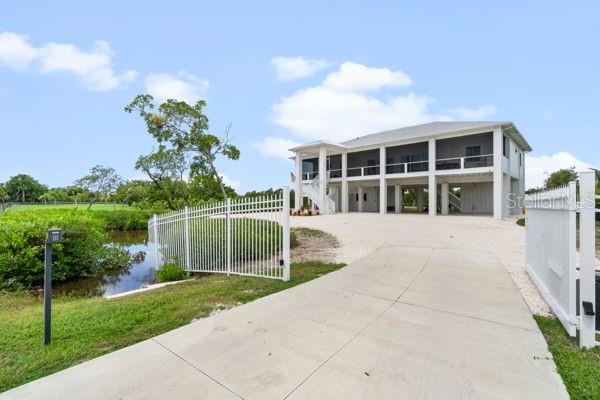 An exquisite, newly constructed stilted waterfront estate awaits in the community of Terra Ceia. Set on over 1.5 acres of lush, tranquil property with sweeping views of Terra Ceia Bay, this custom-designed residence offers the ultimate in coastal luxury and durability. Built to withstand Florida's most challenging weather, the home is equipped with hurricane-impact windows and doors throughout, ensuring both safety and serenity year-round. Exclusive water access adds exceptional value, with a professional dock and seawall estimate from Duncan Seawall & Docks included in the disclosures. A mosquito misting system around the perimeter ensures peaceful outdoor living, while the elevated construction blends elegance with intelligent engineering.Inside, every detail is curated for refined living. The primary suite is a luxurious sanctuary, featuring custom his-and-her walk-in closets, an MTI heated shell soaking tub with microbubble therapy and a mirrored TV, a steam shower with rainfall and handheld options, dual vanities with anti-fog mirrors, a quartz bench, and a private water closet. An angled tray ceiling adds architectural dimension, and a private slider opens directly to the front porch for seamless indoor-outdoor enjoyment.The gourmet kitchen is a true showpiece, appointed with high-end Caf appliances, a six-burner gas range, pot filler, and soft-close cabinetry. Cambria quartz countertops and a dramatic center island with brass accents elevate both function and style. A hidden butler's pantry, wine and beverage fridges, soft nugget ice maker, and champagne brass sink complete the space for effortless entertaining. The main living area is anchored by a modern Dimplex Opti-V electric fireplace, while integrated USB outlets provide contemporary convenience.Thoughtful layout and flow continue throughout the home with a Jack-and-Jill suite connecting two spacious bedrooms, and a private fourth bedroom off the laundry room featuring its own en-suite bath and walk-in closet. Additional highlights include a Rinnai tankless water heater, a hydraulic elevator, a 22,000-watt generator with an oversized gas tank, and a unique three-staircase design connecting the front porch, side entry, and back lanai.The oversized 40' x 20' brushed-concrete pool provides the ideal setting for both recreation and relaxation. The outdoor kitchen is fully equipped with gas lines for a two-burner grill, sink, and a Renaissance cooking system set on natural quartz surfaces--perfect for al fresco dining.Optional membership in the Terra Ceia community offers access to Sea Breeze Park, a newly constructed playground, a fishing pier, and a community dock. Social gatherings abound with seasonal events, regattas, food trucks, and a brand-new pickleball court, creating a vibrant, welcoming atmosphere.With its impeccable design, premium finishes, and unmatched resilience, this waterfront retreat offers a rare opportunity to live luxuriously in a peaceful yet active coastal enclave. Schedule your private showing today.