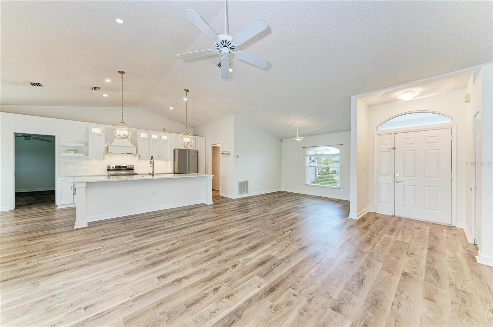 Welcome to 2403 Icecapade Drive -- a beautifully renovated 3-bedroom, 2-bathroom, solar heated pool home with peaceful pond views, located in one of Sarasota's most convenient and vibrant areas. This home blends modern updates with the laid-back Florida lifestyle, offering an open-concept layout with vaulted ceilings and NEW luxury vinyl plank flooring throughout. The heart of the home is the fully remodeled kitchen, featuring a fully remodeled kitchen with quartz countertops, NEW stainless steel appliances, and a fresh, modern design that makes cooking and entertaining a breeze. All new impact glass windows and sliders (2021) fill the home with natural light while providing storm protection and energy efficiency. The home's roof is only 8 years old and the home also includes a wood burning fireplace for the Florida winter nights. Additional upgrades include a new hot water heater (2019) and impact sliding glass doors that lead out to your private screened-in pool area -- complete with a solar-heated pool -- perfect for enjoying year-round dips and sunsets over the tranquil pond. Beyond the home, you're perfectly situated to enjoy the best of Sarasota living. Just a short drive away are the white sand beaches of Siesta Key, consistently ranked among the top beaches in the world. Explore the cultural charm of downtown Sarasota, home to The Ringling Museum, Marie Selby Botanical Gardens, Van Wezel Performing Arts Hall, and a thriving art and theater scene.Shopping enthusiasts will love the proximity to University Town Center (UTC), offering upscale retailers, dining, and entertainment. Nature lovers and active lifestyles will appreciate nearby parks and trails like Nathan Benderson Park, Myakka River State Park, and the Legacy Trail -- perfect for biking, walking, or kayaking.With top-rated schools, nearby golf courses, weekly farmers markets, and endless dining options ranging from casual waterfront eateries to fine dining, Sarasota offers a lifestyle that's hard to beat.Whether you're looking for your forever home or a Florida getaway, 2403 Icecapade Drive is move-in ready and ideally located to enjoy all that Sarasota has to offer.