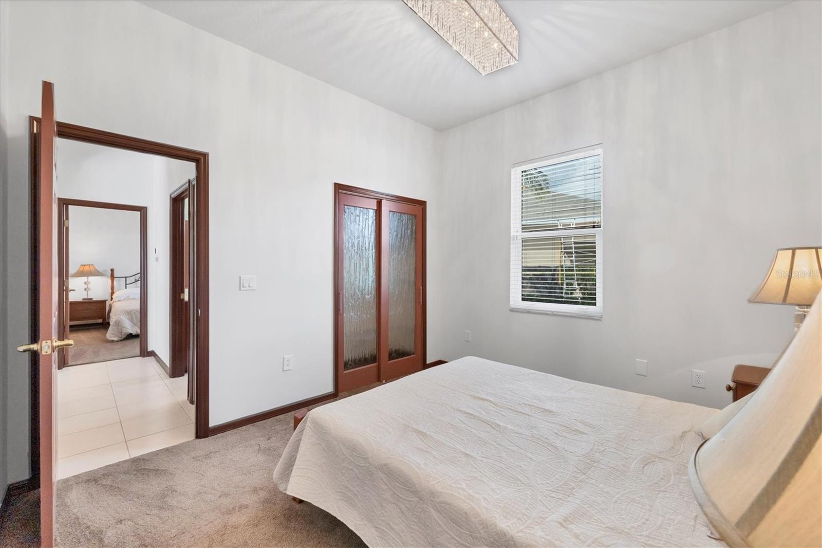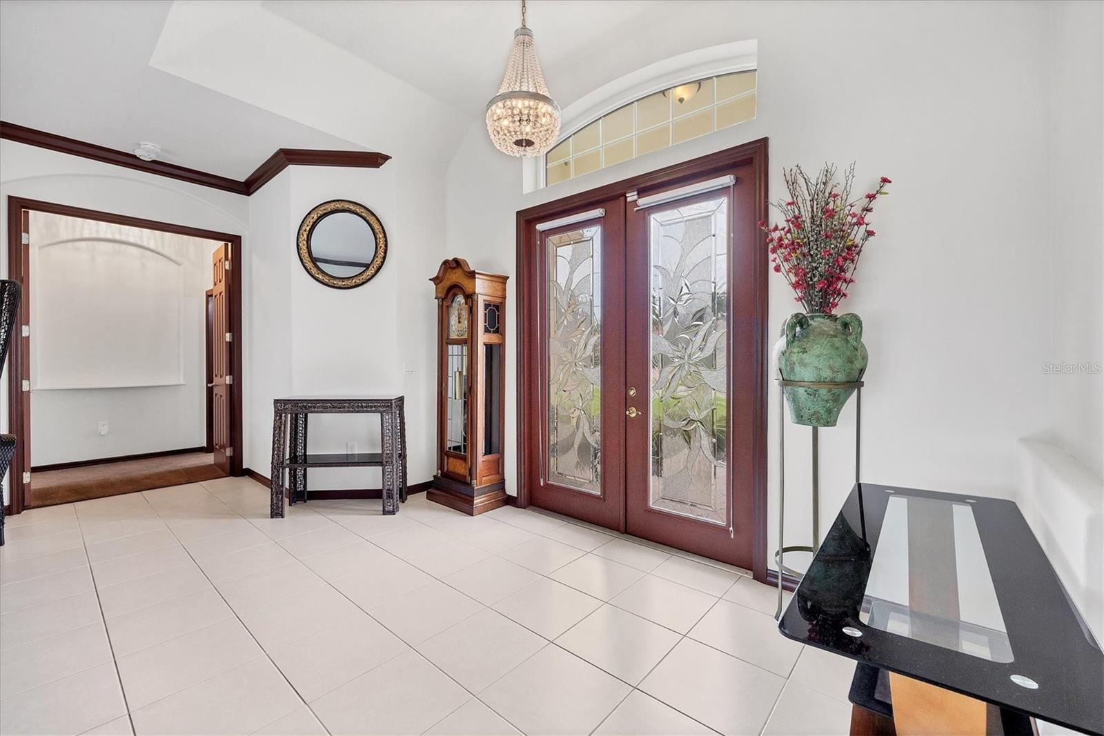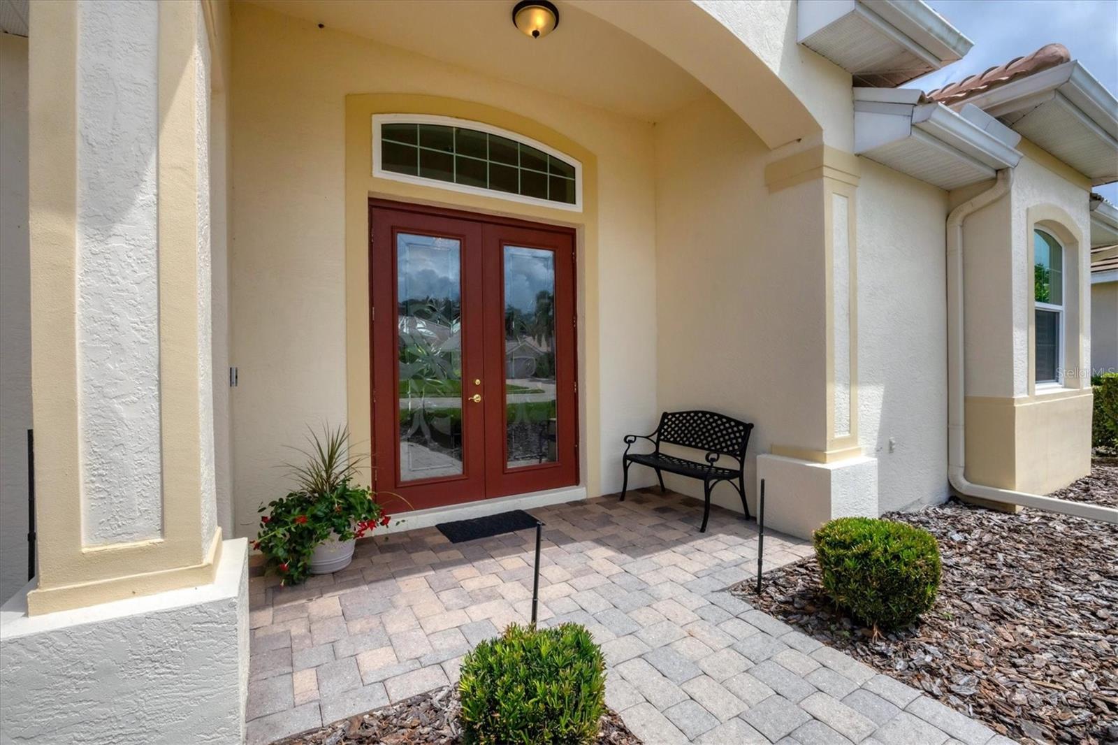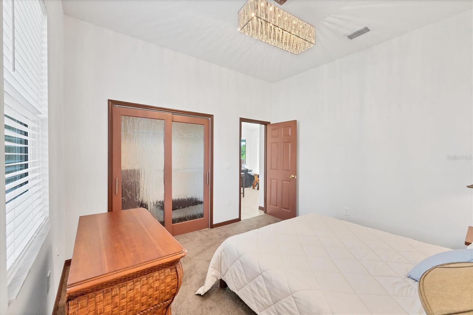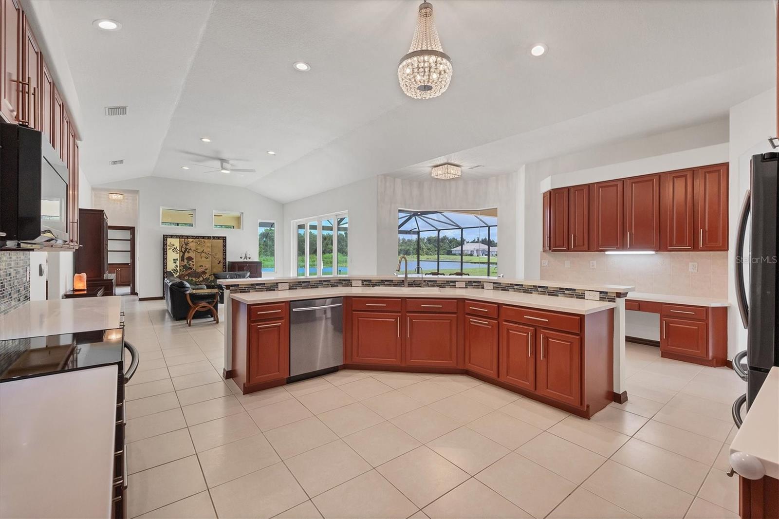 This stunning home is in the popular Mote Ranch, River Bend area. Boasting 2,965 square feet, it features three bedrooms and three baths, and overlooks a calming pond area, providing privacy and beauty. As you enter the home through the double etched doors, you are welcomed into the living room by a stunning view of the pool and pond area. The coffered ceilings in the foyer and den area add an attractive touch to the lofty ceilings and open living space. The den/bonus room boasts plantation shutters. The bright and sunny family room provides ample space for entertainment. The breakfast nook offers space for a table with a bay window overlooking the pool. The family room also features high windows that provide ideal lighting, and double doors that open onto the lanai and pool area. The spacious kitchen offers an abundant area to entertain with ease. The primary bedroom overlooks the oversized lanai and pool and boasts two walk-in closets and a bump-out with plantation shutters for privacy. The generous bath includes a soaking tub, walk-in shower and double sink vanity. The large rear office has stunning built-in cabinetry and generous windows overlooking the pond area. There is a full bath next to the office that can also serve as a pool bath. Two additional bedrooms share a full bath with tub and shower. Opening onto the exceptionally large lanai with travertine, it allows space for an outdoor kitchen. The lovely saltwater pool has been upgraded with new tile surround. This home has received numerous updates, including the lanai area just power washed and sealed. A new roof was installed in 2024, a new water heater in 2023, and new air-conditioning units in 2021 and 2023. Below are renovations completed in 2019. All new hurricane-compliant exterior windows and sliding glass doors were added, along with a new garage door and exterior doors, new lanai pavers, a pool cage, and a screen. The home was painted inside and out, and the pool was resurfaced with new tiles. It also had new carpeting, Samsung refrigerator with computer screen, dishwasher and stove. The location in Mote Ranch is ideal for access to shopping, restaurants, SRQ airport and more. There are no CDD fees in the neighborhood and low HOA fees. Mote Ranch features a junior-sized Olympic pool, a playground, and access to the Braden River for canoeing or kayaking. It has lofty ceilings and features that allow for the best lifestyle and convenience.