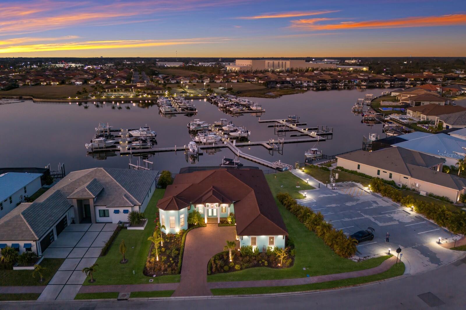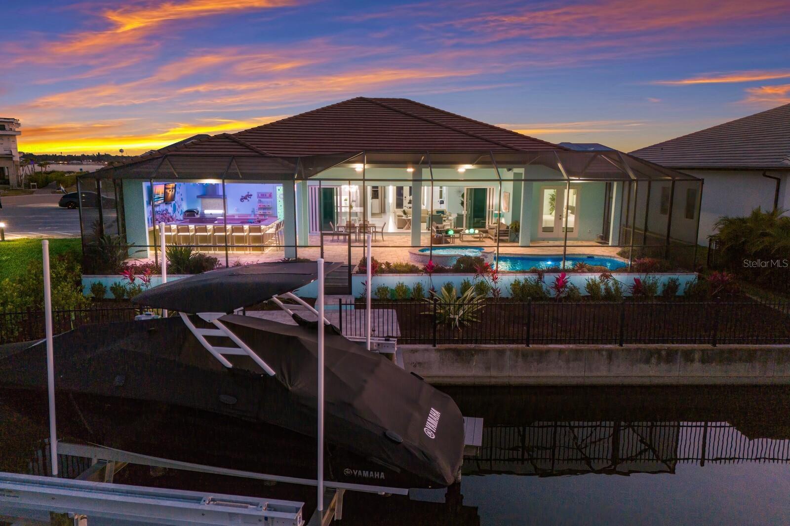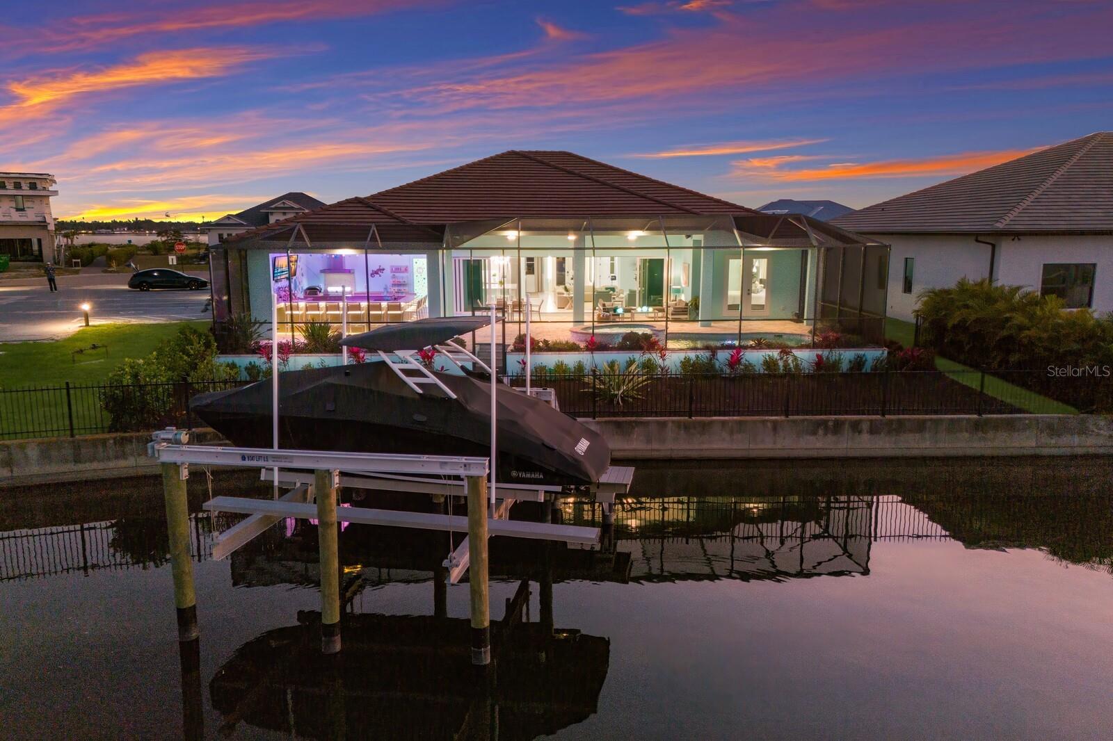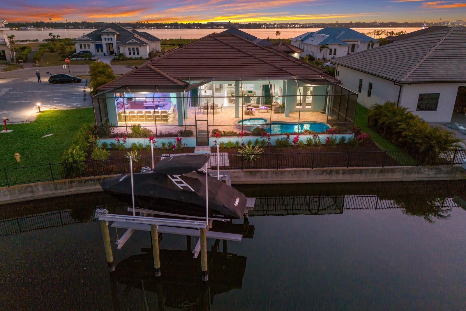 New Price !! Outdoor living defined in this Custom Home with designer upgrades in every room and more, all located at Water's Edge in The Sanctuary! Having your closest friends over for an al fresco dinner, the Big Game or holidays will never be the same as the 14 seat covered area on the pool deck is unparalleled. Keep your boat on the 16,000# lift off your screened pool - so short rides out to the Manatee River, local restaurants and Anna Maria Island will become the norm...so much to love, it will be hard to choose how to enhance another epic day. Designer touches abound in this Smart Home - just ask Alexa to enhance your showing. Peace of Mind here as well - All windows and Doors are Impact Rated. A thoughtful custom home here that features 2 offices (one being used as a Craft Room that belongs in a Magazine) Split bedrooms, a pool bath, Guest space for the little ones to call their own, Custom Wood working, lighted Tray Ceilings, LED lighting, Induction Top in the Kitchen with separate oven, a combi-oven and more...Should you need to use the Clubhouse, an 8000sqft space awaits, with cooking options, pool table, fitness center and more - plus a private beach and parking spaces for your guests.Do yourself a favor and add this one to your "list" - if boating and entertaining are important to you, then this home will take you up a few notches and then some!