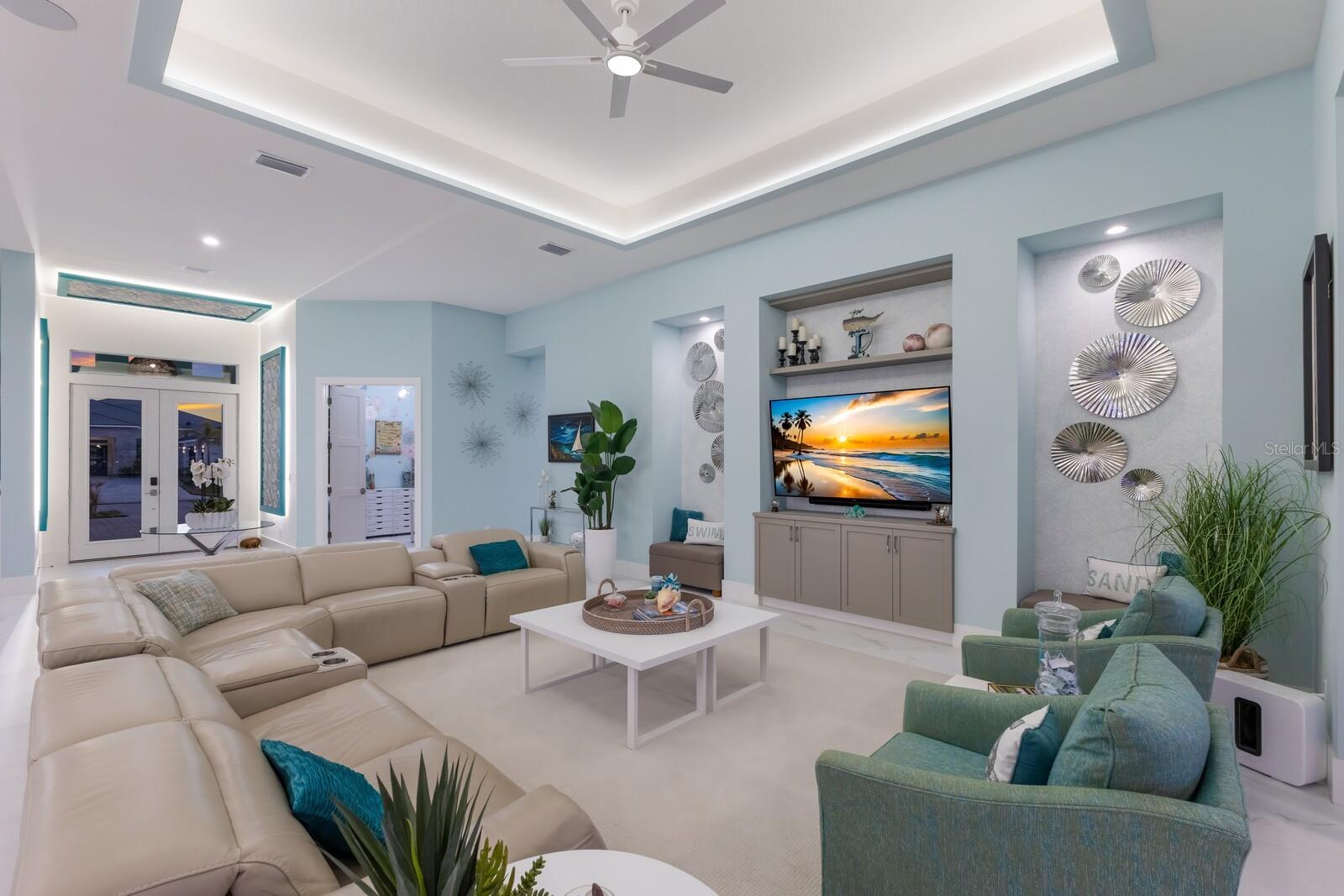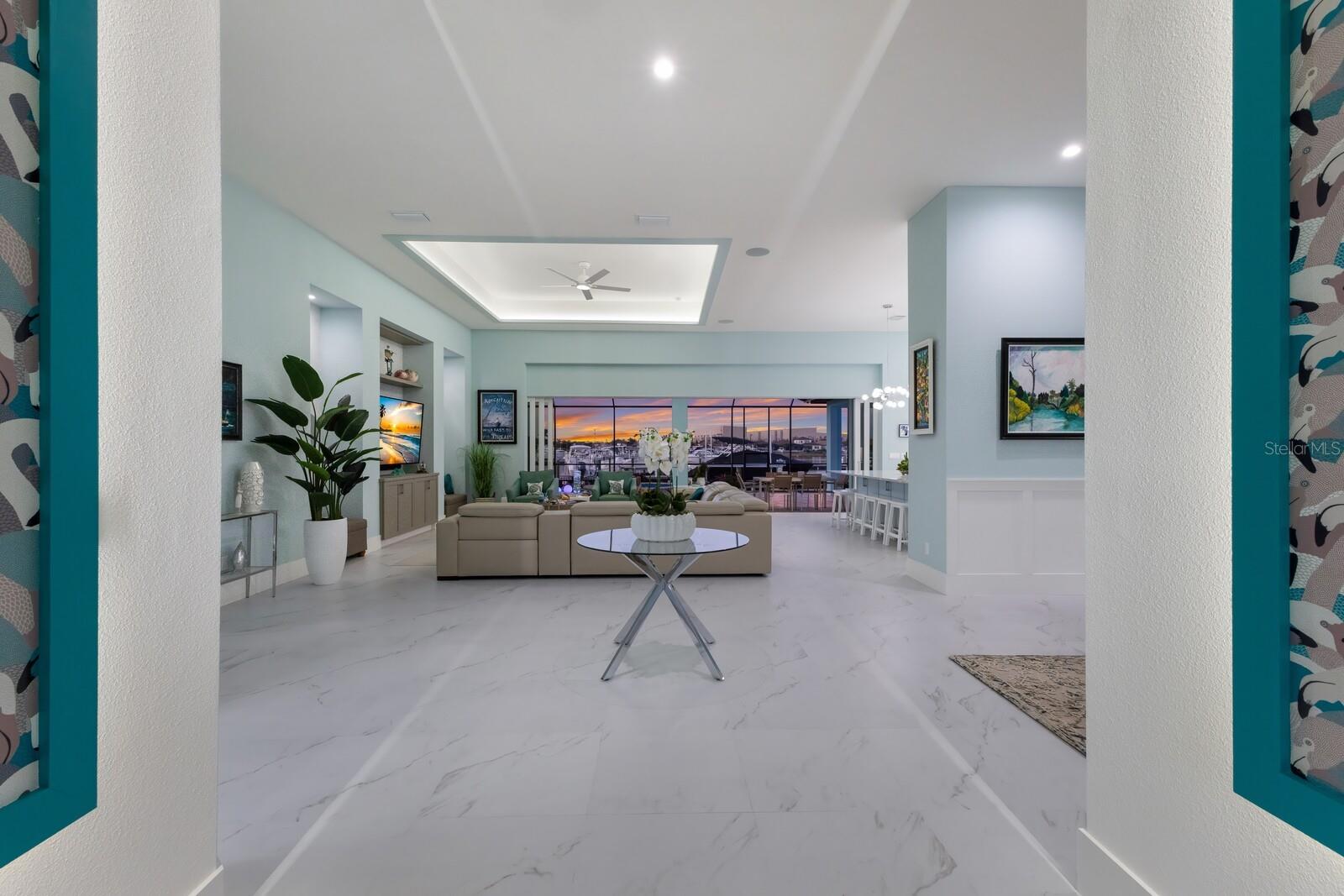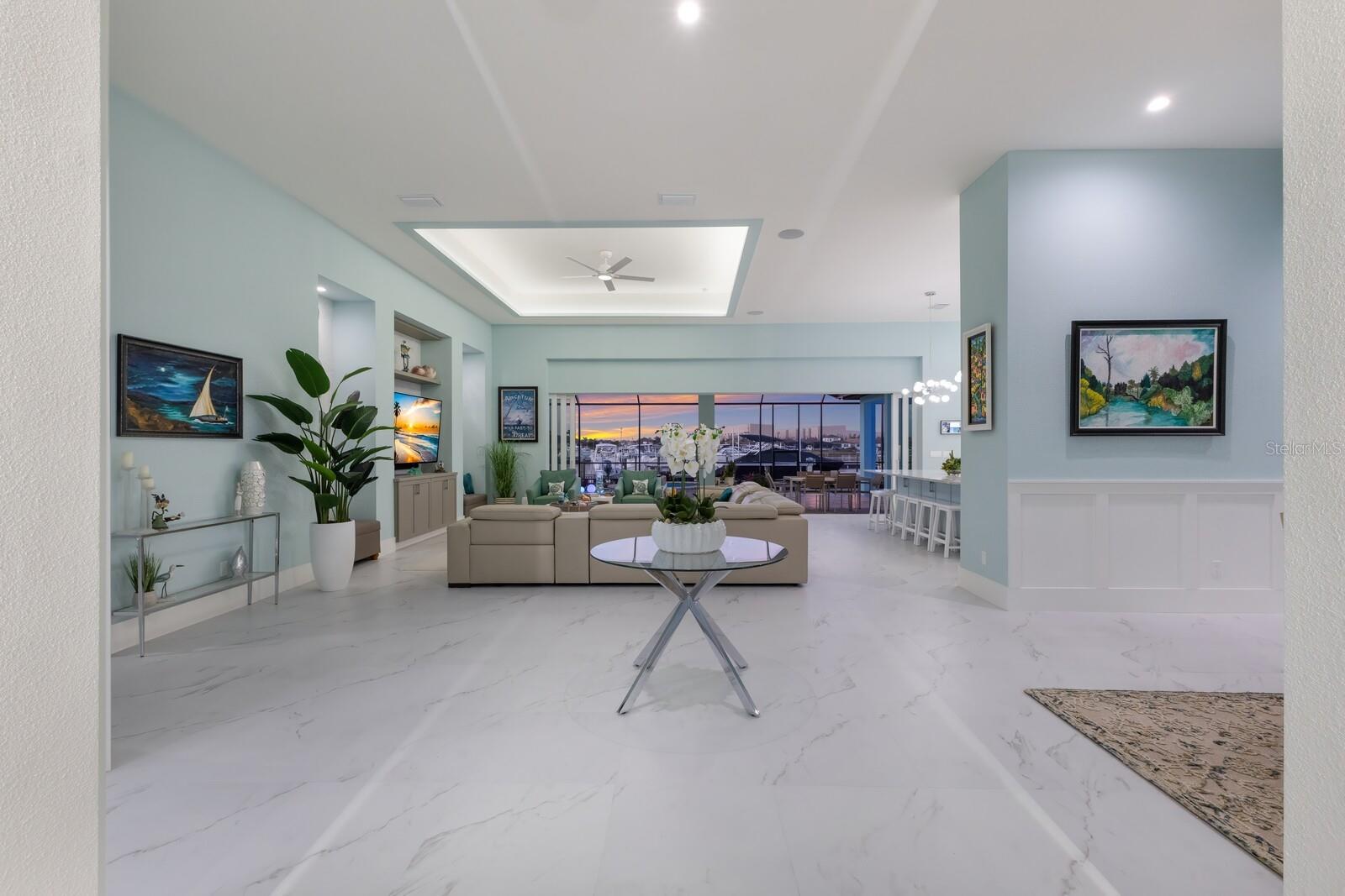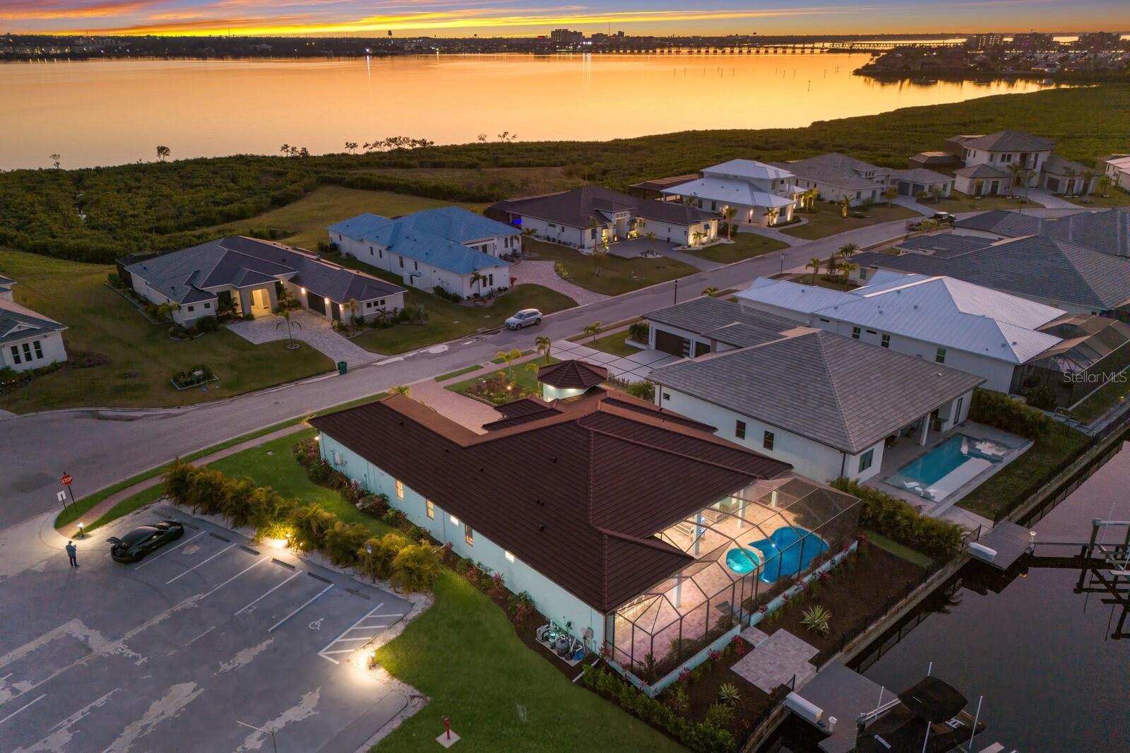 New Price !! Outdoor living defined in this Custom Home with designer upgrades in every room and more, all located at Water's Edge in The Sanctuary! Having your closest friends over for an al fresco dinner, the Big Game or holidays will never be the same as the 14 seat covered area on the pool deck is unparalleled. Keep your boat on the 16,000# lift off your screened pool - so short rides out to the Manatee River, local restaurants and Anna Maria Island will become the norm...so much to love, it will be hard to choose how to enhance another epic day. Designer touches abound in this Smart Home - just ask Alexa to enhance your showing. Peace of Mind here as well - All windows and Doors are Impact Rated. A thoughtful custom home here that features 2 offices (one being used as a Craft Room that belongs in a Magazine) Split bedrooms, a pool bath, Guest space for the little ones to call their own, Custom Wood working, lighted Tray Ceilings, LED lighting, Induction Top in the Kitchen with separate oven, a combi-oven and more...Should you need to use the Clubhouse, an 8000sqft space awaits, with cooking options, pool table, fitness center and more - plus a private beach and parking spaces for your guests.Do yourself a favor and add this one to your "list" - if boating and entertaining are important to you, then this home will take you up a few notches and then some!