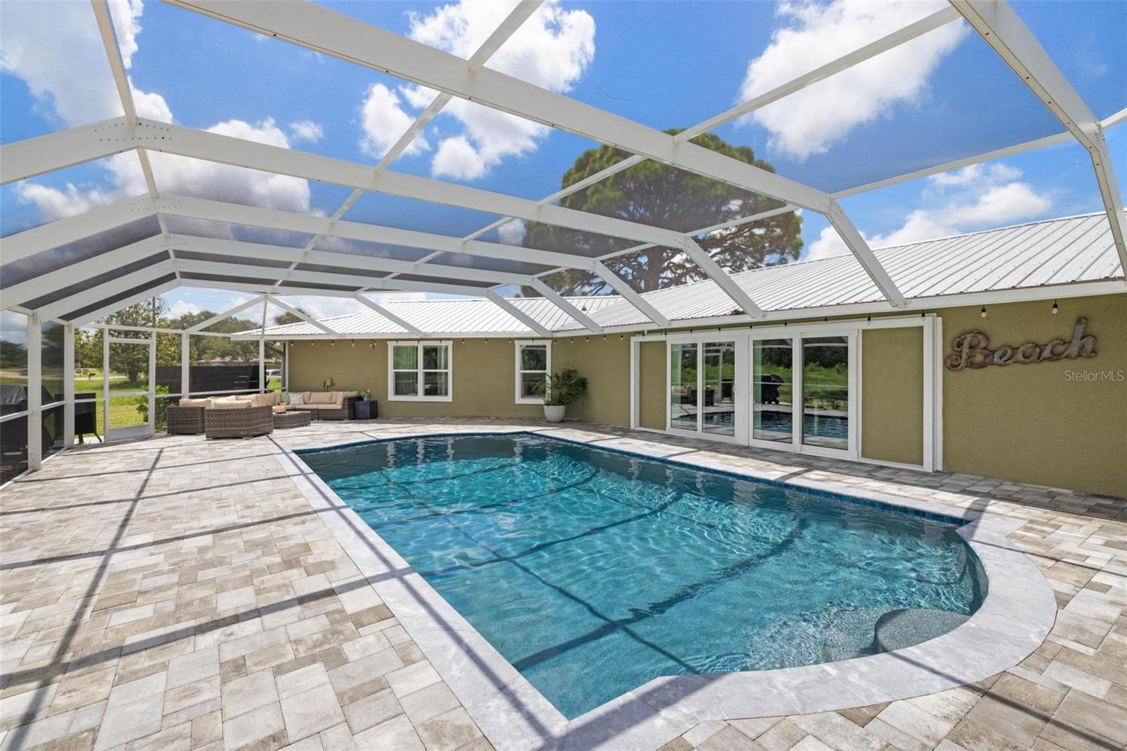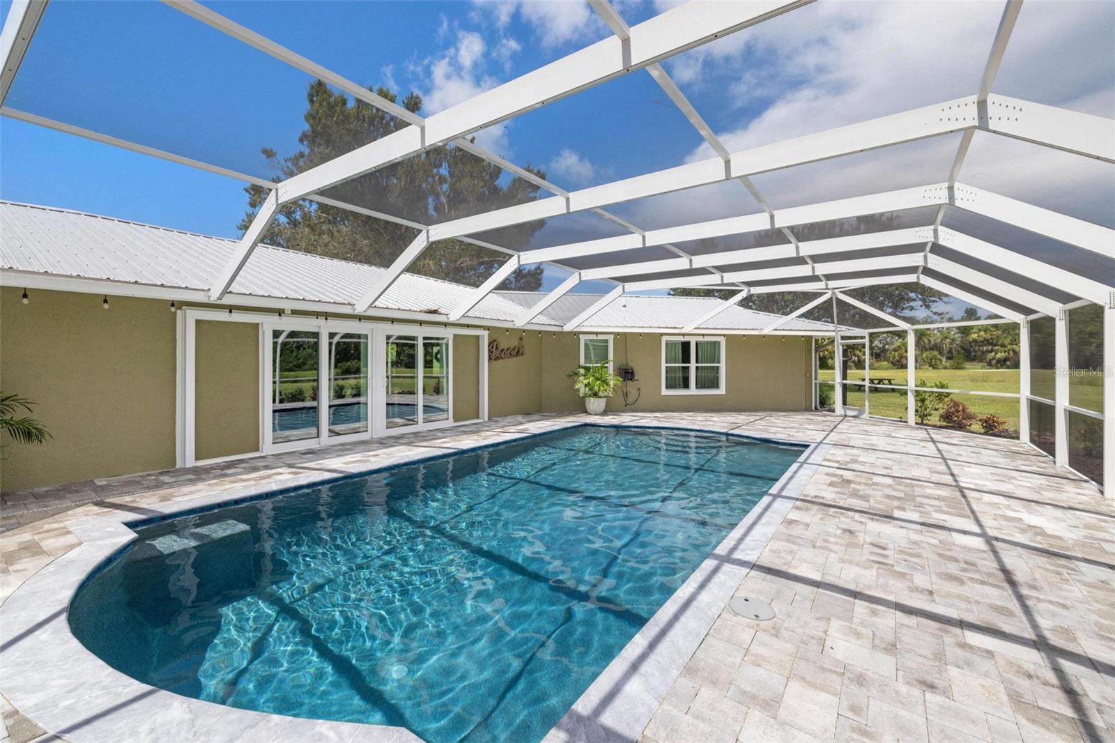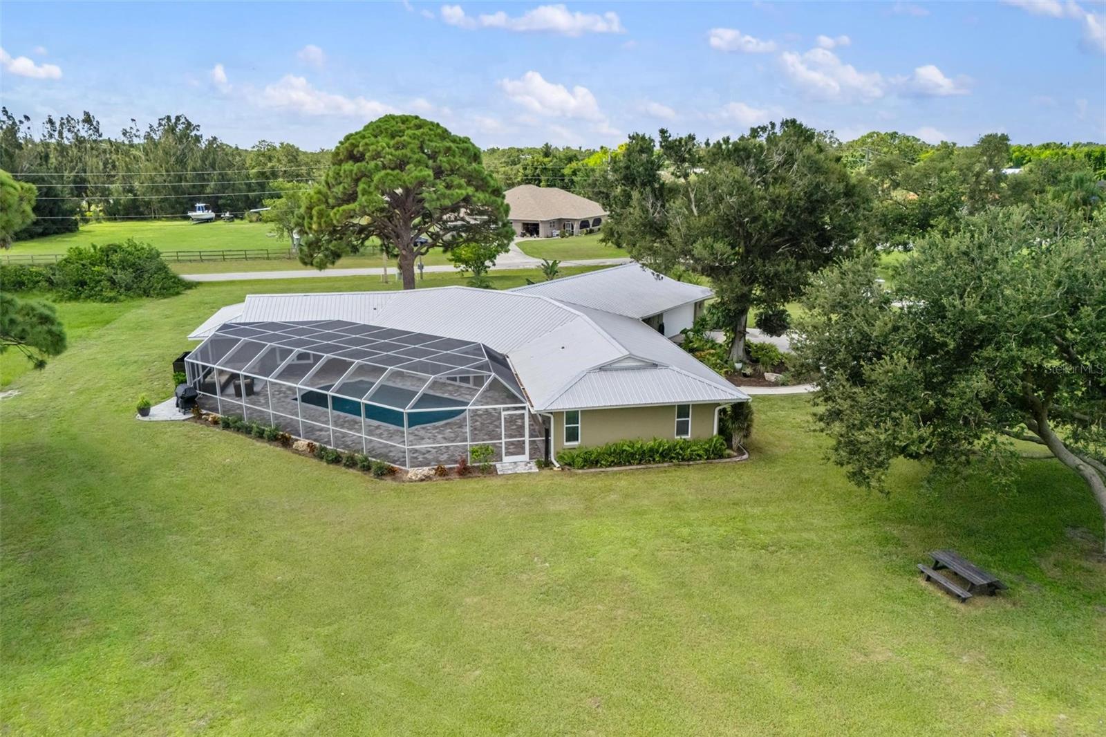 Welcome to this one-of-a-kind estate, where luxury living meets serene country charm. Set on just over 3 acres--including a fully stocked private pond and room for horses--this home was designed for those who crave peace and privacy. Perfectly positioned on a quiet private road, this immaculate 3-bedroom, 3-bathroom home is a space to enjoy for years to come. Step inside and you'll immediately notice the spacious, open layout with over 3,000 square feet of thoughtfully designed living space. The heart of the home is the chef's kitchen, complete with rich wood cabinetry, stainless steel appliances, quartz countertops, a wine cooler, and bar seating that flows effortlessly into the great room, making it the ideal space for everyday living. Each of the three generously sized bedrooms features its own ensuite bathroom, offering comfort and privacy for all in this split bedroom layout. The luxurious primary suite boasts LVP flooring, a walk-in closet, and a spa-worthy ensuite bath tucked behind a barn door, showcasing a soaking tub, glass-enclosed shower with striking floor-to-ceiling tile, dual quartz-topped vanity, and an LED mirror. An indoor laundry room adds everyday convenience. Step outside through double sliding glass doors to your screened-in lanai, where pavers surround a resurfaced PebbleTec in-ground pool--your private outdoor oasis. There's also a detached block garage with electric--ideal for a workshop, extra storage, garage or even future guest space. Recent upgrades offer peace of mind, including a new HVAC in 2024, re-piped plumbing, two new water heaters, a metal roof, dual septic systems and County water is already in place! This equestrian-zoned property has its own fully stocked pond, all you need is your fishing pole. Conveniently located near local school bus stops and the peace of mind that comes with being zoned for top-rated schools including Laurel Nokomis Elementary & Middle, and Venice Senior High. Spend your weekends exploring the scenic Legacy Trail or hiking through Oscar Scherer State Park. Craving sand and saltwater? The Gulf is calling--just 2 miles away, you'll find a beautiful local beach with a public boat ramp offering quick access to the Intracoastal Waterway for kayaking, paddleboarding, or a day out on the boat. This location combines the best of both worlds: tranquil acreage and seamless access to the surrounding Gulf Coast lifestyle. Schedule your showing today!