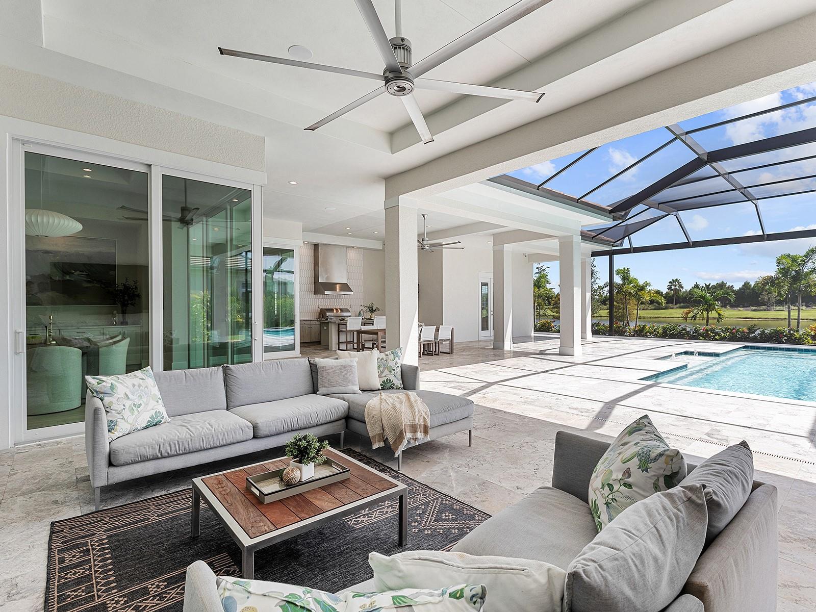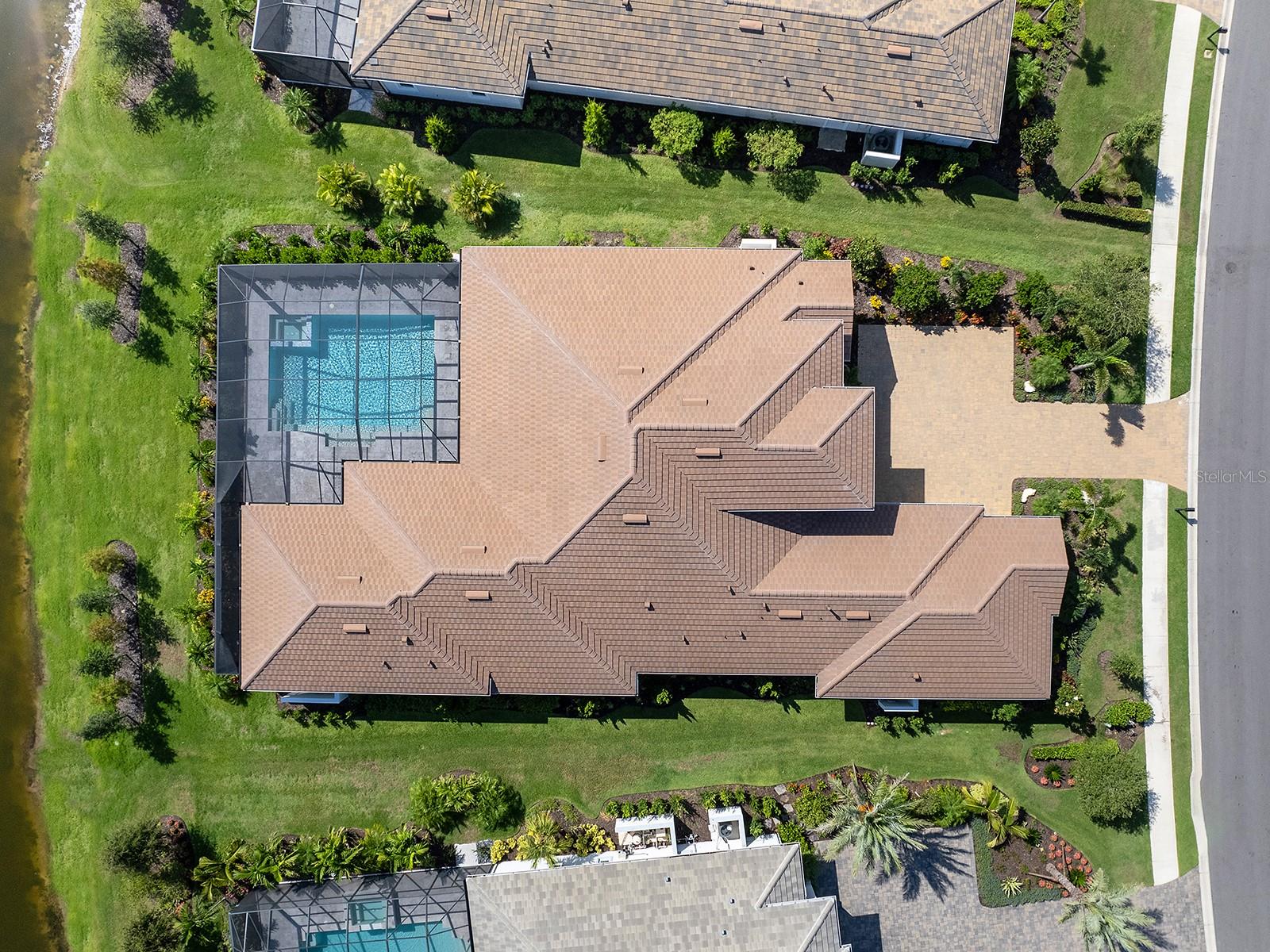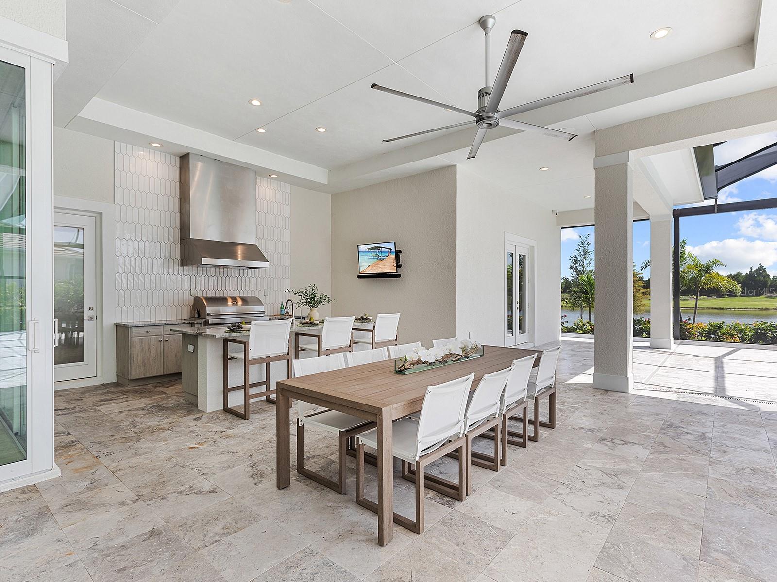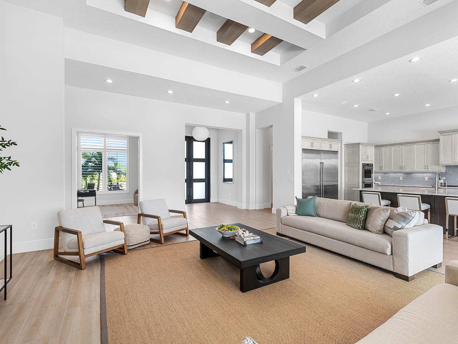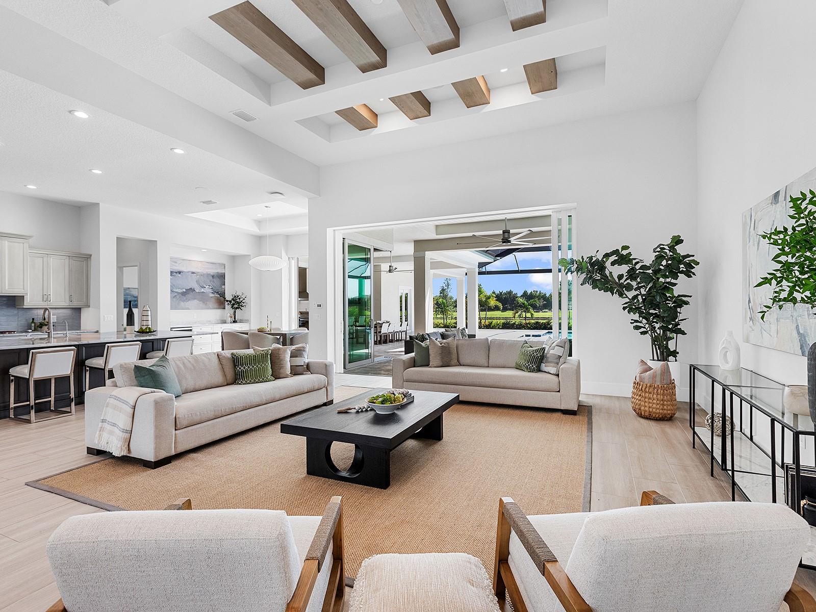 Welcome home to the ideal residence in The Lake Club with gorgeous private water views! One of the most desirable floor plans is this 2023 home offering a coveted separate casita guest house, plus a modern open plan, luxurious primary suite, 3 additional guest bedrooms all with private en-suite bathrooms, study, and expansive air-conditioned 3-car garage. The exterior invites you home with 2025 freshly painted exterior, updated lush landscaping, and wide driveway with parking pad. This residence is filled with clever upgrades that make daily life more enjoyable including IMPACT windows and sliders throughout, security camera system, Wi-Fi extenders, in-ceiling speakers, whole-house water filtration and softener system, Lutron lights, smart home systems, plantation shutters, and wood-look porcelain tile flooring throughout. The great room opens from the foyer with frosted impact glass front door straight onto the lanai through pocketing impact sliding glass doors, offering immediate views of the lake and greenspace beyond, plus a custom ceiling with hand-stained wood beams. The chef's kitchen offers impressive upgrades with an expanded island for extra seating, upscale quartzite counters, custom cabinetry, reverse osmosis, TWO custom walk-in pantries, and high-end appliance suite with 36" side-by-side Sub-Zero refrigerator and freezer, Bosch dishwasher, Wolf dual wall ovens, Wolf gas cooktop and Wolf microwave drawer. Enjoy meals in the dining room featuring a custom dry bar with wine refrigerator and disappearing corner impact sliders. This Florida home was made for an ideal indoor-outdoor entertaining lifestyle with covered dining and living areas on one of the largest lanais in the neighborhood at 3,382 SF. Relax under tray ceilings with oversized modern fans on the travertine lanai; lounge in the sunshine surrounded by the 2024 panoramic extra-strong stainless steel screen enclosure; or dine next to the outdoor kitchen complete with island, stone counters, reverse osmosis, and high-end appliances including Wolf grill, U-Line beverage refrigerator, separate ice maker and Bosch dishwasher. The sparkling saltwater pool is oversized, perfect for swimming laps or splashing in the afternoon, and features a sunken spa with spill-edge perfectly positioned to take in the lake views. Inside the owner's suite offers the ultimate relaxation with tray ceiling, seating area, French doors to the lanai with a porch area and two custom walk-in closets. The primary bathroom rivals a five-star hotel with separate vanities, large linen storage tower, water closet with Toto toilet, freestanding modern tub, walk-in shower with rainhead and 4 body sprayers. Guests will enjoy their own 3 bedrooms all with their own private and luxurious en-suite bathrooms. Plus the rear bedroom can be used as bonus room with a full pool bathroom for even more flexible spaces. The guest house casita is ideal for long-term guests, teens, live-in assistance, an in-law suite or a second office with a large studio bedroom, kitchenette wet bar, private lanai area and en-suite bathroom. Completing this residence is a private study, spacious laundry room with hidden ironing board and guest powder bathroom. The air-conditioned and insulated 3-car garage offers expanded room for cars and toys, 2 AC splitters, custom storage and a dual electric car charger. The Lake Club is an exclusive premier, gated community with a Grande Clubhouse, restaurant, pool, tennis, pickleball and more.