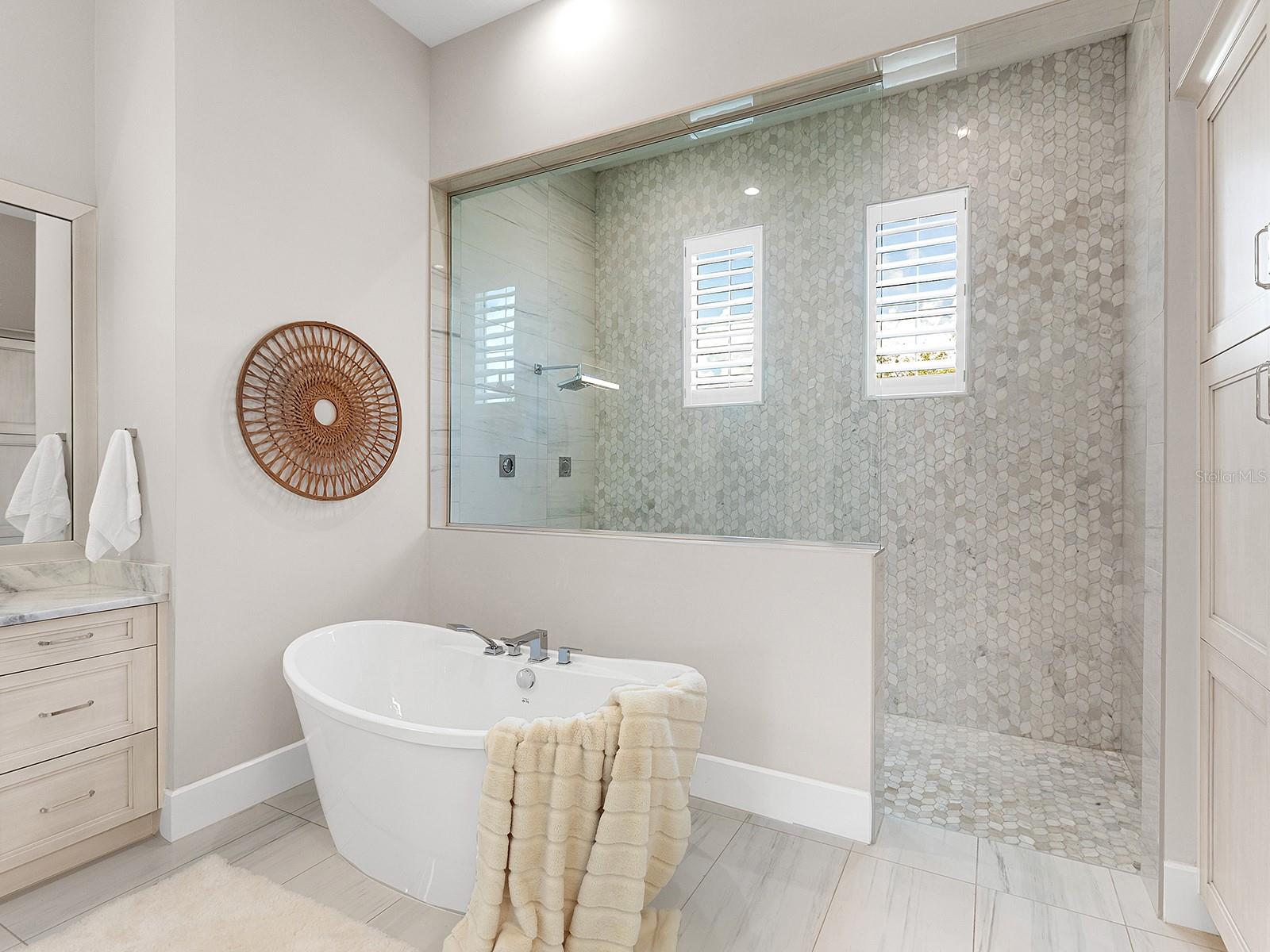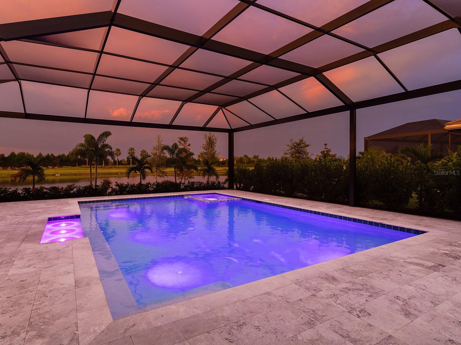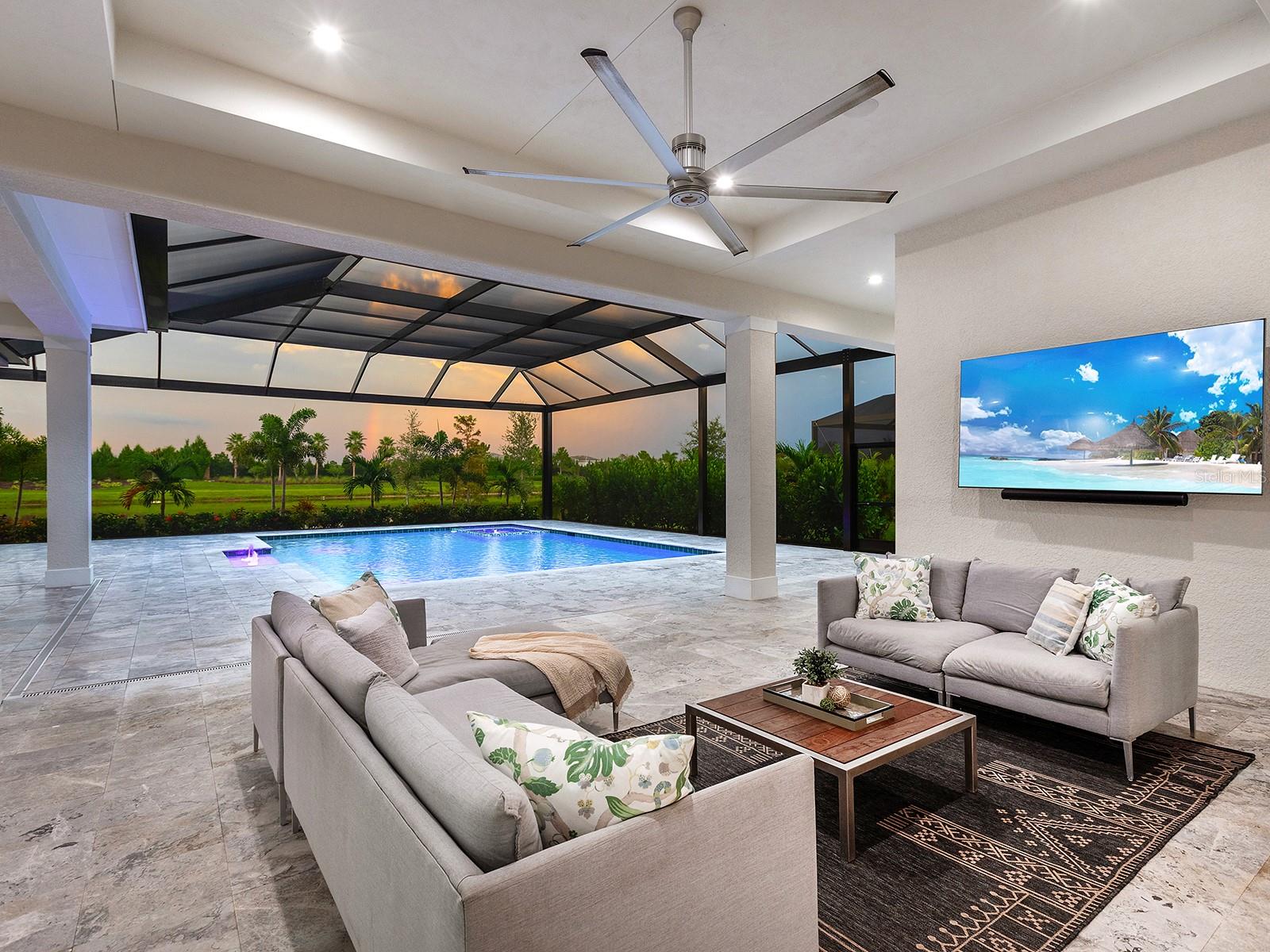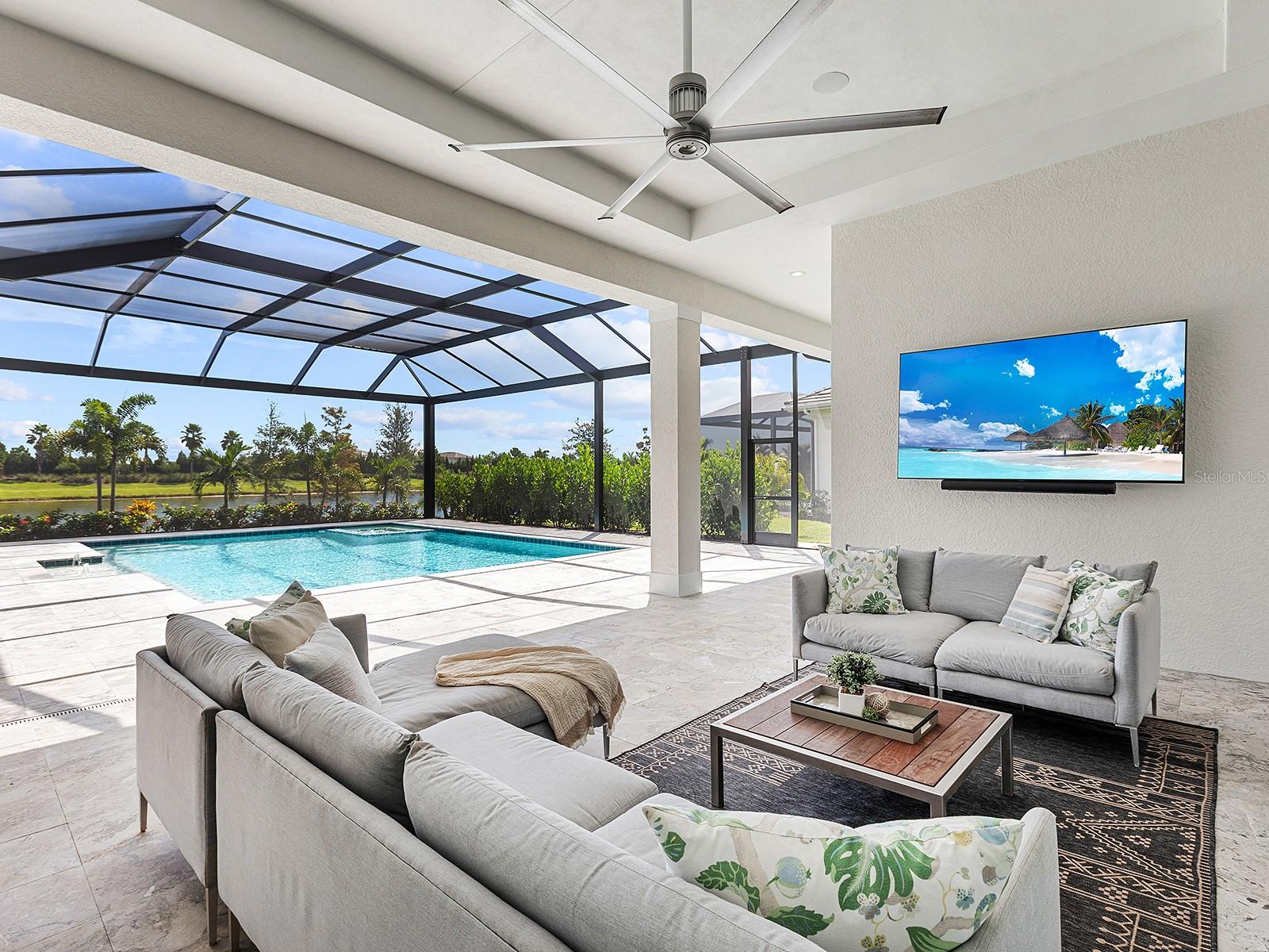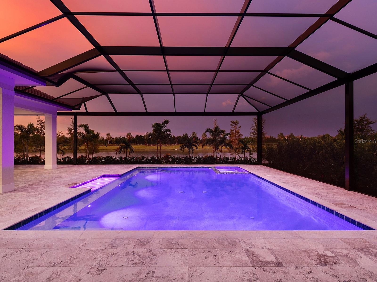 Welcome home to the ideal residence in The Lake Club with gorgeous private water views! One of the most desirable floor plans is this 2023 home offering a coveted separate casita guest house, plus a modern open plan, luxurious primary suite, 3 additional guest bedrooms all with private en-suite bathrooms, study, and expansive air-conditioned 3-car garage. The exterior invites you home with 2025 freshly painted exterior, updated lush landscaping, and wide driveway with parking pad. This residence is filled with clever upgrades that make daily life more enjoyable including IMPACT windows and sliders throughout, security camera system, Wi-Fi extenders, in-ceiling speakers, whole-house water filtration and softener system, Lutron lights, smart home systems, plantation shutters, and wood-look porcelain tile flooring throughout. The great room opens from the foyer with frosted impact glass front door straight onto the lanai through pocketing impact sliding glass doors, offering immediate views of the lake and greenspace beyond, plus a custom ceiling with hand-stained wood beams. The chef's kitchen offers impressive upgrades with an expanded island for extra seating, upscale quartzite counters, custom cabinetry, reverse osmosis, TWO custom walk-in pantries, and high-end appliance suite with 36" side-by-side Sub-Zero refrigerator and freezer, Bosch dishwasher, Wolf dual wall ovens, Wolf gas cooktop and Wolf microwave drawer. Enjoy meals in the dining room featuring a custom dry bar with wine refrigerator and disappearing corner impact sliders. This Florida home was made for an ideal indoor-outdoor entertaining lifestyle with covered dining and living areas on one of the largest lanais in the neighborhood at 3,382 SF. Relax under tray ceilings with oversized modern fans on the travertine lanai; lounge in the sunshine surrounded by the 2024 panoramic extra-strong stainless steel screen enclosure; or dine next to the outdoor kitchen complete with island, stone counters, reverse osmosis, and high-end appliances including Wolf grill, U-Line beverage refrigerator, separate ice maker and Bosch dishwasher. The sparkling saltwater pool is oversized, perfect for swimming laps or splashing in the afternoon, and features a sunken spa with spill-edge perfectly positioned to take in the lake views. Inside the owner's suite offers the ultimate relaxation with tray ceiling, seating area, French doors to the lanai with a porch area and two custom walk-in closets. The primary bathroom rivals a five-star hotel with separate vanities, large linen storage tower, water closet with Toto toilet, freestanding modern tub, walk-in shower with rainhead and 4 body sprayers. Guests will enjoy their own 3 bedrooms all with their own private and luxurious en-suite bathrooms. Plus the rear bedroom can be used as bonus room with a full pool bathroom for even more flexible spaces. The guest house casita is ideal for long-term guests, teens, live-in assistance, an in-law suite or a second office with a large studio bedroom, kitchenette wet bar, private lanai area and en-suite bathroom. Completing this residence is a private study, spacious laundry room with hidden ironing board and guest powder bathroom. The air-conditioned and insulated 3-car garage offers expanded room for cars and toys, 2 AC splitters, custom storage and a dual electric car charger. The Lake Club is an exclusive premier, gated community with a Grande Clubhouse, restaurant, pool, tennis, pickleball and more.