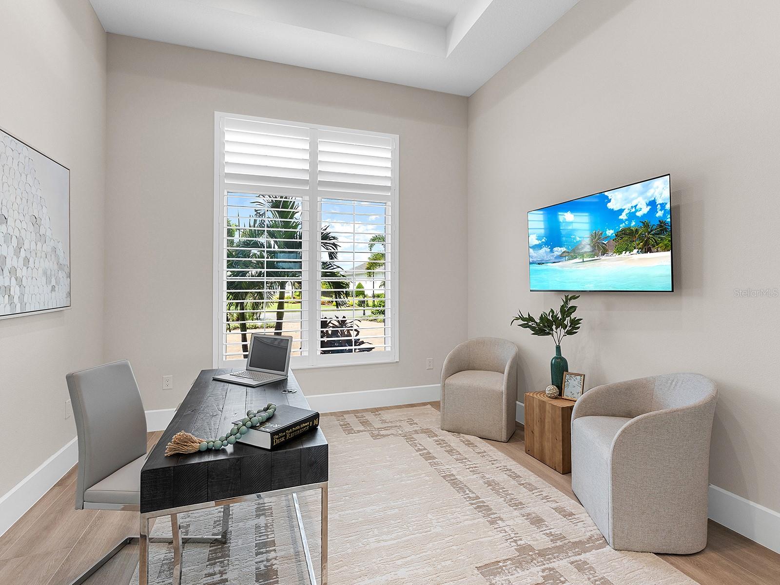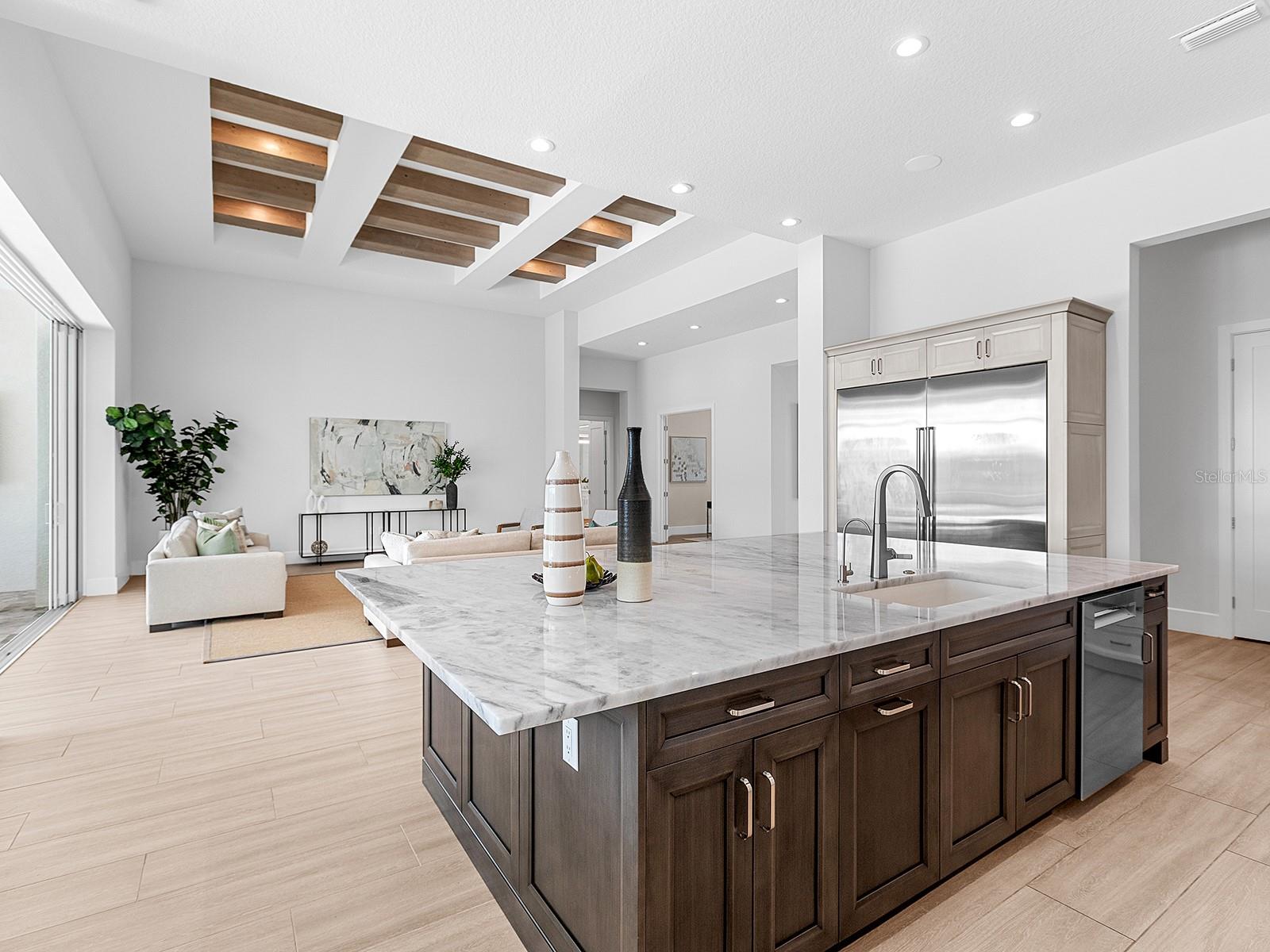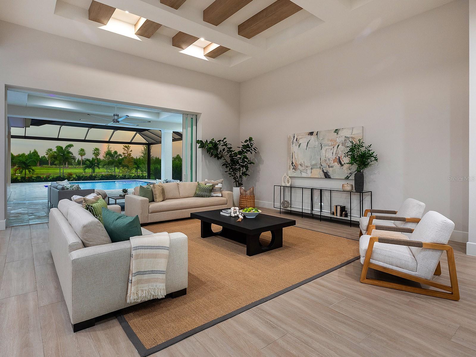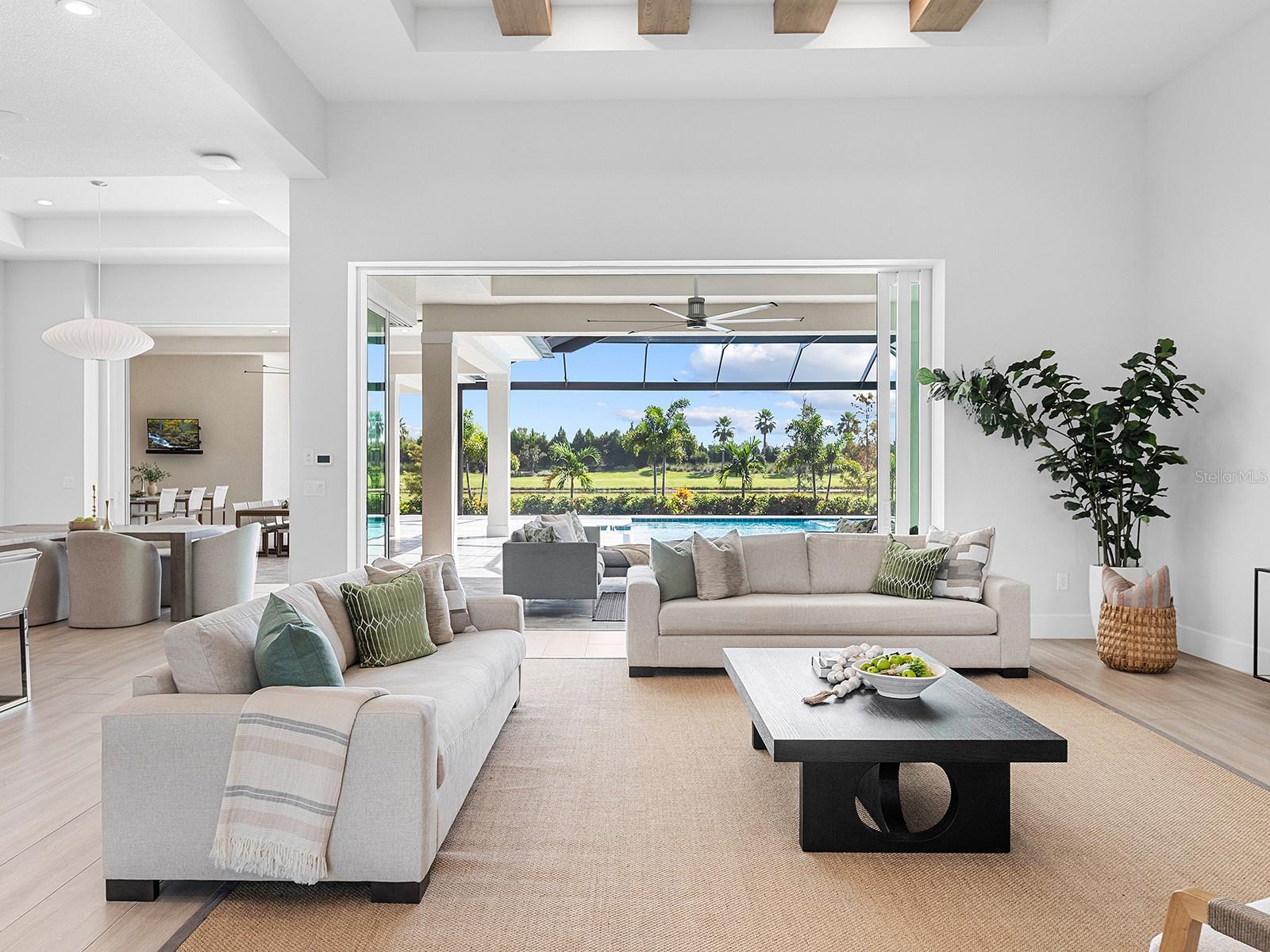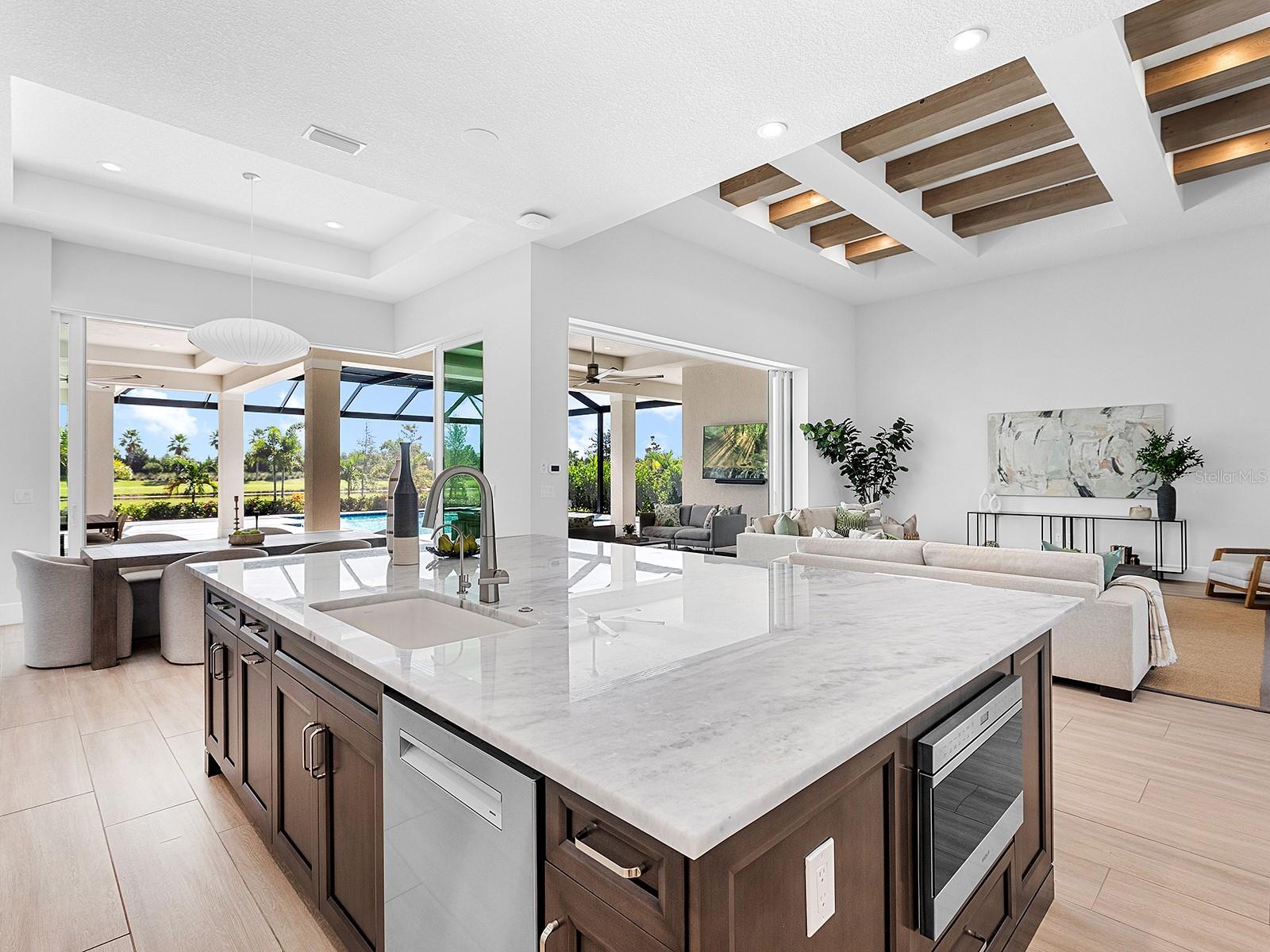 Welcome home to the ideal residence in The Lake Club with gorgeous private water views! One of the most desirable floor plans is this 2023 home offering a coveted separate casita guest house, plus a modern open plan, luxurious primary suite, 3 additional guest bedrooms all with private en-suite bathrooms, study, and expansive air-conditioned 3-car garage. The exterior invites you home with 2025 freshly painted exterior, updated lush landscaping, and wide driveway with parking pad. This residence is filled with clever upgrades that make daily life more enjoyable including IMPACT windows and sliders throughout, security camera system, Wi-Fi extenders, in-ceiling speakers, whole-house water filtration and softener system, Lutron lights, smart home systems, plantation shutters, and wood-look porcelain tile flooring throughout. The great room opens from the foyer with frosted impact glass front door straight onto the lanai through pocketing impact sliding glass doors, offering immediate views of the lake and greenspace beyond, plus a custom ceiling with hand-stained wood beams. The chef's kitchen offers impressive upgrades with an expanded island for extra seating, upscale quartzite counters, custom cabinetry, reverse osmosis, TWO custom walk-in pantries, and high-end appliance suite with 36" side-by-side Sub-Zero refrigerator and freezer, Bosch dishwasher, Wolf dual wall ovens, Wolf gas cooktop and Wolf microwave drawer. Enjoy meals in the dining room featuring a custom dry bar with wine refrigerator and disappearing corner impact sliders. This Florida home was made for an ideal indoor-outdoor entertaining lifestyle with covered dining and living areas on one of the largest lanais in the neighborhood at 3,382 SF. Relax under tray ceilings with oversized modern fans on the travertine lanai; lounge in the sunshine surrounded by the 2024 panoramic extra-strong stainless steel screen enclosure; or dine next to the outdoor kitchen complete with island, stone counters, reverse osmosis, and high-end appliances including Wolf grill, U-Line beverage refrigerator, separate ice maker and Bosch dishwasher. The sparkling saltwater pool is oversized, perfect for swimming laps or splashing in the afternoon, and features a sunken spa with spill-edge perfectly positioned to take in the lake views. Inside the owner's suite offers the ultimate relaxation with tray ceiling, seating area, French doors to the lanai with a porch area and two custom walk-in closets. The primary bathroom rivals a five-star hotel with separate vanities, large linen storage tower, water closet with Toto toilet, freestanding modern tub, walk-in shower with rainhead and 4 body sprayers. Guests will enjoy their own 3 bedrooms all with their own private and luxurious en-suite bathrooms. Plus the rear bedroom can be used as bonus room with a full pool bathroom for even more flexible spaces. The guest house casita is ideal for long-term guests, teens, live-in assistance, an in-law suite or a second office with a large studio bedroom, kitchenette wet bar, private lanai area and en-suite bathroom. Completing this residence is a private study, spacious laundry room with hidden ironing board and guest powder bathroom. The air-conditioned and insulated 3-car garage offers expanded room for cars and toys, 2 AC splitters, custom storage and a dual electric car charger. The Lake Club is an exclusive premier, gated community with a Grande Clubhouse, restaurant, pool, tennis, pickleball and more.