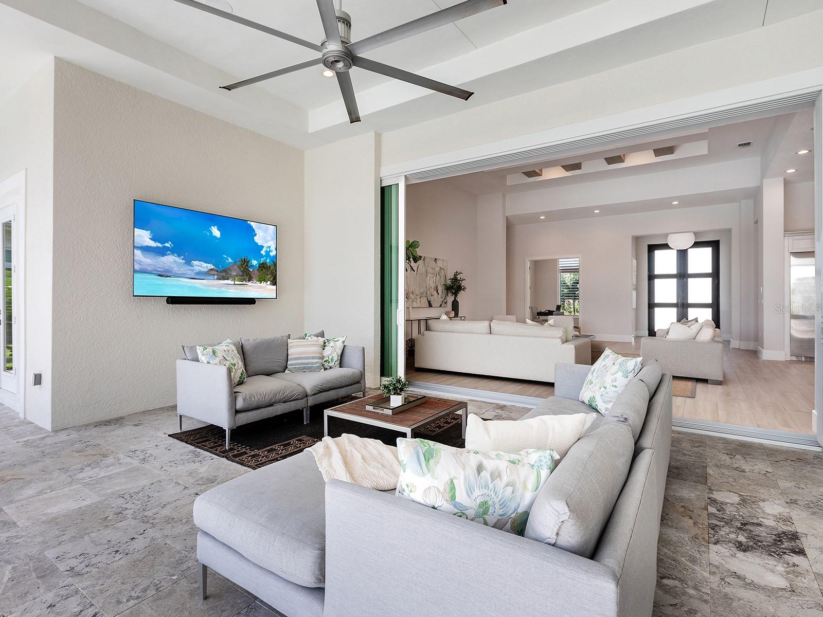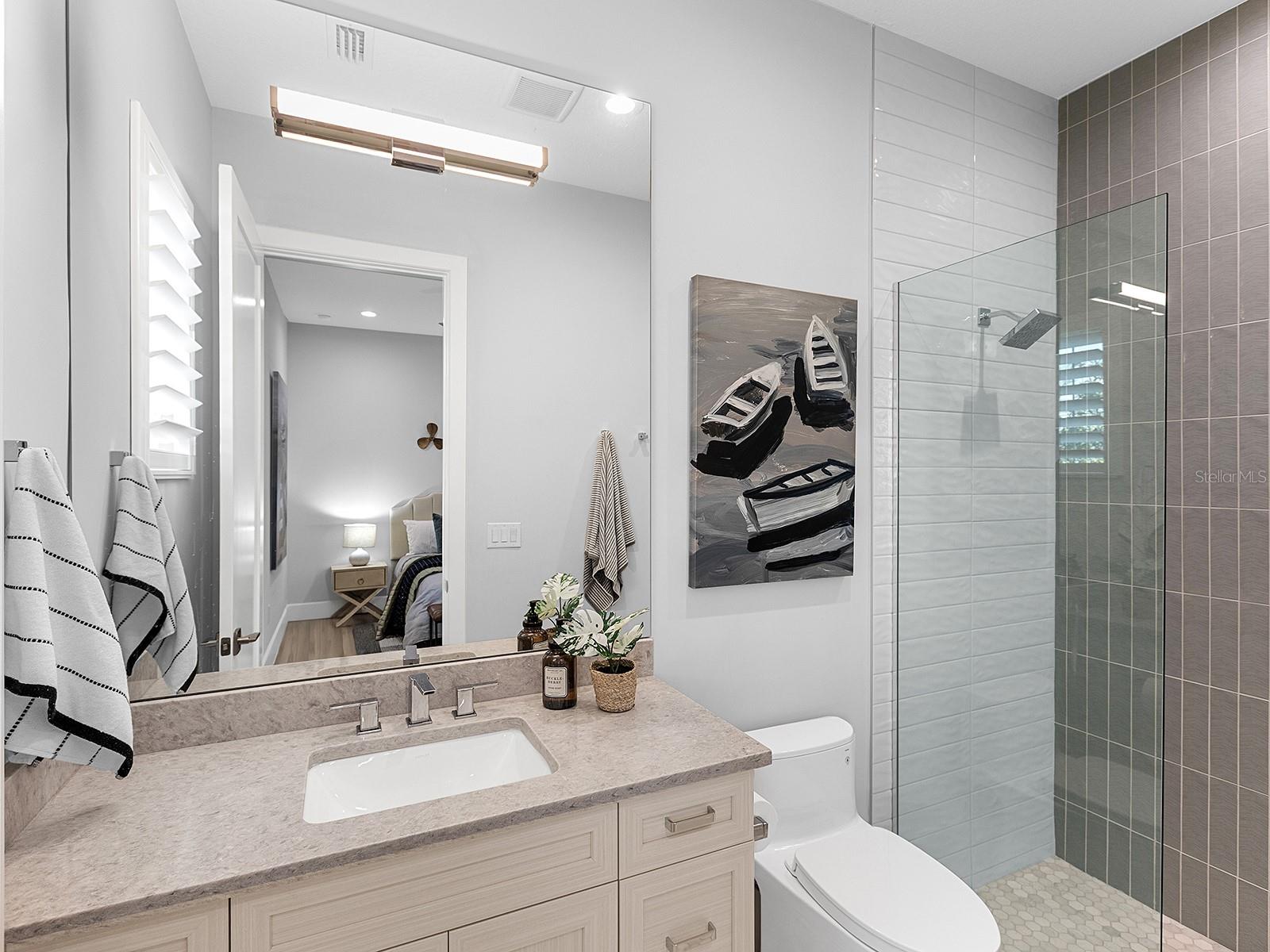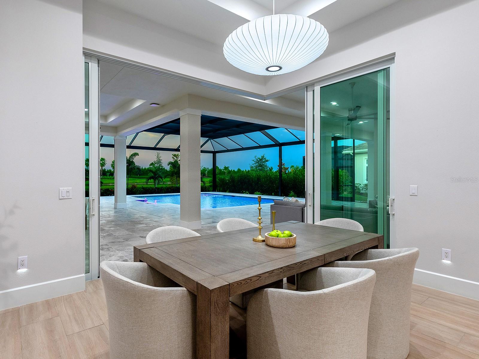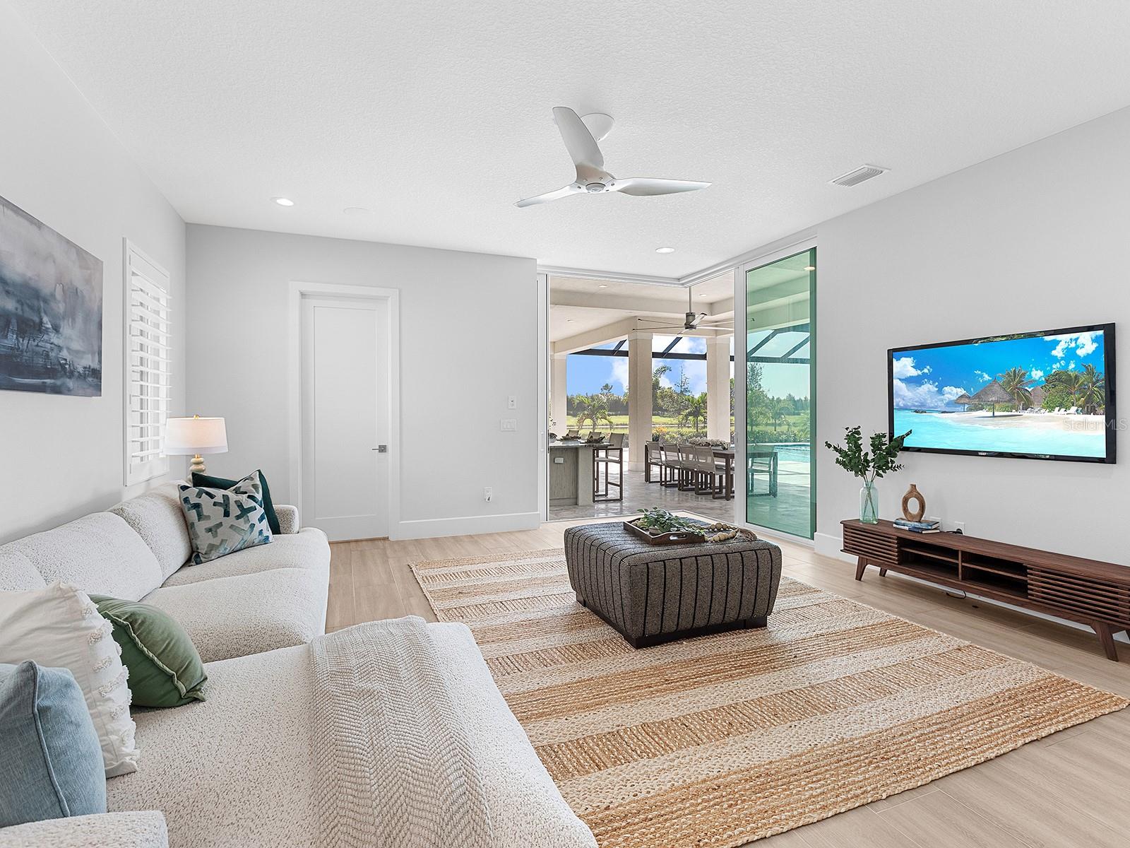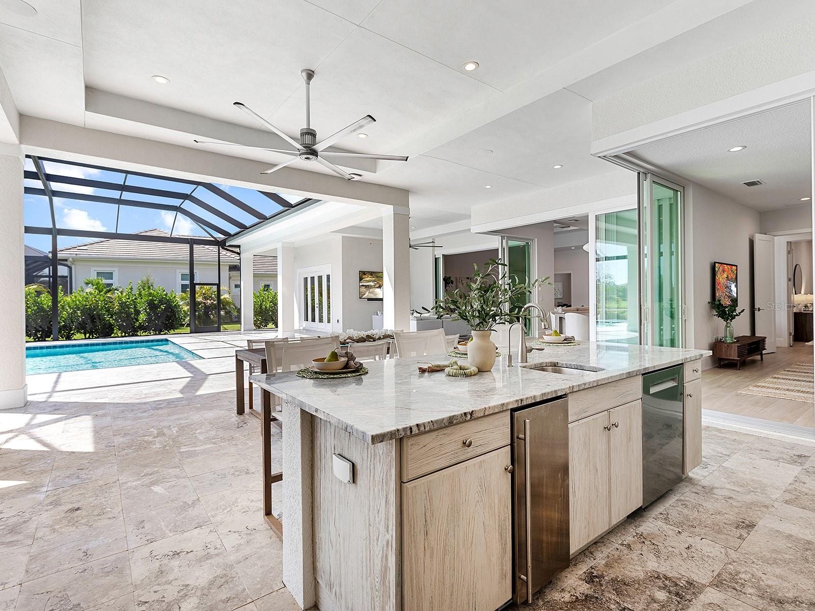 Welcome home to the ideal residence in The Lake Club with gorgeous private water views! One of the most desirable floor plans is this 2023 home offering a coveted separate casita guest house, plus a modern open plan, luxurious primary suite, 3 additional guest bedrooms all with private en-suite bathrooms, study, and expansive air-conditioned 3-car garage. The exterior invites you home with 2025 freshly painted exterior, updated lush landscaping, and wide driveway with parking pad. This residence is filled with clever upgrades that make daily life more enjoyable including IMPACT windows and sliders throughout, security camera system, Wi-Fi extenders, in-ceiling speakers, whole-house water filtration and softener system, Lutron lights, smart home systems, plantation shutters, and wood-look porcelain tile flooring throughout. The great room opens from the foyer with frosted impact glass front door straight onto the lanai through pocketing impact sliding glass doors, offering immediate views of the lake and greenspace beyond, plus a custom ceiling with hand-stained wood beams. The chef's kitchen offers impressive upgrades with an expanded island for extra seating, upscale quartzite counters, custom cabinetry, reverse osmosis, TWO custom walk-in pantries, and high-end appliance suite with 36" side-by-side Sub-Zero refrigerator and freezer, Bosch dishwasher, Wolf dual wall ovens, Wolf gas cooktop and Wolf microwave drawer. Enjoy meals in the dining room featuring a custom dry bar with wine refrigerator and disappearing corner impact sliders. This Florida home was made for an ideal indoor-outdoor entertaining lifestyle with covered dining and living areas on one of the largest lanais in the neighborhood at 3,382 SF. Relax under tray ceilings with oversized modern fans on the travertine lanai; lounge in the sunshine surrounded by the 2024 panoramic extra-strong stainless steel screen enclosure; or dine next to the outdoor kitchen complete with island, stone counters, reverse osmosis, and high-end appliances including Wolf grill, U-Line beverage refrigerator, separate ice maker and Bosch dishwasher. The sparkling saltwater pool is oversized, perfect for swimming laps or splashing in the afternoon, and features a sunken spa with spill-edge perfectly positioned to take in the lake views. Inside the owner's suite offers the ultimate relaxation with tray ceiling, seating area, French doors to the lanai with a porch area and two custom walk-in closets. The primary bathroom rivals a five-star hotel with separate vanities, large linen storage tower, water closet with Toto toilet, freestanding modern tub, walk-in shower with rainhead and 4 body sprayers. Guests will enjoy their own 3 bedrooms all with their own private and luxurious en-suite bathrooms. Plus the rear bedroom can be used as bonus room with a full pool bathroom for even more flexible spaces. The guest house casita is ideal for long-term guests, teens, live-in assistance, an in-law suite or a second office with a large studio bedroom, kitchenette wet bar, private lanai area and en-suite bathroom. Completing this residence is a private study, spacious laundry room with hidden ironing board and guest powder bathroom. The air-conditioned and insulated 3-car garage offers expanded room for cars and toys, 2 AC splitters, custom storage and a dual electric car charger. The Lake Club is an exclusive premier, gated community with a Grande Clubhouse, restaurant, pool, tennis, pickleball and more.