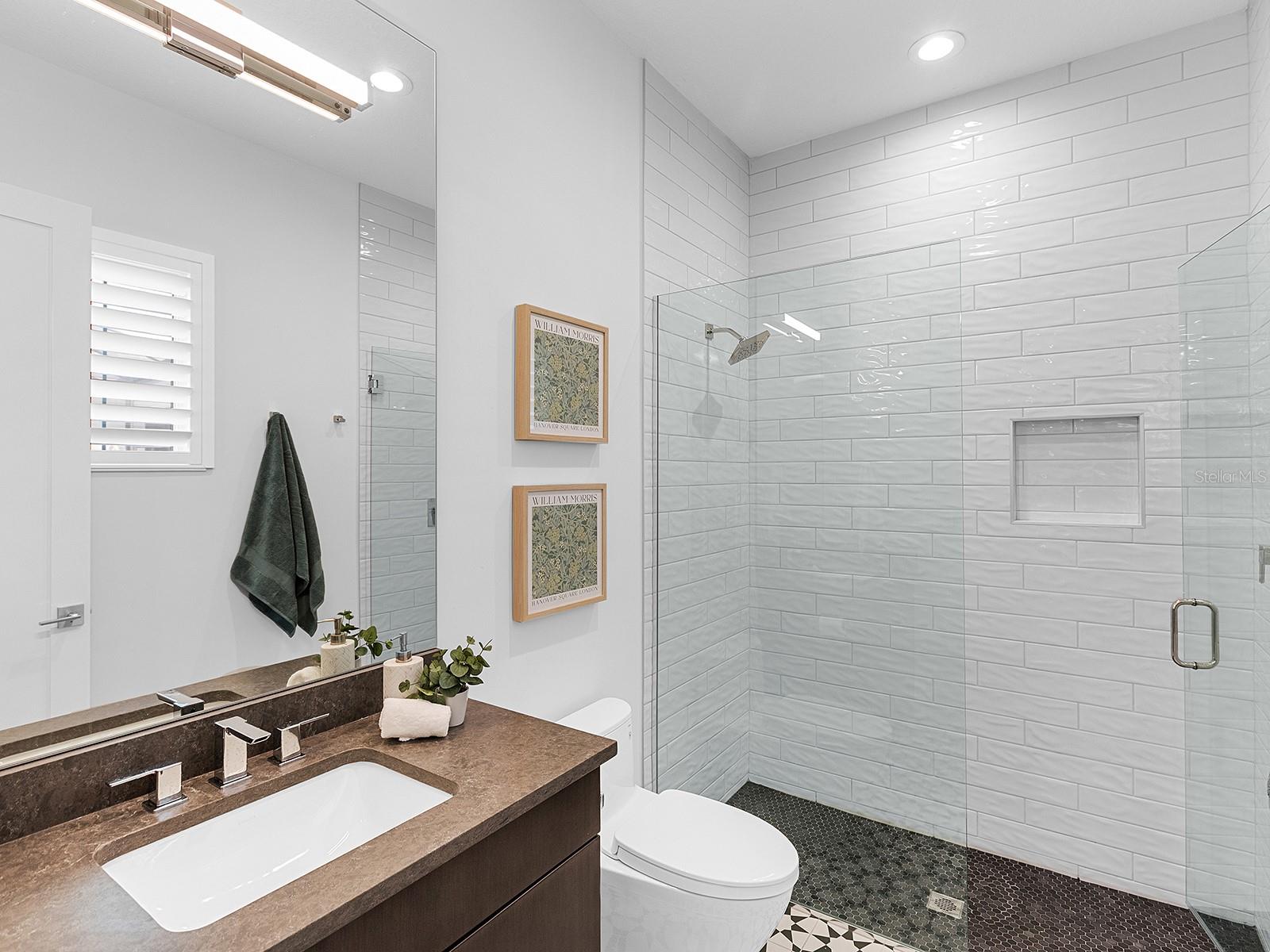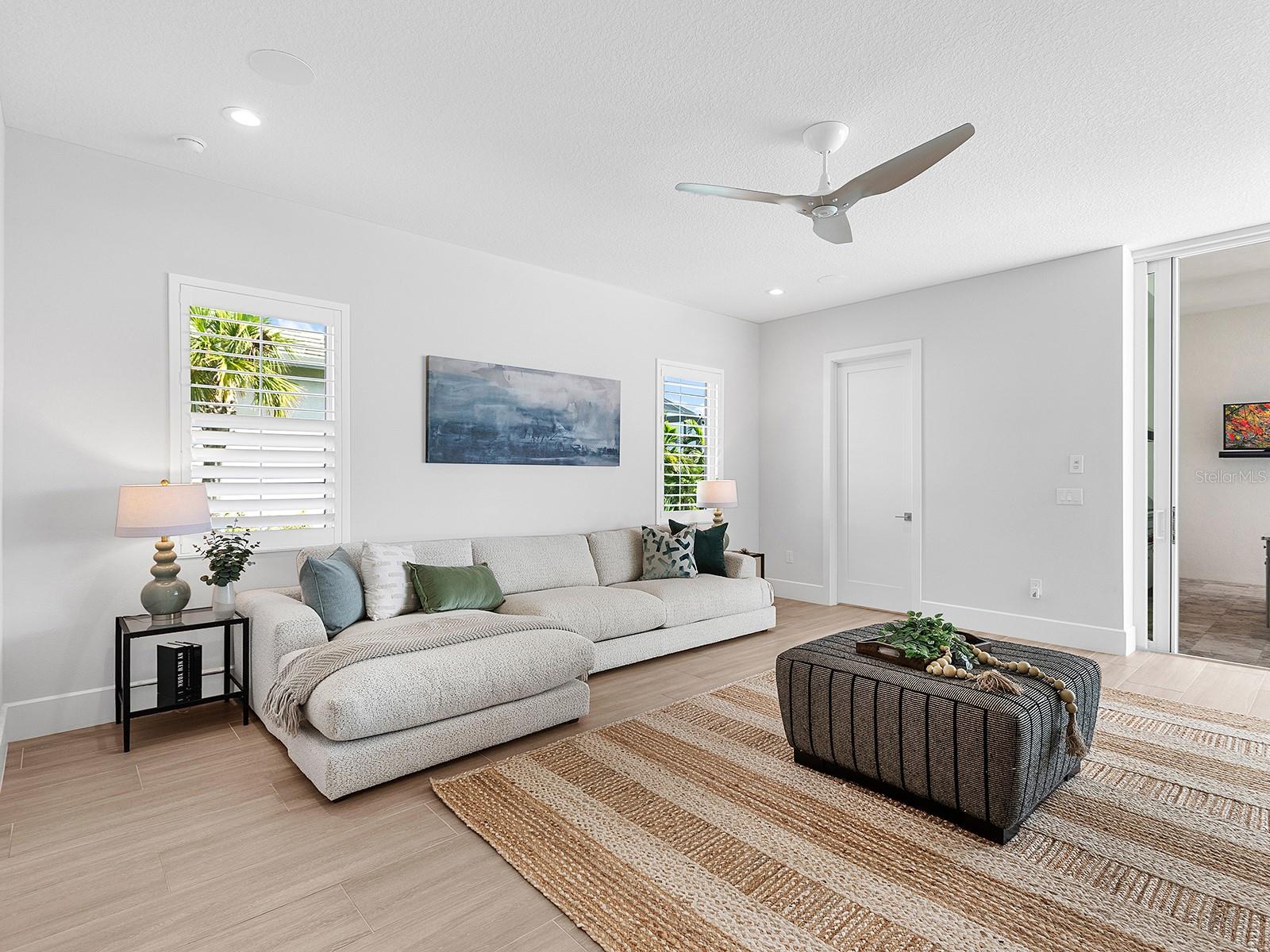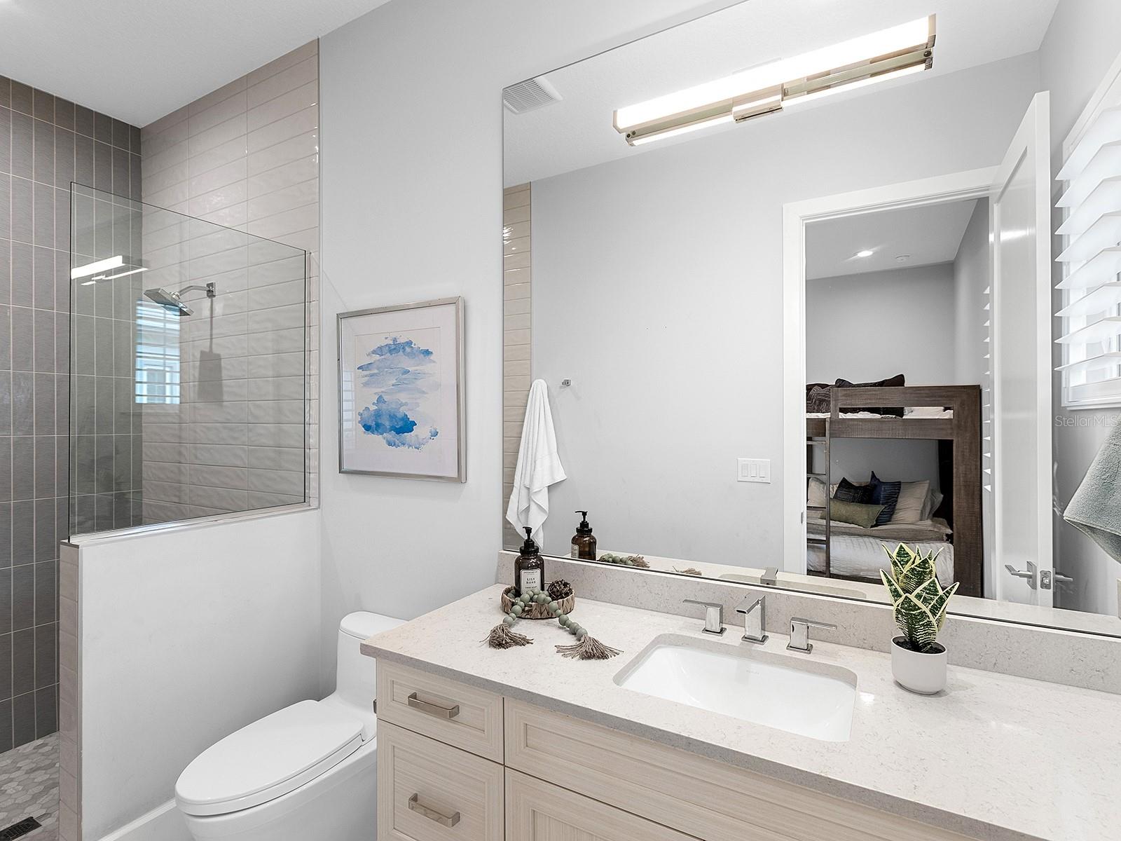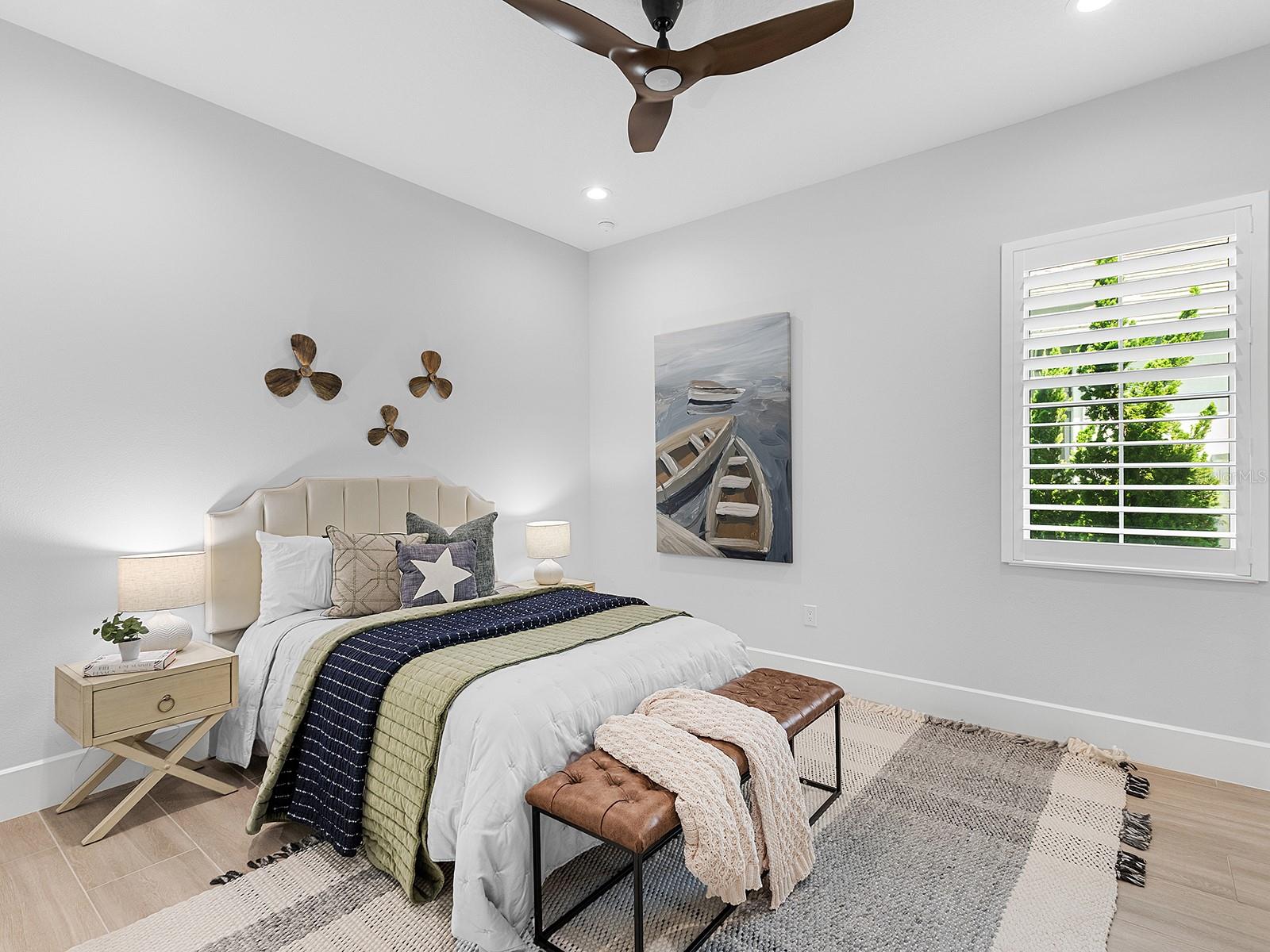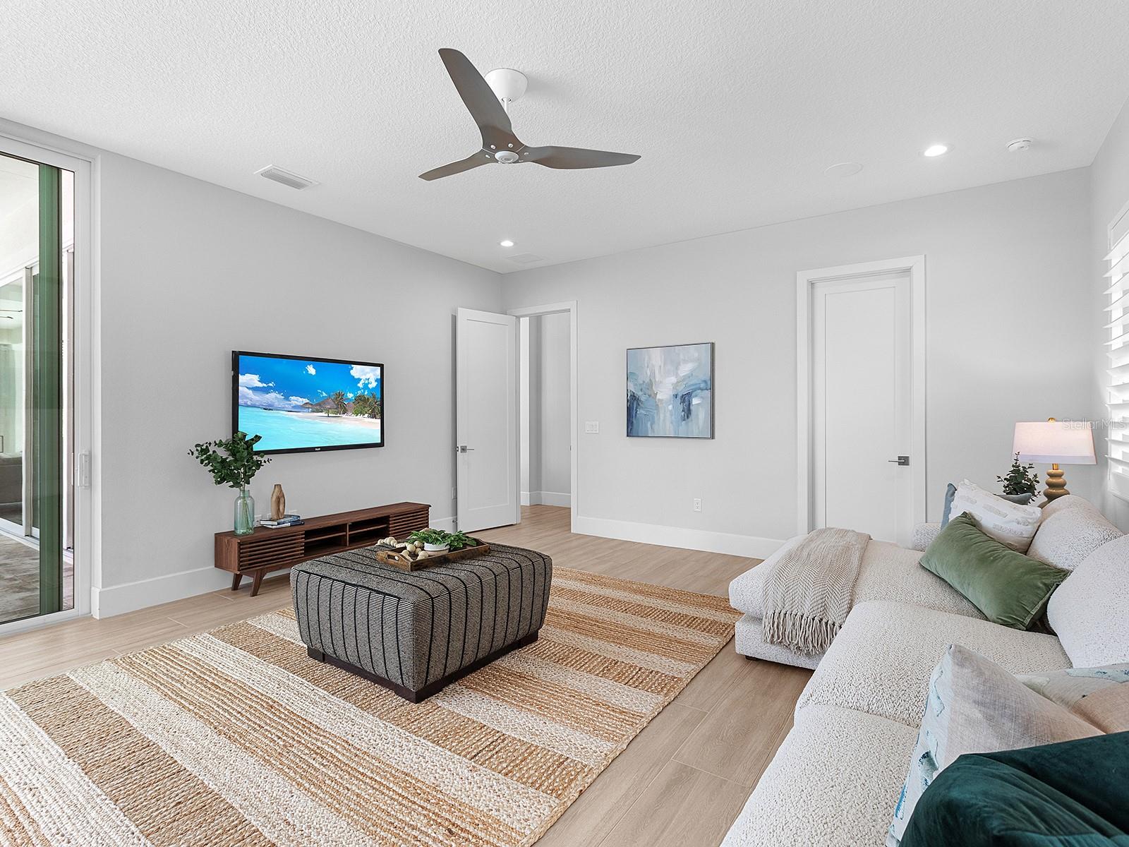 Welcome home to the ideal residence in The Lake Club with gorgeous private water views! One of the most desirable floor plans is this 2023 home offering a coveted separate casita guest house, plus a modern open plan, luxurious primary suite, 3 additional guest bedrooms all with private en-suite bathrooms, study, and expansive air-conditioned 3-car garage. The exterior invites you home with 2025 freshly painted exterior, updated lush landscaping, and wide driveway with parking pad. This residence is filled with clever upgrades that make daily life more enjoyable including IMPACT windows and sliders throughout, security camera system, Wi-Fi extenders, in-ceiling speakers, whole-house water filtration and softener system, Lutron lights, smart home systems, plantation shutters, and wood-look porcelain tile flooring throughout. The great room opens from the foyer with frosted impact glass front door straight onto the lanai through pocketing impact sliding glass doors, offering immediate views of the lake and greenspace beyond, plus a custom ceiling with hand-stained wood beams. The chef's kitchen offers impressive upgrades with an expanded island for extra seating, upscale quartzite counters, custom cabinetry, reverse osmosis, TWO custom walk-in pantries, and high-end appliance suite with 36" side-by-side Sub-Zero refrigerator and freezer, Bosch dishwasher, Wolf dual wall ovens, Wolf gas cooktop and Wolf microwave drawer. Enjoy meals in the dining room featuring a custom dry bar with wine refrigerator and disappearing corner impact sliders. This Florida home was made for an ideal indoor-outdoor entertaining lifestyle with covered dining and living areas on one of the largest lanais in the neighborhood at 3,382 SF. Relax under tray ceilings with oversized modern fans on the travertine lanai; lounge in the sunshine surrounded by the 2024 panoramic extra-strong stainless steel screen enclosure; or dine next to the outdoor kitchen complete with island, stone counters, reverse osmosis, and high-end appliances including Wolf grill, U-Line beverage refrigerator, separate ice maker and Bosch dishwasher. The sparkling saltwater pool is oversized, perfect for swimming laps or splashing in the afternoon, and features a sunken spa with spill-edge perfectly positioned to take in the lake views. Inside the owner's suite offers the ultimate relaxation with tray ceiling, seating area, French doors to the lanai with a porch area and two custom walk-in closets. The primary bathroom rivals a five-star hotel with separate vanities, large linen storage tower, water closet with Toto toilet, freestanding modern tub, walk-in shower with rainhead and 4 body sprayers. Guests will enjoy their own 3 bedrooms all with their own private and luxurious en-suite bathrooms. Plus the rear bedroom can be used as bonus room with a full pool bathroom for even more flexible spaces. The guest house casita is ideal for long-term guests, teens, live-in assistance, an in-law suite or a second office with a large studio bedroom, kitchenette wet bar, private lanai area and en-suite bathroom. Completing this residence is a private study, spacious laundry room with hidden ironing board and guest powder bathroom. The air-conditioned and insulated 3-car garage offers expanded room for cars and toys, 2 AC splitters, custom storage and a dual electric car charger. The Lake Club is an exclusive premier, gated community with a Grande Clubhouse, restaurant, pool, tennis, pickleball and more.
