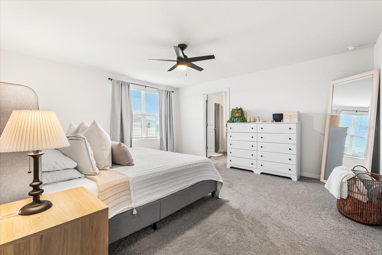 Welcome to this beautiful 3-bedroom, 2.5-bath home located in the sought-after Evergreen community. The first floor features a spacious, open-concept layout with a great room, dining area, and kitchen--perfect for everyday living and entertaining. The kitchen includes ample storage, a walk-in pantry, and easy access to the main living areas. Upstairs, you'll find a versatile bonus room, two guest bedrooms, a full guest bathroom, and a conveniently located laundry room. The large primary suite offers a walk-in closet and a private ensuite bathroom with a generous vanity. Enjoy outdoor living in the fully fenced, oversized backyard--perfect for relaxing or hosting gatherings. A 2-car garage provides plenty of space for parking and storage. Community amenities include a large swimming pool and a covered pavilion ideal for entertaining or connecting with neighbors. Don't miss your chance to own this well-maintained home in a welcoming neighborhood!