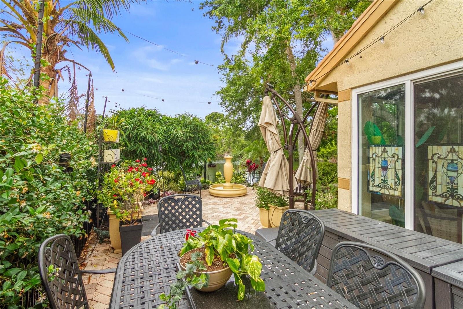 Welcome to this stunning upgraded gated community townhouse close to IMG Academy - where luxury, comfort and style come together in perfect harmony. From the moment you step inside, you'll be captivated by the rich hardwood floors, elegant Hunter Douglas window treatments and sophisticated louvered doors that enhance every room. The heart of the home is a chef's dream: a custom designed kitchen with premium cabinetry, sleek Carrera marble countertops, and top of the line appliances - ideal for both everyday living and effortless entertaining. This beautifully appointed three-bedroom, two-bath residence offers thoughtfully updated bathrooms featuring Kohler fixtures and timeless design. The spacious primary suite is located on the main level, offering tranquil pond views and direct access to lush, mature landscaping. Step outside to your private paved oasis featuring pond views, fountain and a firepit, perfect for unwinding or hosting guests in style. The home has a new HVAC (2025), PGT hurricane windows, 2018 tile roof and underlayment, expanded sunroom, 2 car driveway, recessed lighting, fans and much much more. The community features a clubhouse, two pools and tennis courts for you to enjoy. Fantastic location just minutes from IMG Academy, IMG Golf and Country Club, restaurants and shopping. Short drive to downtown Sarasota and beautiful Anna Marie Island beaches.