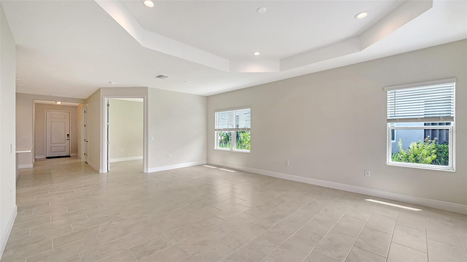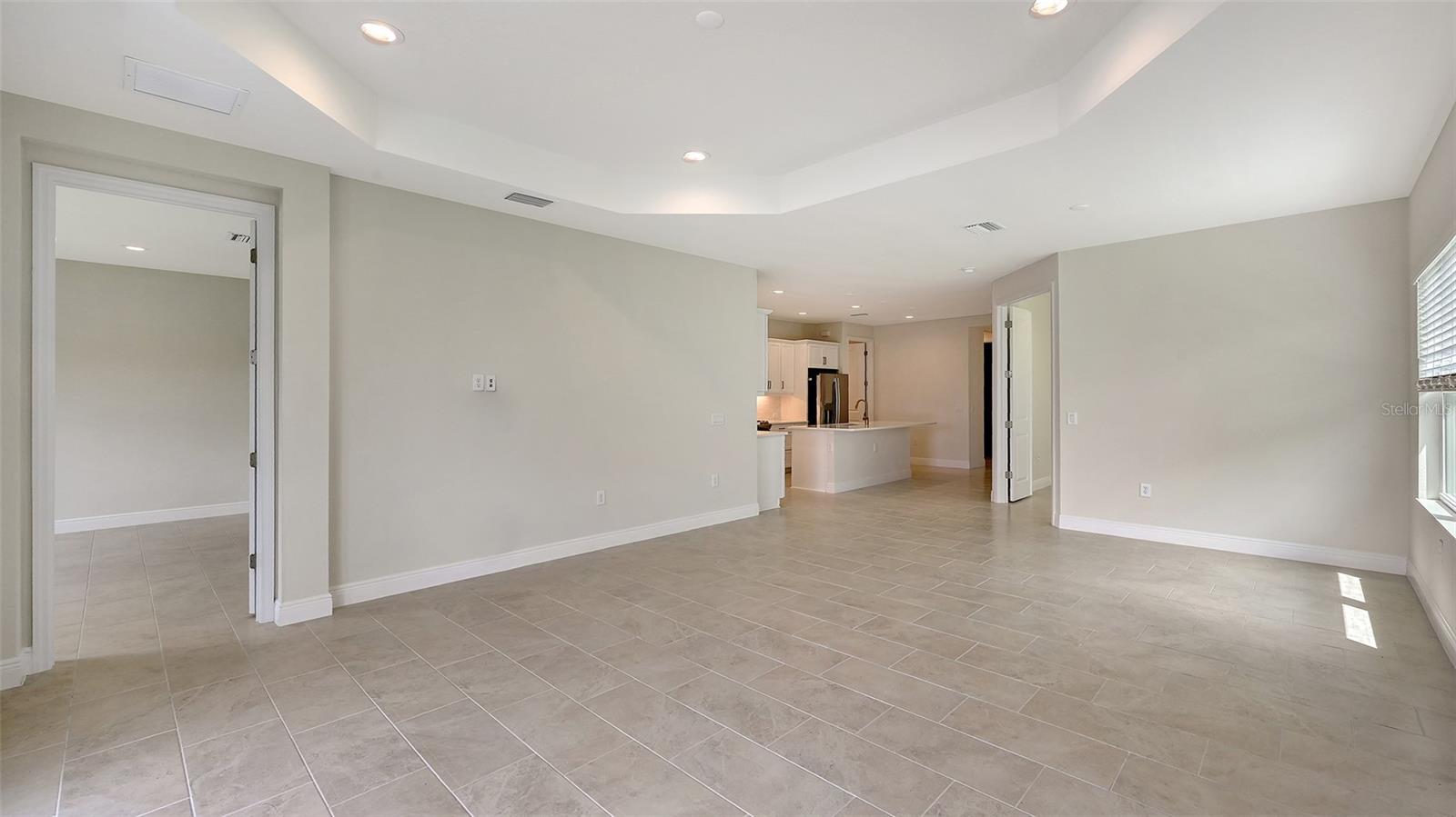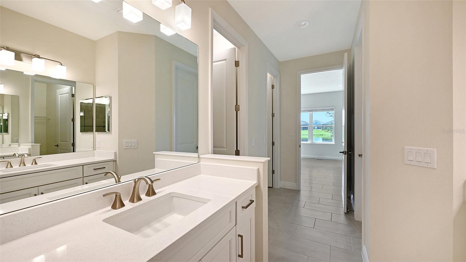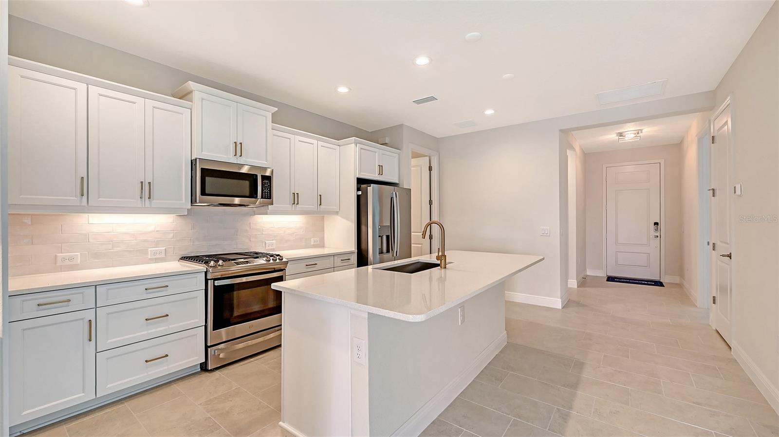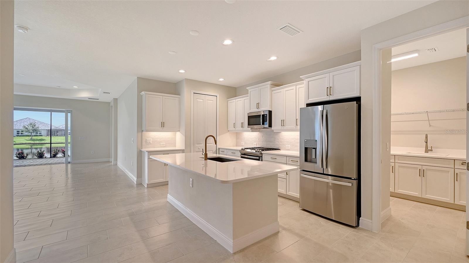 Step into this beautifully designed Sandcastle 2 home, where spacious living meets modern comfort. Featuring wood-look tile flooring throughout, 8' interior doors, and soaring 9'4" ceilings, this home feels open, bright, and welcoming.The upgraded kitchen is a true centerpiece, complete with white cabinetry, quartz countertops, and a large island--ideal for entertaining guests or enjoying family gatherings.A pocket sliding glass door fully opens the great room to a covered, screened lanai, blending indoor and outdoor living. Retreat to the private master suite, which boasts a large walk-in closet and split vanities for added convenience. Enjoy peace of mind with impact windows and smart home features, plus low-maintenance living with lawn care and community amenities included in the low HOA fee.Located in Grand Palm, a resort-style, amenity-rich, natural gas community, just minutes from Downtown Venice, Wellen Park, gorgeous Gulf Coast beaches, and I-75--this home offers both luxury and location.