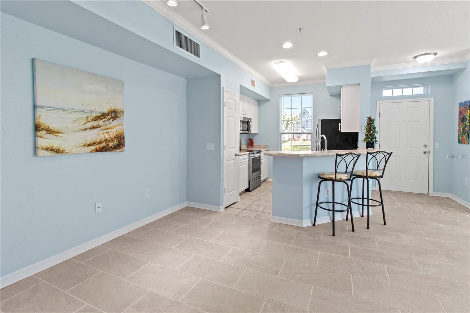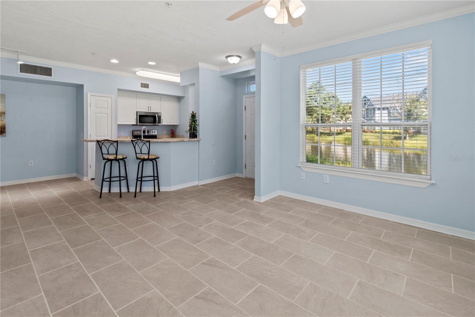 This first floor, waterfront 2bed/ 2bath condo offers peaceful views, a new kitchen with new 36" tall wall cabinets, new microwave, new dishwasher and new countertop. The new stainless-steel sink is deep and offers a drinking water faucet and a Reverse Osmosis water purification system. This remodeled property features modern 12"x24" porcelain tile floors in most rooms and low VOC paint in walls. The bedrooms have spacious ensuite bathrooms with tub/shower combination- one of them has a guest door access. Both bedrooms have spacious walk-in closets.This end unit has lots of light and offers nice views of the pond and the fountain There is plenty of storage, and the laundry closet with Washer and Dryer is spacious. Given all condominium options offered now for sale in the $200,000-$250,000 price range in Sarasota, you must consider purchasing a condo like this one built in 2002 that offers Hurricane proof window, an emergency fire sprinkler system, updated walls and a 2017 installed roof with secondary water barrier that will result in more security and lower insurance premiums compared to most condos built in the 70's or 80's that may have no hurricane proof window, old plumbing and/or no electrical updates and lack emergency fire sprinkler systems that may save your property and dwellers from a fire. It is important to note that this community is not required to perform the milestone inspection required by the Florida Milestone Inspection law that causes higher condo expenses over the years.It is great to live in Admirals Walk where the association allows up to 2 pets up to 60lb each and has on-site management. The very spacious club-house offers a billiard/card room, a social space with a great fireplace and a spacious kitchen that can be reserved for parties. There is an exercise room with equipment and also a hot-tub and a heated pool. The community is gated for further privacy and protection.World Famous Siesta Beach is only 7.3 miles away; Crescent Beach is only 5.5 miles away. Access to I-75 is 1 mile away. There are many restaurants and other services within a one-mile ratio. There is a bus stop right outside the community.Whether you purchase to live here or to rent out this place, you will be happy with your decision. Contact agent for showing A.S.A.P.
