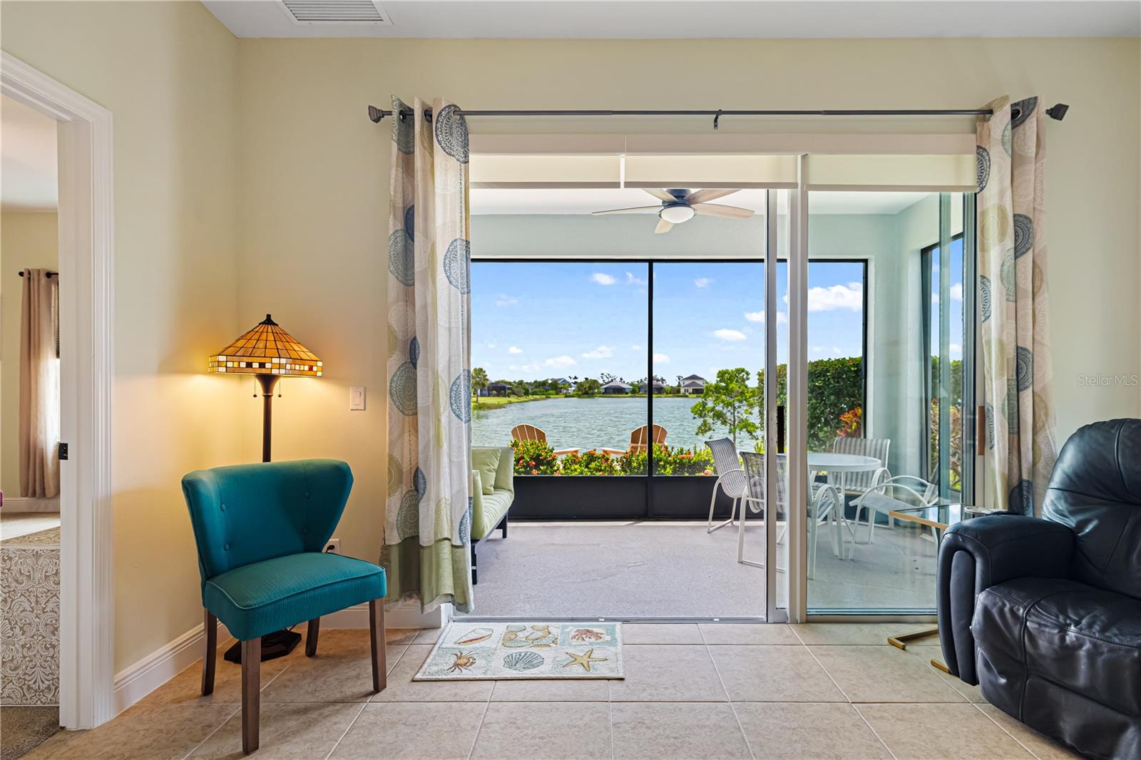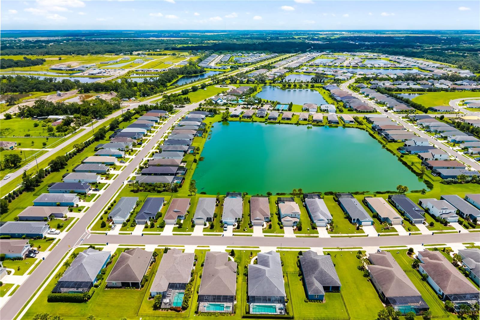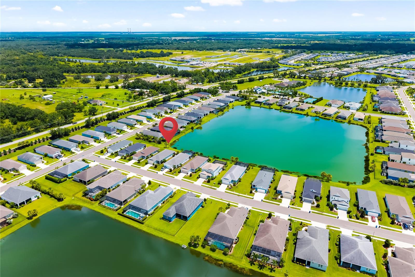 Welcome to your dream waterfront home in the highly sought-after community of Canoe Creek! This stunning 3 bedroom home, complete with a private office/den, offers a perfect blend of style and comfort. Step inside to an open, light-filled floor plan featuring tile floors throughout the main living areas and expansive water views that set the tone for relaxation. The upscale kitchen is designed for both cooking and entertaining, with a large center island, granite counters, stainless appliances, and a seamless connection to the living room--perfect for hosting friends and family. The oversized primary suite is a true sanctuary, showcasing tranquil water views, dual sinks, a walk-in tile shower, and a spacious walk-in closet. Two additional bedrooms are located at the front of the home, each with its own walk-in closet and easy access to a full bathroom. Step outside through sliding glass doors to your private screened lanai and extended custom stamped-concrete patio. This outdoor oasis is ideal for dining, lounging in the sunshine, or simply taking in the breathtaking distant lake views. Few more features include oversized two-car garage with extra storage space, epoxy flooring on front and rear patios, electronic roller shades, and much more. Canoe Creek has a resort-style pool, clubhouse, fitness center, dog park, tennis & pickleball courts, and a vibrant community spirit, all with low HOA fees. Perfectly situated near I-75, shopping, dining, and just minutes from Parrish, Lakewood Ranch, and beyond, this home offers both convenience and an incredible lifestyle. Schedule your private showing today and start living the waterfront life you've always dreamed of!