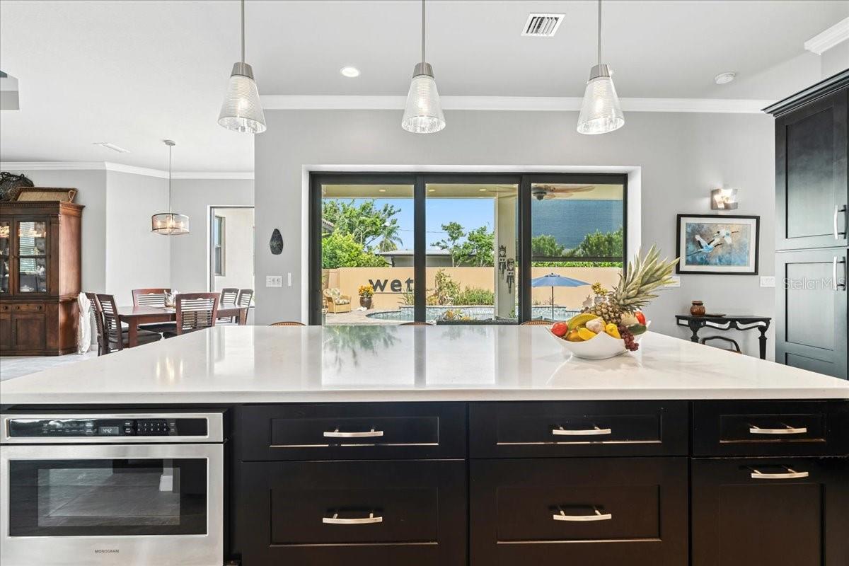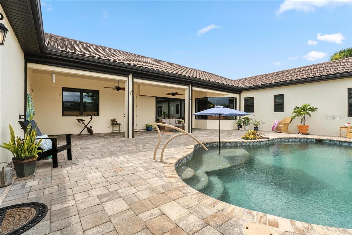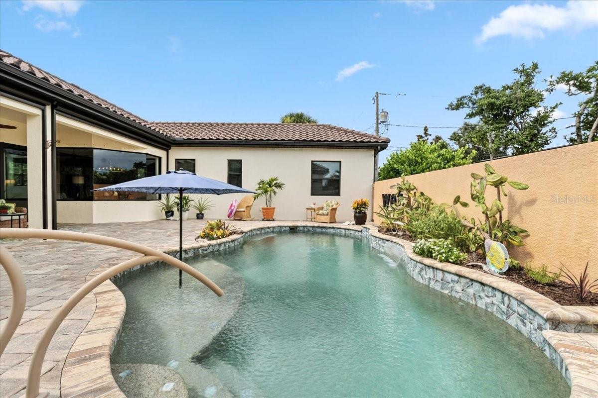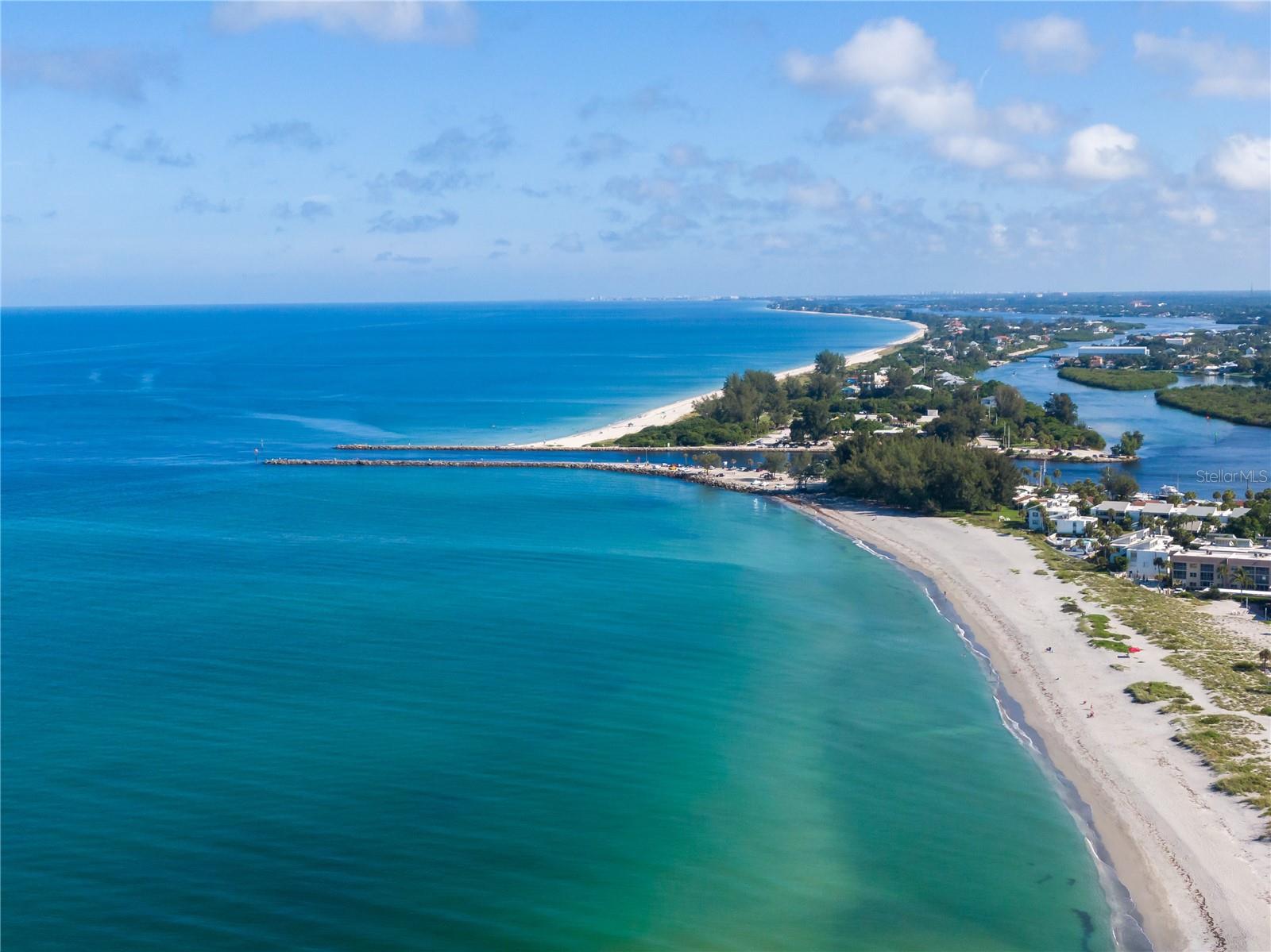 Custom-Built Island Home - Florida Living at Its Finest!Built in 2019 to current codes, this beautifully designed island residence is ideally located between the Gulf of Mexico and the Intracoastal Waterway, just minutes from beaches, boating, dining, and entertainment. NO flood insurance required and LOW homeowners insurance.The open-concept floor plan features 10' tray ceilings, crown molding, and porcelain tile throughout. The gourmet kitchen boasts solid wood cabinetry with pull-out shelving, soft-close features and under-cabinet lighting. A spacious quartz island has seating for four, a microwave drawer, and additional storage. Pocketing sliders connect the living space to a large lanai with motorized retractable screens and a heated saltwater pool, perfect for indoor/outdoor living.The main home offers two split bedrooms, each with an ensuite bath and solid-core doors for privacy. The primary suite features dual walk-in closets. A dedicated office includes built-in file cabinets and a quartz work surface. The self-contained casita offers a third bedroom with full bath, walk-in shower, Large closet, and pool access--ideal for guests or extended family.Additional highlights include: Three-zone HVAC Whole-house surge protection Ceiling fans throughout, including the lanai Heated 10,000-gallon saltwater pool with sun shelf, umbrella port, and child-safety alarm Hurricane-rated windows, blown-in attic insulation, and barrel tile roof Oversized 2-car garage with utility sink Laundry room with cabinets, quartz countertop, and sink Existing Irrigation wellWalk or bike to multiple beaches with free parking, or enjoy nearby restaurants, golf, shopping, and entertainment. This is your chance to own a move-in ready, meticulously maintained island home in paradise!