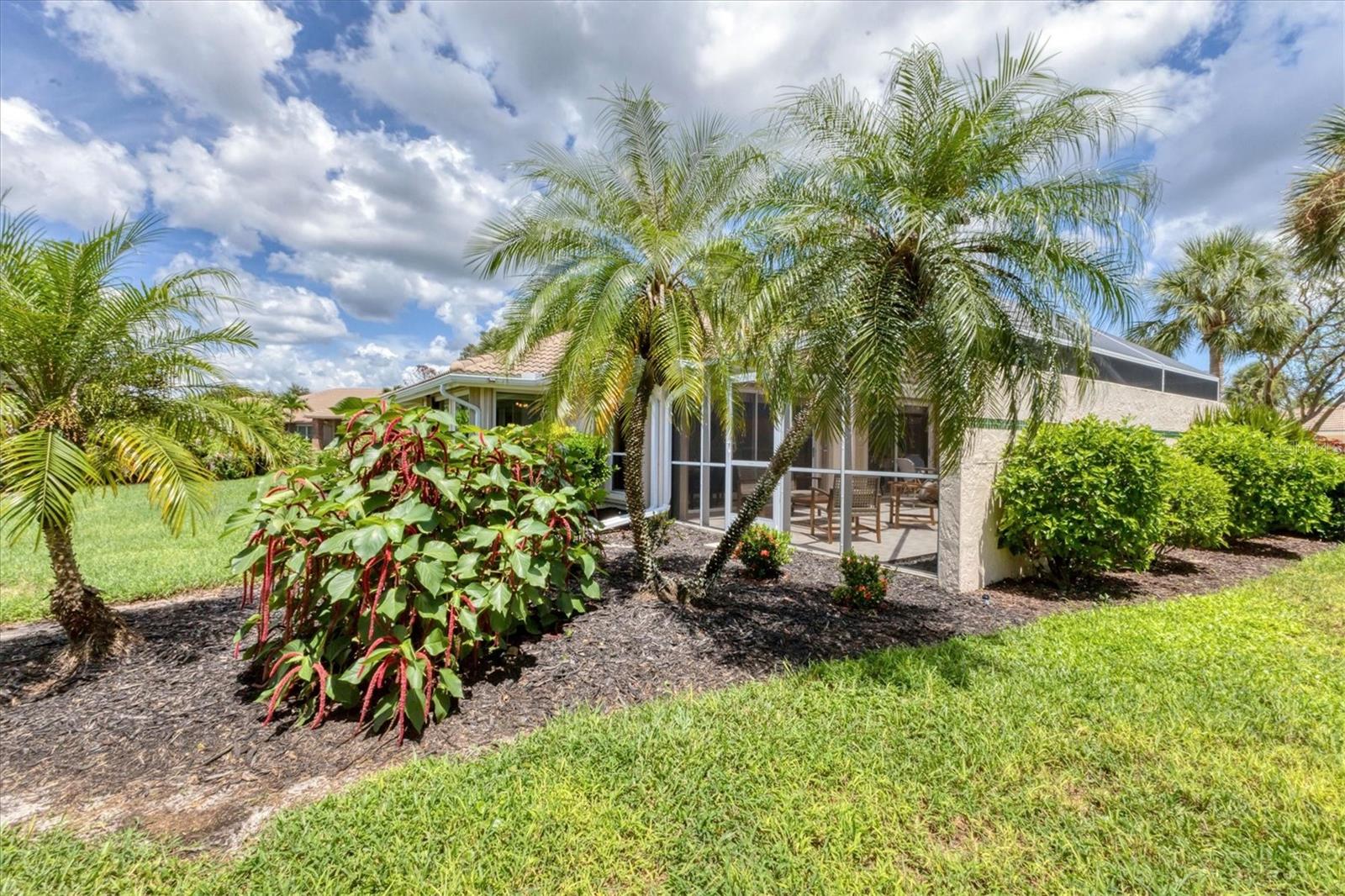 MANY NEWER FEATURES....Waterfront, Privacy, Views & Resort-Style Living! Experience Florida living at its finest in this beautifully maintained, no-storm-damage, flood-insurance-free stand-alone home, peaceful, private and perfectly tucked inside the gated Saint George community at the sought-after Plantation Golf & Country Club. From the moment you step onto your private front porch, sparkling waterfront views welcome you home and it only gets better from there. The oversized, professionally landscaped lot offers mature trees, vibrant blooms, and a warm, inviting entry. Inside, the open great room layout is highlighted by: Many newer features including: appliances (2021), electrical panel (2023), repiped with PVC, Leaf Gutter Guards (2022),water heater, HVAC with maintenance records (2022), ductwork replaced in attic (2019), HVAC return added (2019), washer/dryer, Tile Roof (association replaced 2016), Water Heater (2024). Hurricane-impact bay windows with electric blinds (2020) in the den, Granite kitchen countertops and a cozy eat-in breakfast nook. Tile roof, security system installed, entertainment-ready wet bar with wine & beverage storage, Upgraded Oversized Master Bath with double vanity, pet-friendly and move-in ready, Step onto your completely replaced screened lanai--a rare end-unit design with no shared walls, offering unmatched privacy. Enjoy peaceful water views, graceful ducks, and front-row seats to watch ospreys dive for their catch. Every sunset here is a private show, right from your lanai. Additional outdoor upgrades include leaf guards and landscape lighting for effortless upkeep. Conveniently located near beaches, shopping and dining. Saint George residents enjoy a private pool & clubhouse with seasonal gatherings, and optional memberships at Plantation Golf & Country Club provide access to golf, tennis, pickleball, bocce, fitness, dining, and an active social calendar. Ideal for a primary residence or Snowbirding at its finest. Some furnishings available if desired.