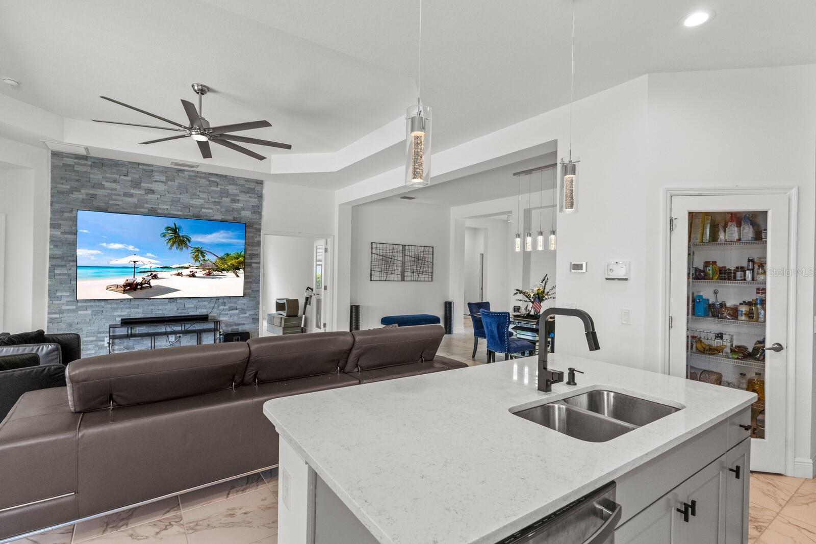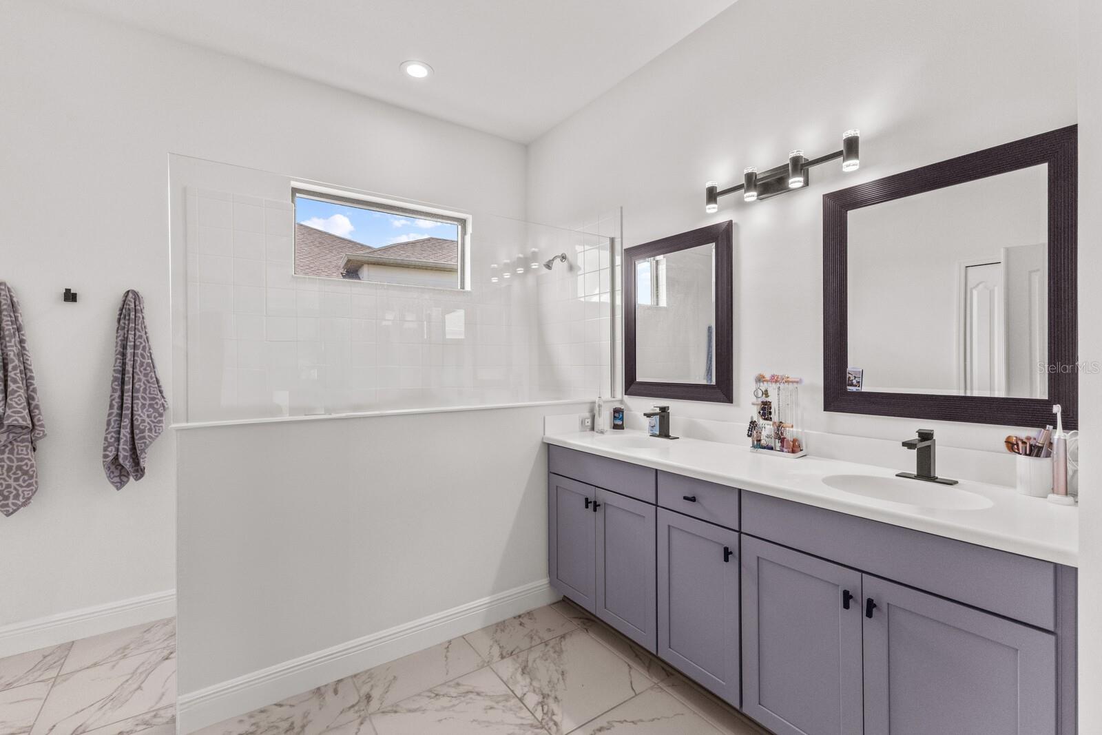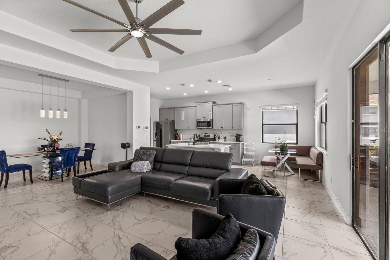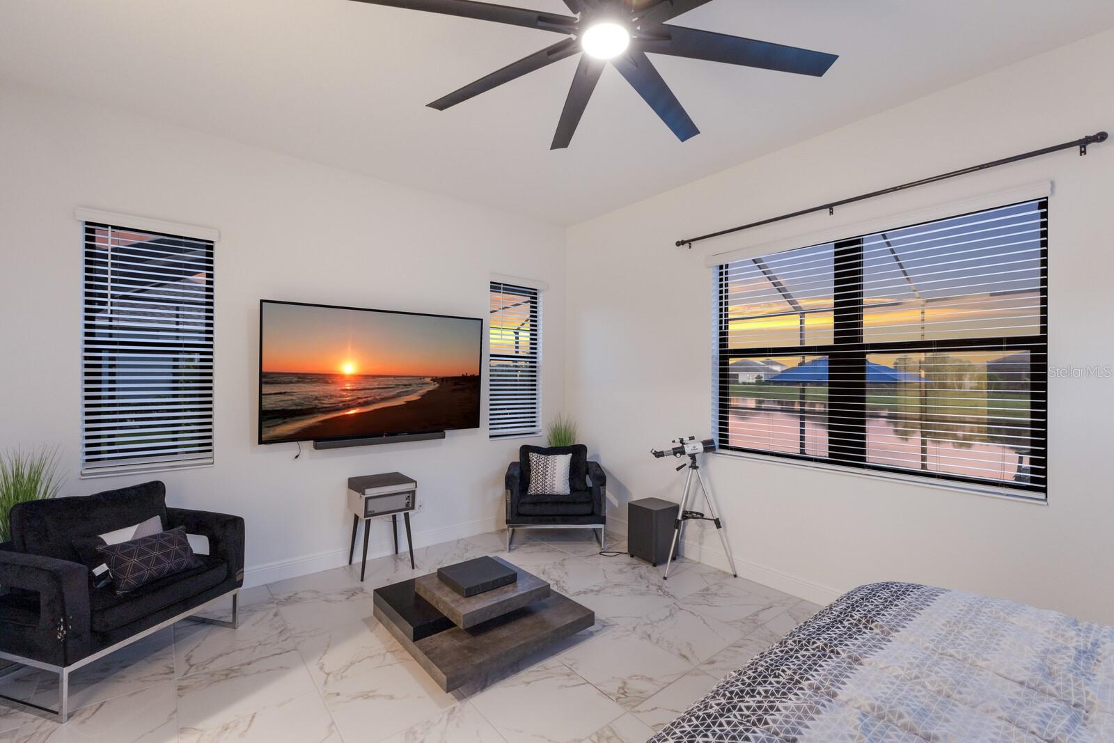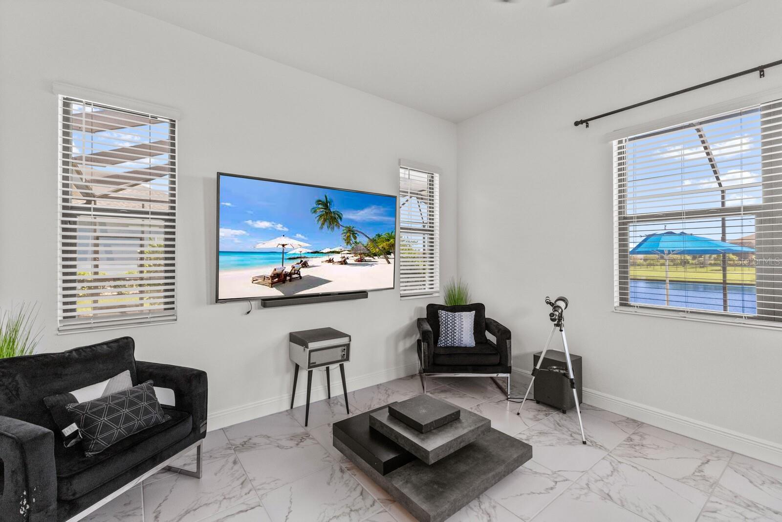 Welcome to this stunning, better-than-new 3 bedroom, 2 bath pool and spa smart home in the highly sought-after gated community of Canoe Creek. With NO CDD fees, this beautifully upgraded and well maintained home is perfectly positioned on a pie-shaped pond lot and showcases striking curb appeal with lush landscaping and a beautifully manicured lawn. Inside, a wide entryway opens to a bright, open floorplan with soaring 10 foot ceilings & no carpet - only ceramic tile & NEWER luxury vinyl plank floors throughout, perfect for those with allergies or pets. The formal dining room features a gorgeous modern chandelier & plenty of space for a large formal dining set. Adjacent is the great room, with a gorgeous octagonal tray ceiling & NEWER (2023) custom stacked stone wall. Off the great room, a large flex room with glass French doors is the perfect space to use as an office, home gym, playroom, or even a 4th bedroom. Overlooking the great room is your beautifully appointed kitchen, featuring 42" cabinetry with pull-out shelving, quartz counters, subway tile backsplash, sink w/newer matte onyx modern faucet, eat-in cafe/nook for casual dining, & dedicated pantry. Stainless appliances, including range w/gas cooktop & a 4-zoned Samsung refrigerator, make cooking a pleasure in this modern culinary space. Sliders off the great room lead to your backyard paradise - the NEARLY NEW (2023) heated smart saltwater pool & champagne spillover spa, complete w/double sun shelf & bubblers, inviting you to unwind while enjoying panoramic views of the tranquil pond. Control everything effortlessly from your phone, from your spa jets to LED pool lighting, to the NEW LED lights on the pool cage (2024) & NEW landscaping lighting (2024). Listen to your favorite tunes while relaxing in your pool with the NEW Sonos amp & lanai speakers that were just installed in 2024. Surrounded by tropical palms & privacy hedges, this private oasis is ideal for entertaining or enjoying a peaceful moment soaking up the Florida sunshine. The Primary Retreat at the back of the home is a serene, sunlit space with views of the lanai. It features two walk-in closets and a spacious en-suite bath w/huge walk-in shower, dual sinks, NEW (2025) lighting, custom mirrors, NEWER faucets (2023), & private water closet. Just off the foyer are two spacious bedrooms with a full bathroom in between that includes NEWER (2023) upgraded matte onyx faucet. The laundry room is conveniently situated just off the kitchen and includes Samsung top-loader washer & gas dryer, as well as handy linen closet. Additional notable upgrades include NEW (2025) ceiling fans; NEW (2025) exterior & interior paint; NEW pool screens (2025); NEW surge protector on breaker box (2024); NEWER (2023) security cameras; NEWLY cleaned/sealed pavered driveway, lanai, & interior grout (2025); 5 1/4" baseboards throughout; LED dimmer switches; gas water heater; epoxy garage floors; & overhead storage rack in garage. Situated in highly desirable Canoe Creek, this master planned gated community is perfect for those looking for the active lifestyle in a vibrant neighborhood, featuring a large clubhouse with fitness center, resort style pool & spa, a full time lifestyle director, pickleball courts, 2 dog parks, fire pit, walking trails, and a robust social calendar. Just minutes from world-class shopping, dining, state parks, and Gulf Coast beaches, this home offers the perfect combination of luxury, convenience, and coastal living.