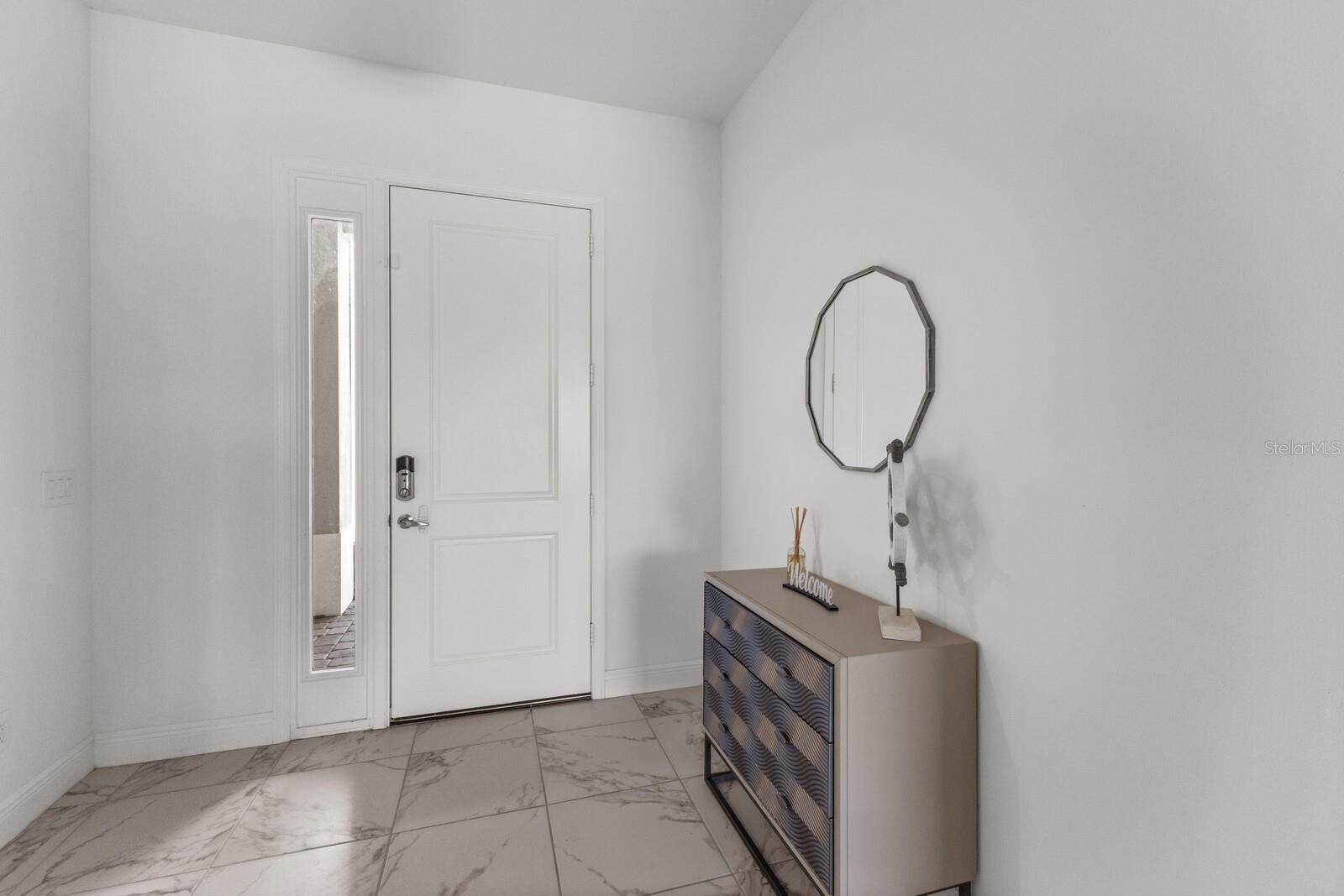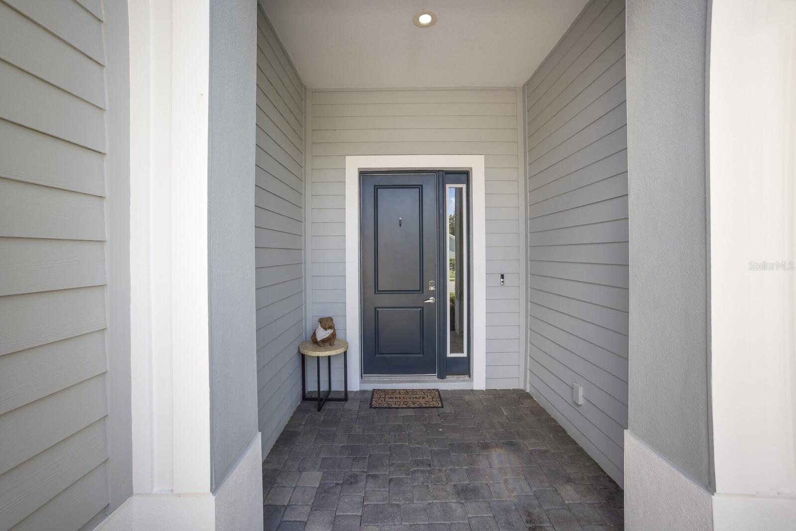 Exterior: Hurricane Shutters, Lighting, Sidewalk, Sliding Doors